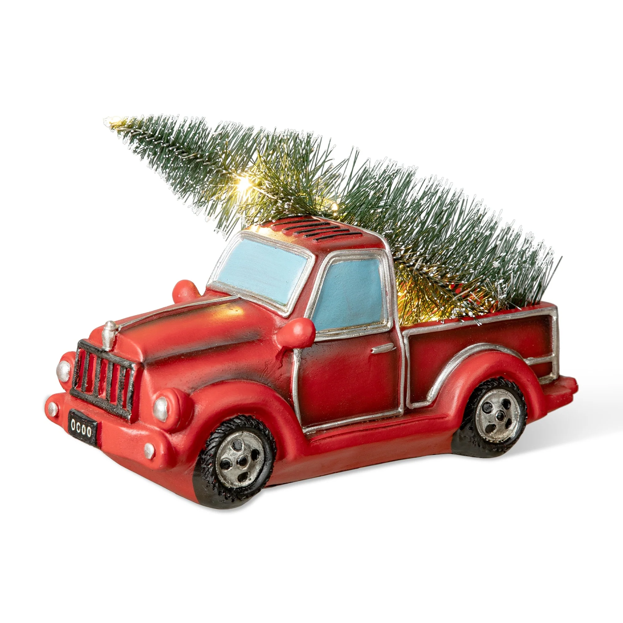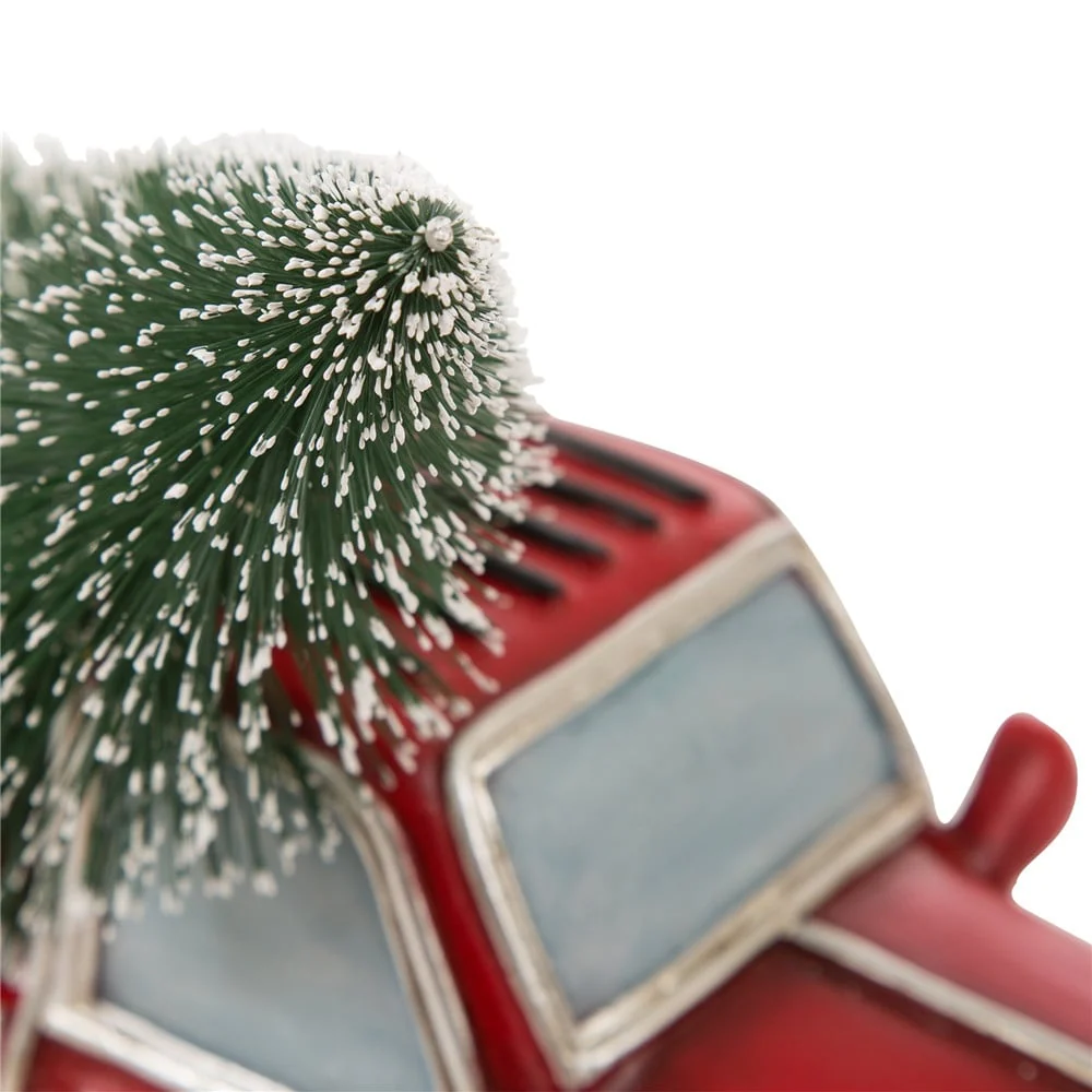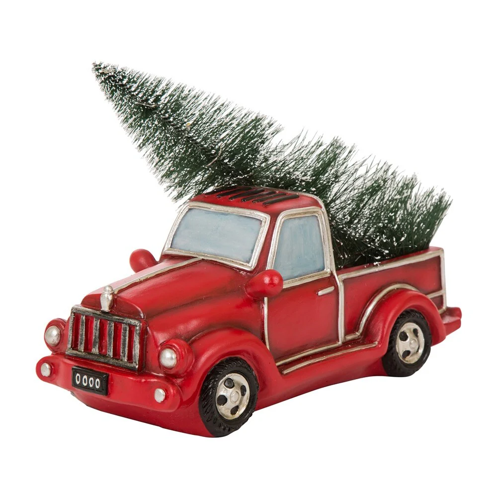 Hop on board for a ride through nostalgia with this classic red Chevy pickup truck decoration. The red pickup truck has been a long-standing Christmas tradition to remind folks of simpler times when grandpa would bring home a perfect tree for the holidays. The polyresin construction is painted bright red and the tree is lit with warm white lights for a touch of sweet and delightful charm.