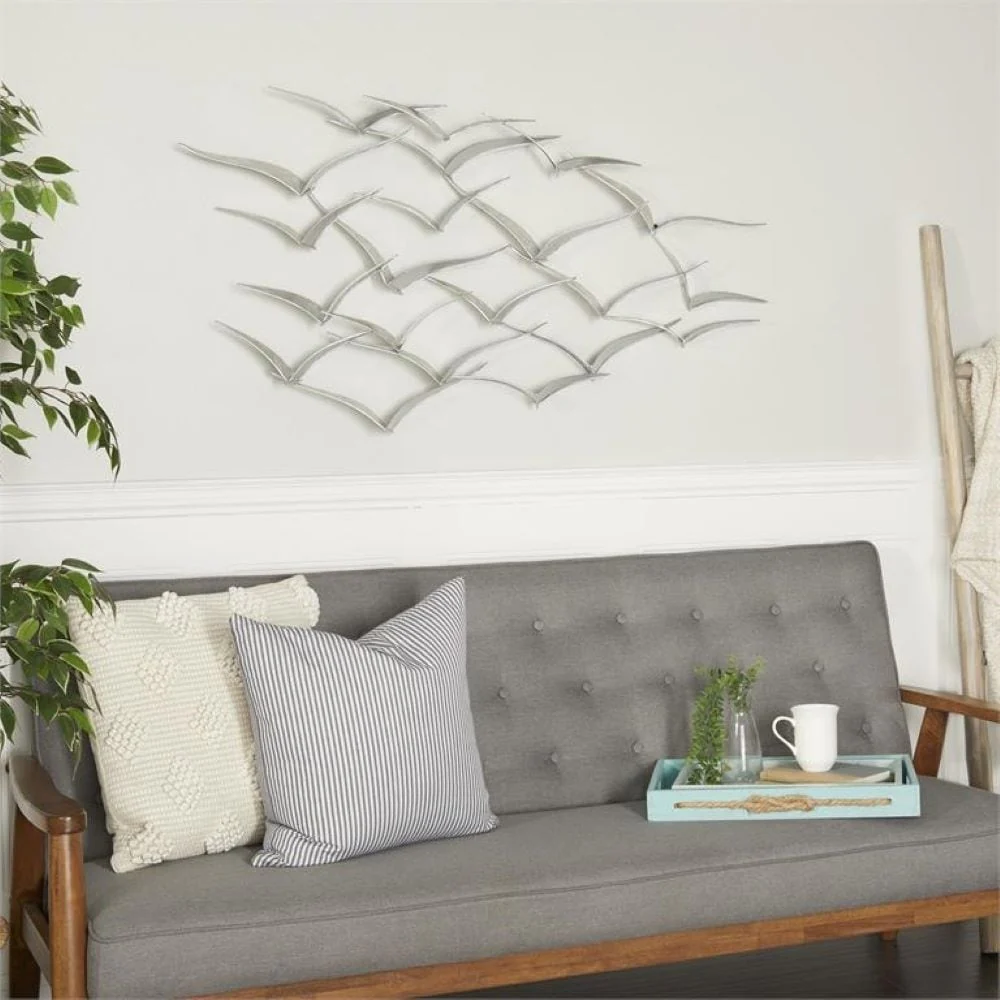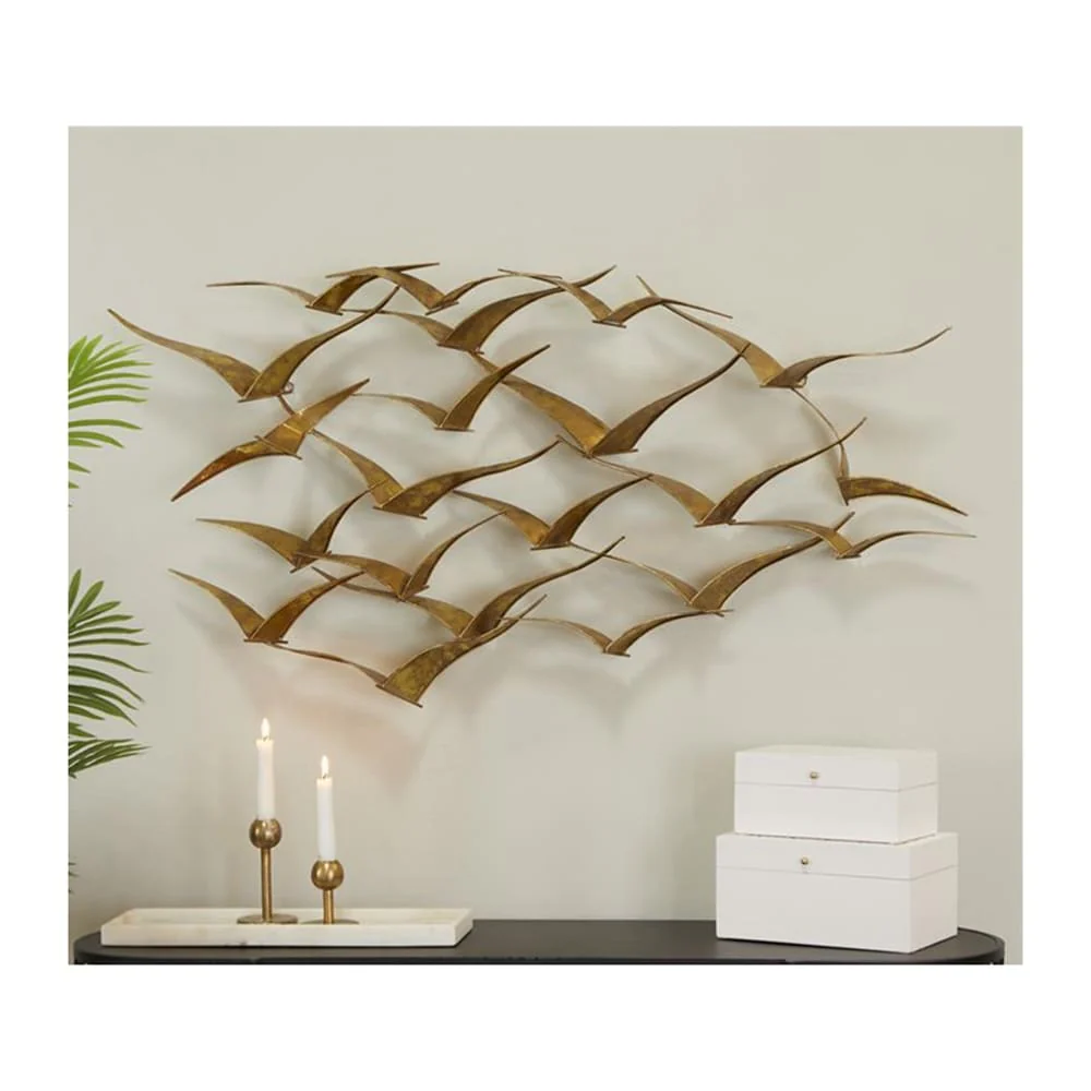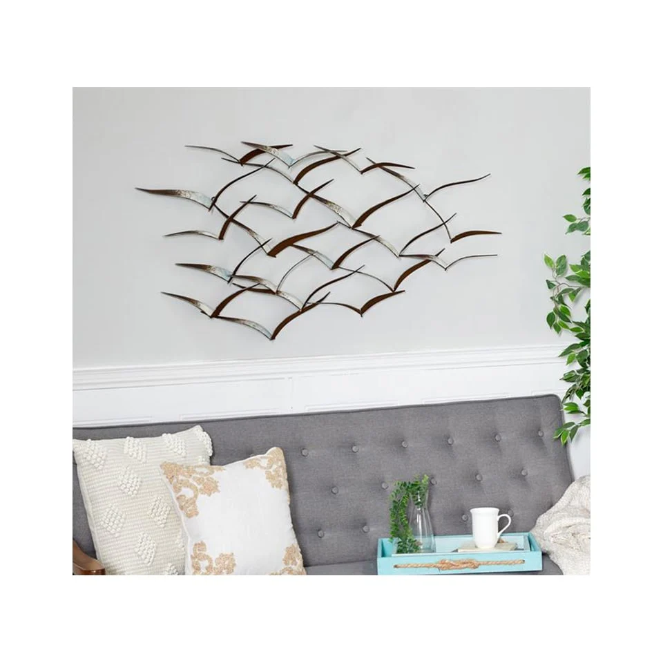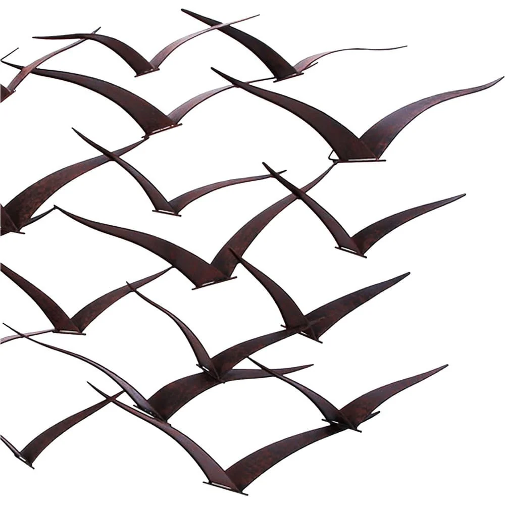 Add a touch of contemporary elegance to your living space with this handcrafted flock of metal flying birds wall art. The espresso stain and minimal design make it a stunning alternative to traditional paintings or photographs. Available in black or gold, this metal wall sculpture is sure to complement any decor style and is ready to hang right out of the box.