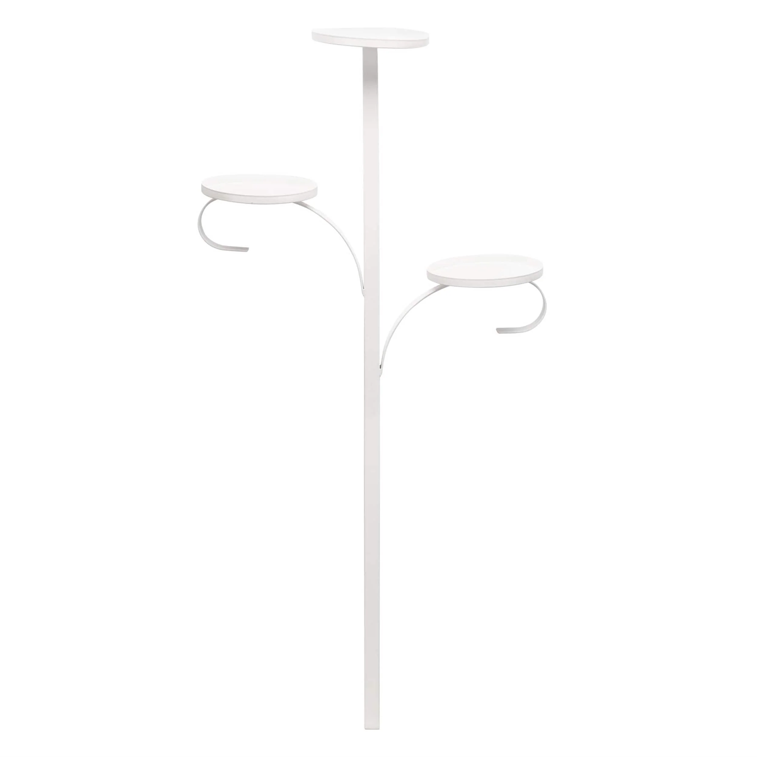 Elevate your Christmas tree décor with this Metal Triple Tree Topper Platform. Featuring a wintry white/black tone, this 36" tall platform blends perfectly with your flocked tree. Secure it at the top with a zip tie, ensuring the top platform slightly protrudes for a unique display. Customize each of the three platforms with festive figurines, arrangements, or statement pieces to create a one-of-a-kind holiday look.