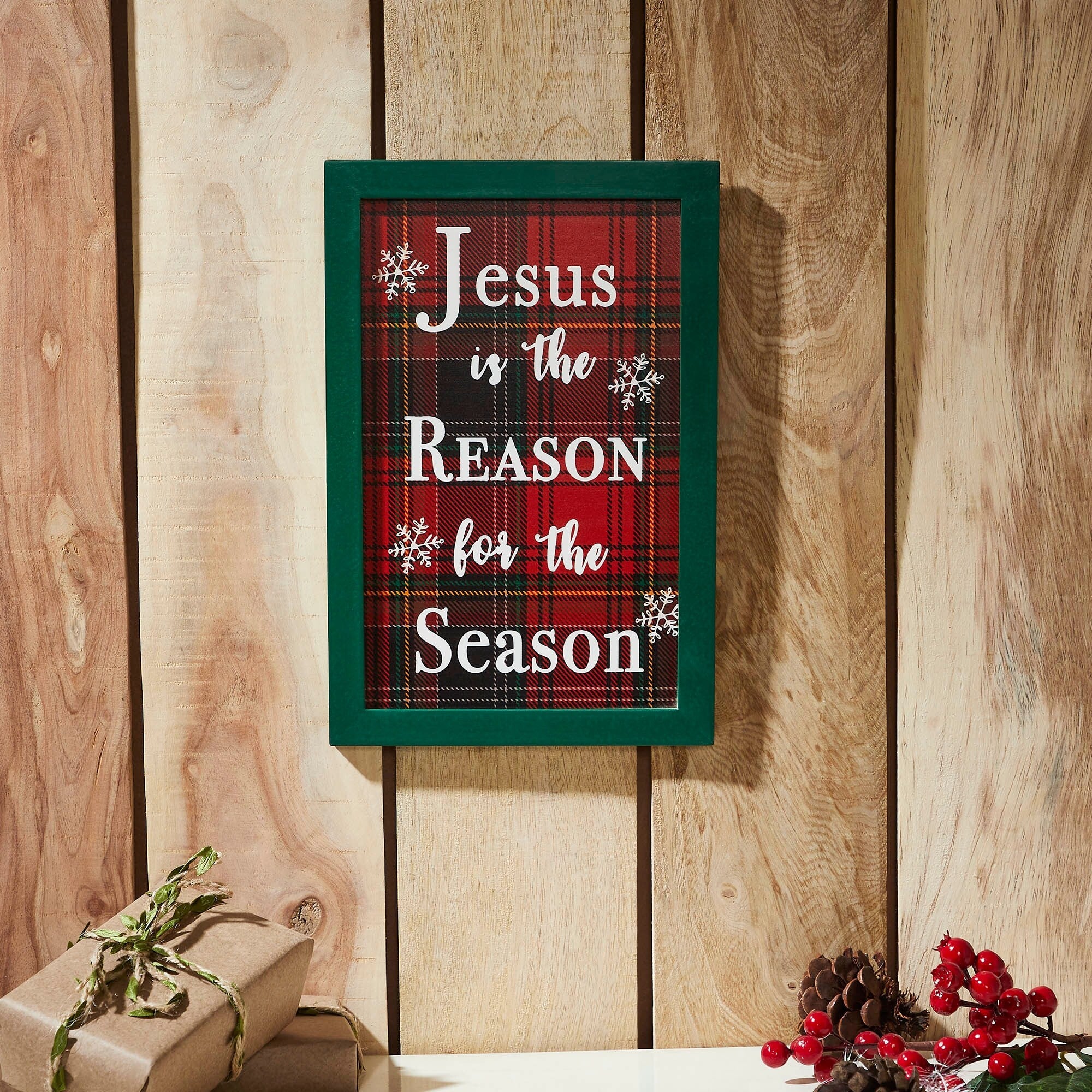 Elevate your Christmas decor with the heartfelt message of the VHC Brands Jesus Is The Reason Plaid Framed Wall Hanging Sign. Measuring 12x8 inches, this rectangular sign features the timeless phrase Jesus is the Reason for the Season beautifully printed in a festive font against a backdrop of classic Christmas colors: Christmas red, bright green, and snow white. The sign is framed in a charming plaid design, adding rustic charm and warmth to any wall or door in your home.Crafted from durable MDF material, this wall hanging sign is designed to last for seasons to come. Its smooth surface allows for easy cleaning with a soft cloth, ensuring that it maintains its pristine appearance throughout the holiday season. The sign comes with pre-drilled holes for easy hanging, allowing you to effortlessly display it in your bedroom, dining room, entryway, kitchen, living room, or any other space where you want to spread the message of faith and love during the Christmas season. With its inspiring message and festive design, the VHC Brands Jesus Is The Reason Plaid Framed Wall Hanging Sign serves as a reminder of the true meaning of Christmas. Whether hung on a wall or door, it adds a touch of warmth and spirituality to your holiday decor, inviting friends and family to reflect on the birth of Jesus Christ and celebrate the joyous season with faith and gratitude. This beautiful sign is a meaningful addition to your Christmas decorations and a wonderful way to share the message of hope and love with all who enter your home.