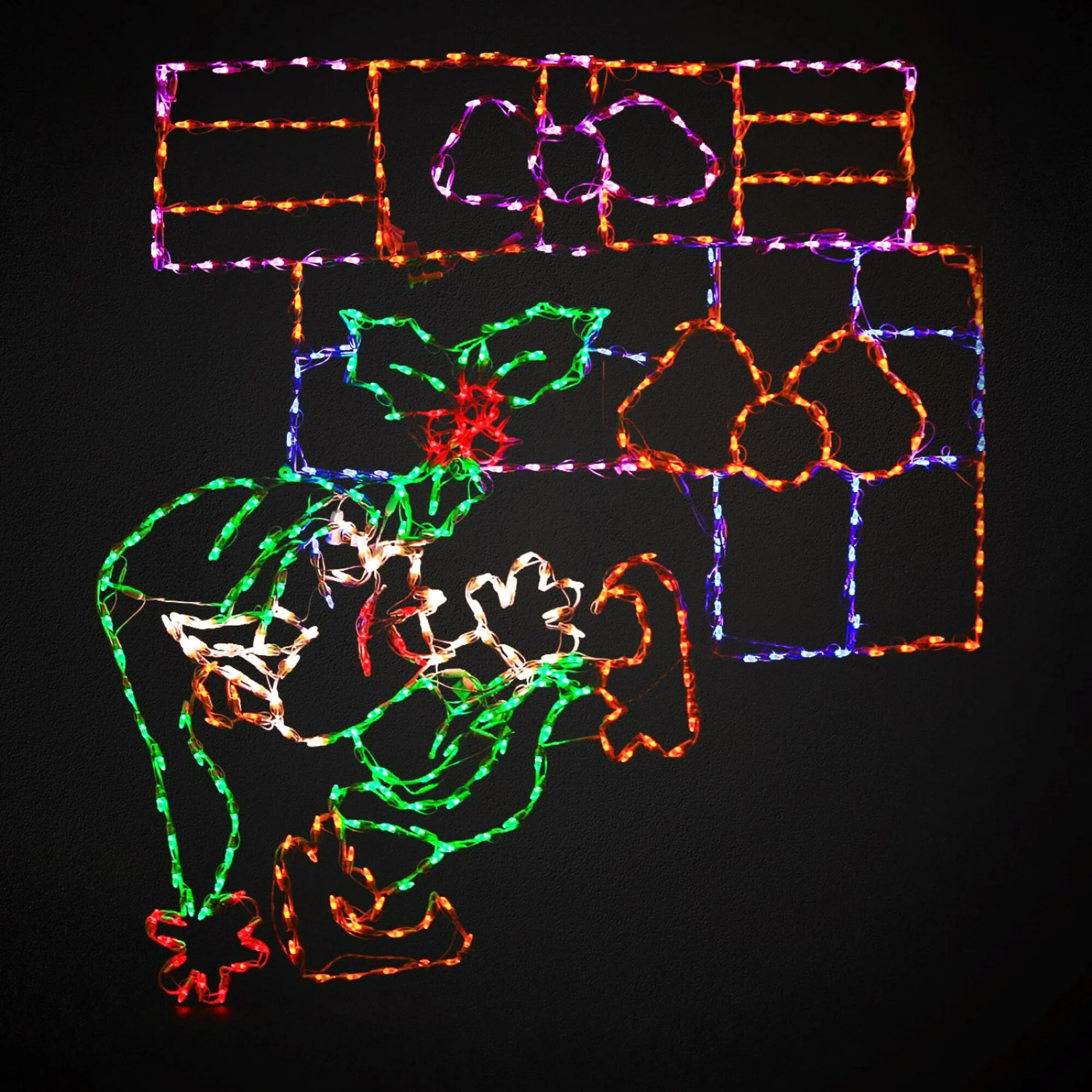 Bring the joy of the holiday season to life with this LED elf decoration. This whimsical elf, adorned in festive green attire and a pointy hat, is ready to spread cheer as he carries a stack of brightly wrapped gifts. This vibrant decoration features an impressive 337 intensely bright LED lights, illuminating the elf in a delightful array of colors. This marching elf is perfect for enhancing the festive atmosphere of your home, garden, or business.