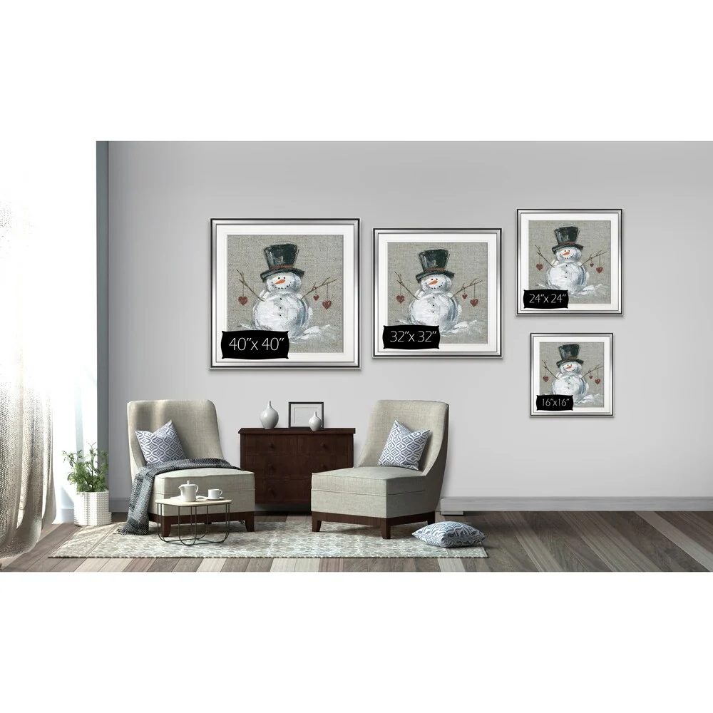 Linen Snowman II -Custom Framed PrintA premium hand framed Giclee print created to last.Featuring a beveled 2'' Matt board and premium acrylic glass. Each frame is custom cut & joined by hand. This framed is ebony / silver in color4 SIZES AVILABLE16''X16'' - Overall Size24''x24'' - Overall Size28''x28'' - Overall Size38''x38'' - Overall Size** Overall size may vary slightly from piece to pieceEach piece is made to order.Built to LastEach piece comes ready to hangPremium Acrylic Glass2'' inch wide frame (with beveled mat board)