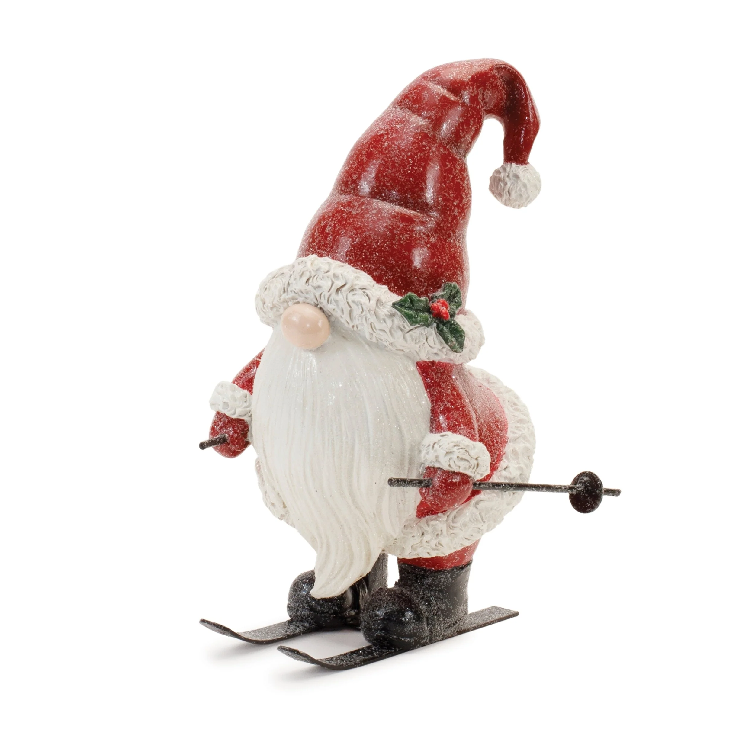 Bring a festive and playful charm to your holiday decor with this delightful Santa on Skis and Skates set. Featuring two unique designs, this set is perfect for creating a cheerful atmosphere in your cabin lodge or adding a traditional touch to your home decor. The vibrant red and white tones, combined with wintery glitter accents and ski and ice skate details, make these figurines an eye-catching addition to any mantel, bookshelf, or holiday display. Crafted from polyresin and metal, this set is designed to last for many seasons. Whether placed as part of your seasonal display or gifted to a ski enthusiast, these figurines add a fun, festive flair to any room.