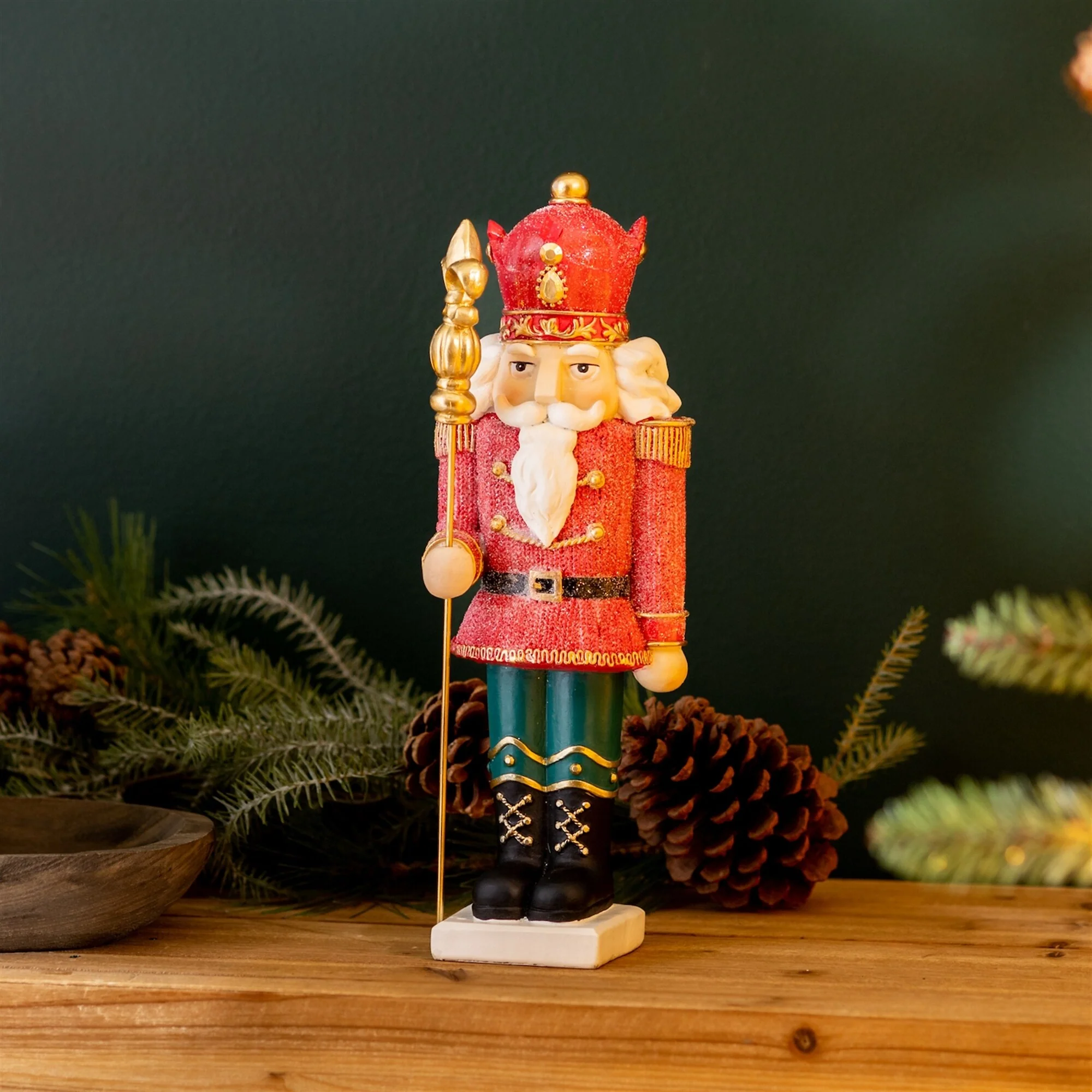 Celebrate the holiday season with this charming Nutcracker Figurine Set. This set of two, measuring 12.75" in height, offers a perfect blend of festive red and blue tones with a touch of wintery glitter. Crafted from polyresin, these figurines bring traditional or whimsical holiday vibes to any space. Ideal for indoor use, this set makes a beautiful addition to mantels, bookshelves, or even as a thoughtful gift for friends and family. Their striking design and detailed craftsmanship will ensure they become a treasured part of your seasonal decor for years to come.