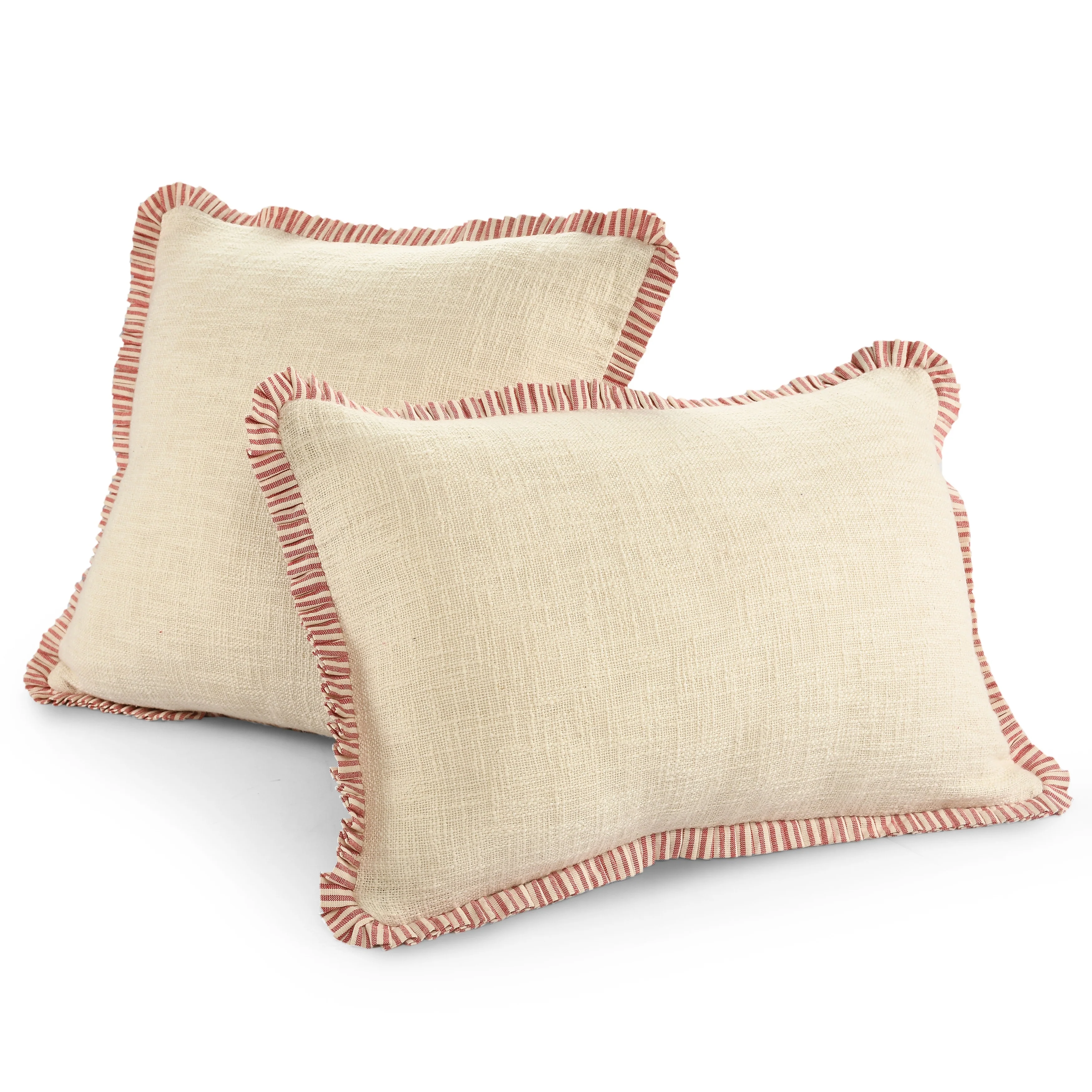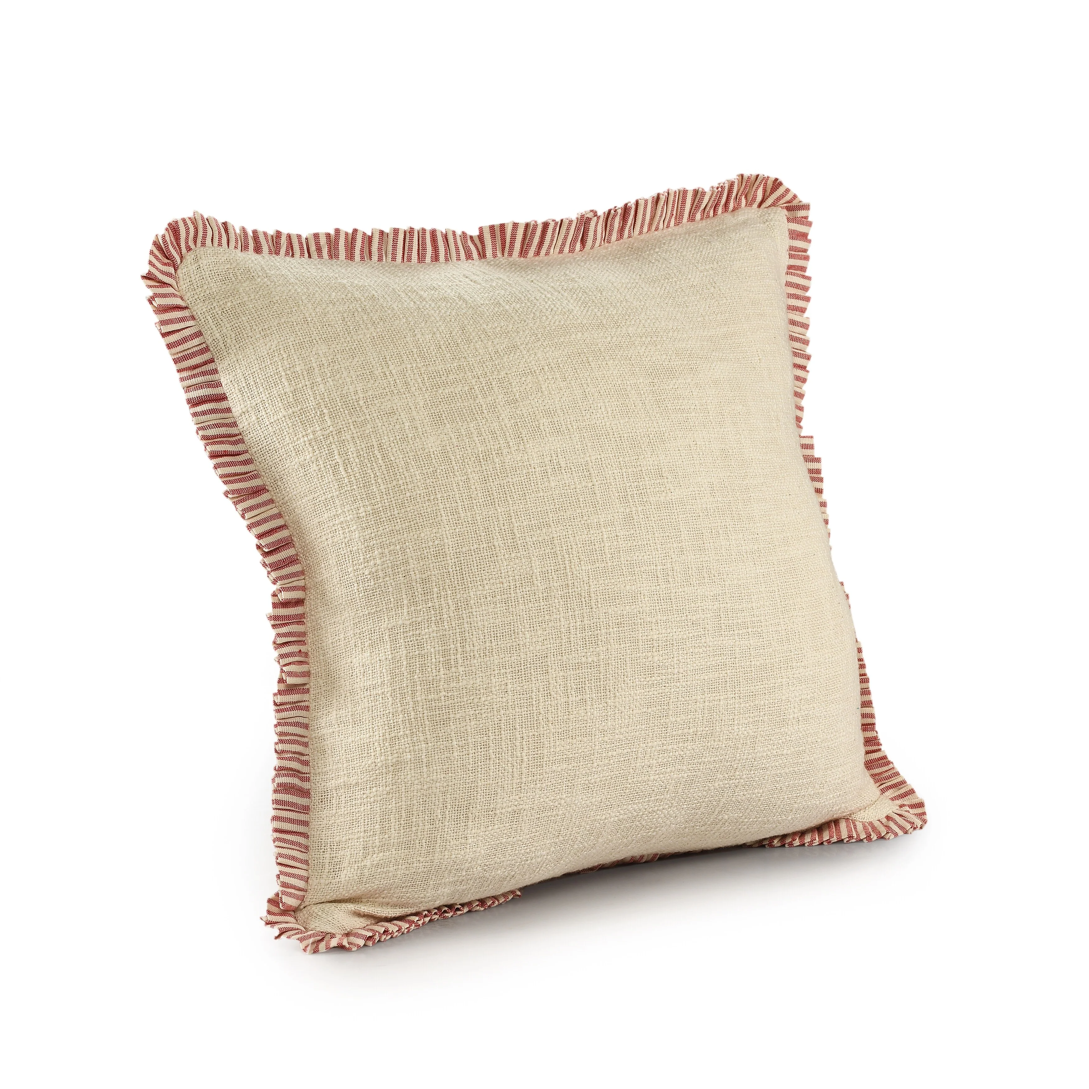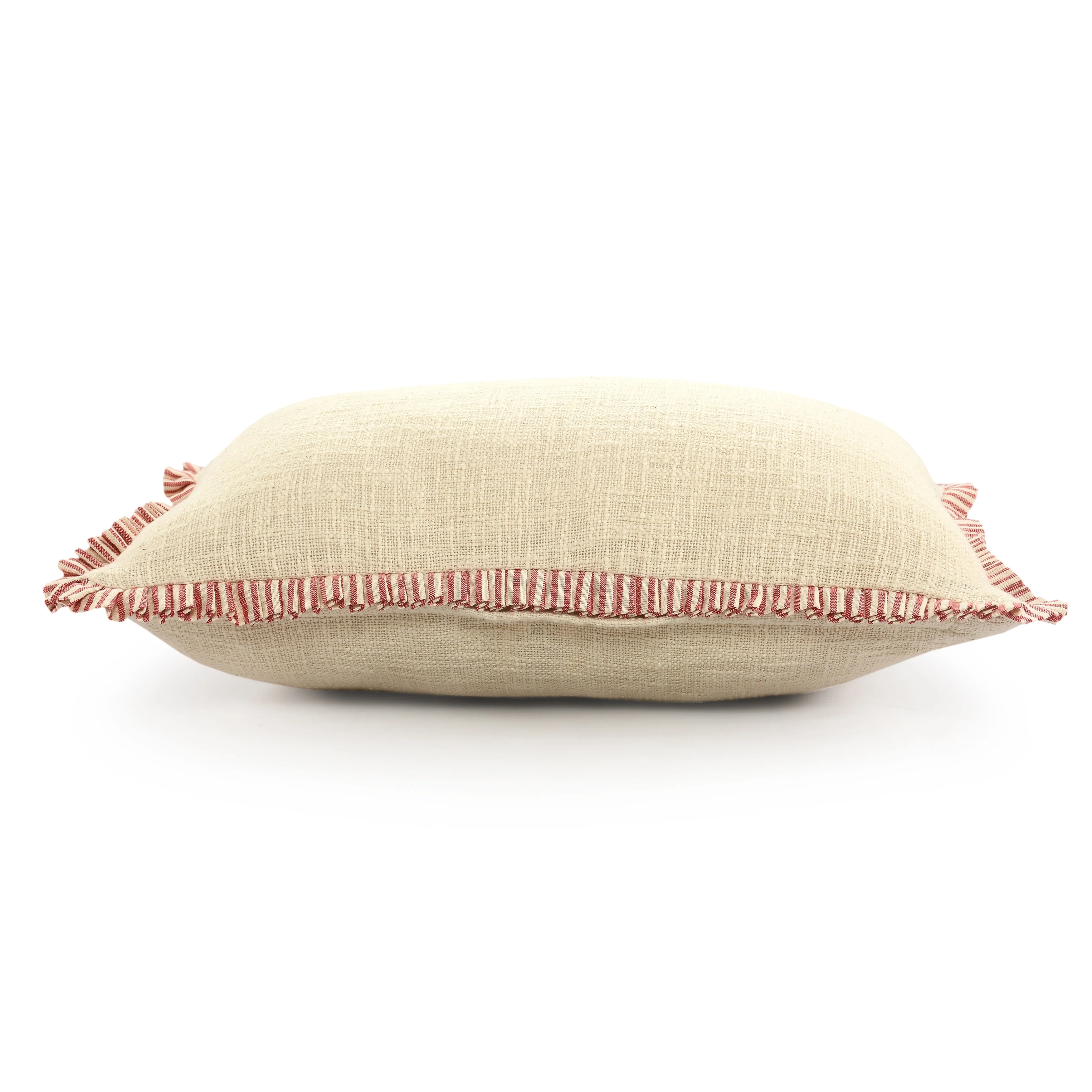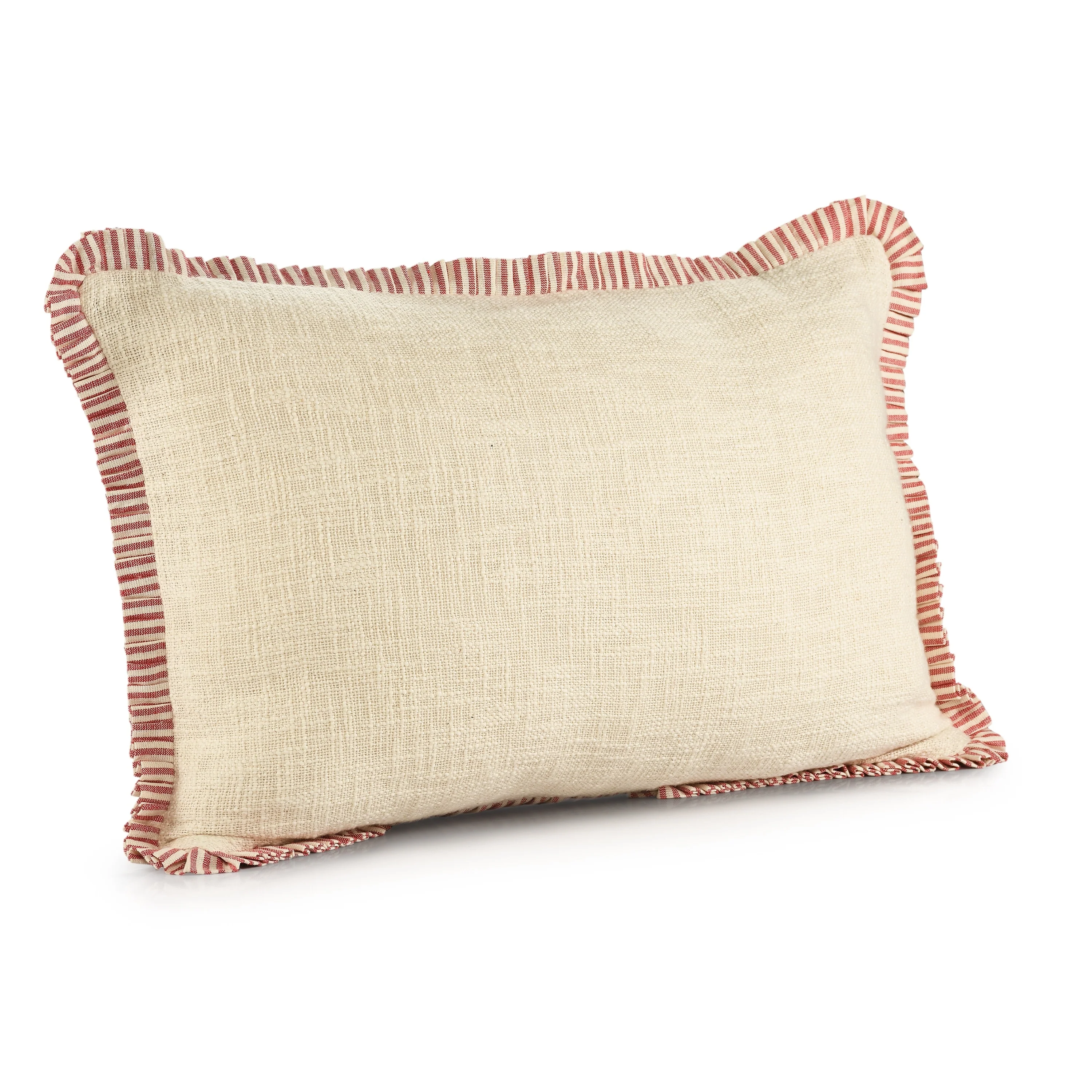 Add a touch of Christmas cheer to your home décor collection with the Candy Cane Striped Ruffle Border Throw Pillow. This festive accent pillow features a ruffled border with candy cane stripes in classic red tones to tie together all your favorite holiday hues and themes. Crafted from cotton, this throw pillow provides comfort and support while keeping your room merry and bright. A hidden zipper on the side allows for easy removal of the insert for cleaning.