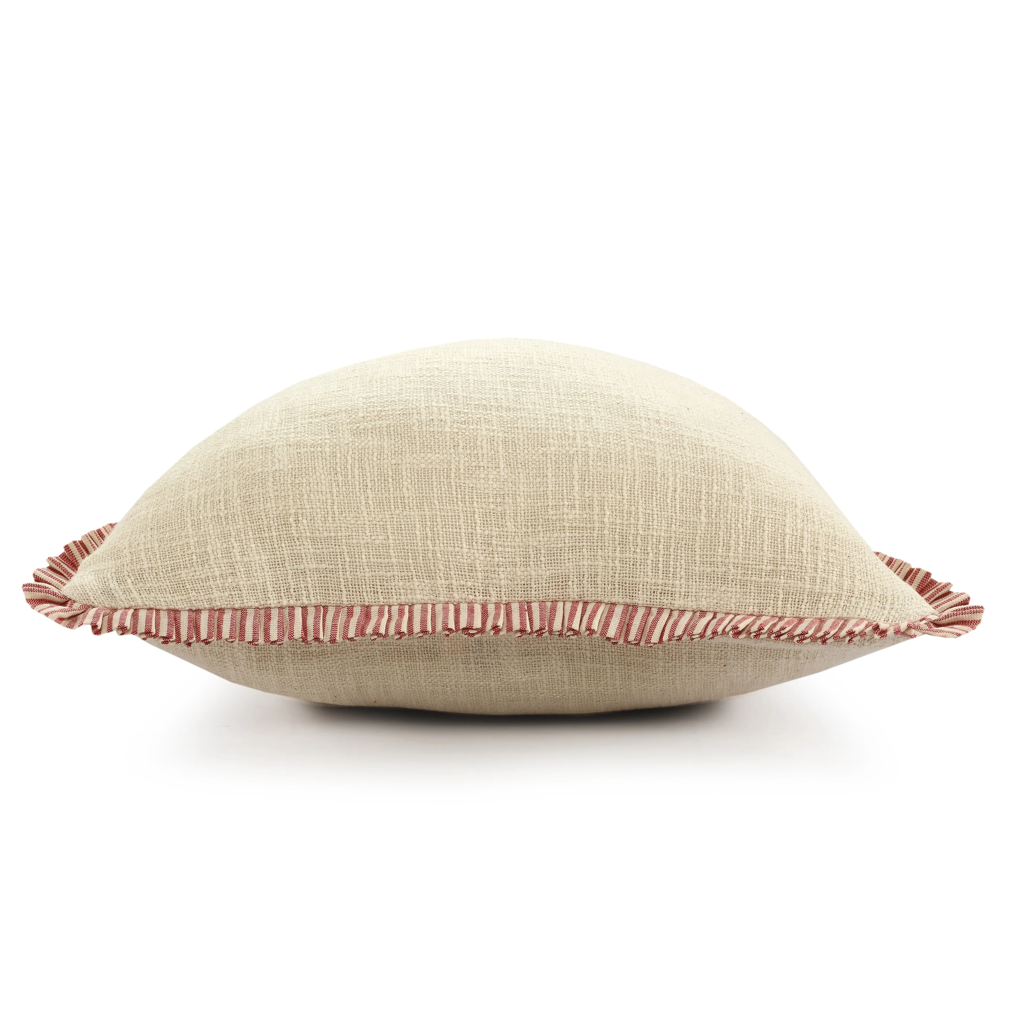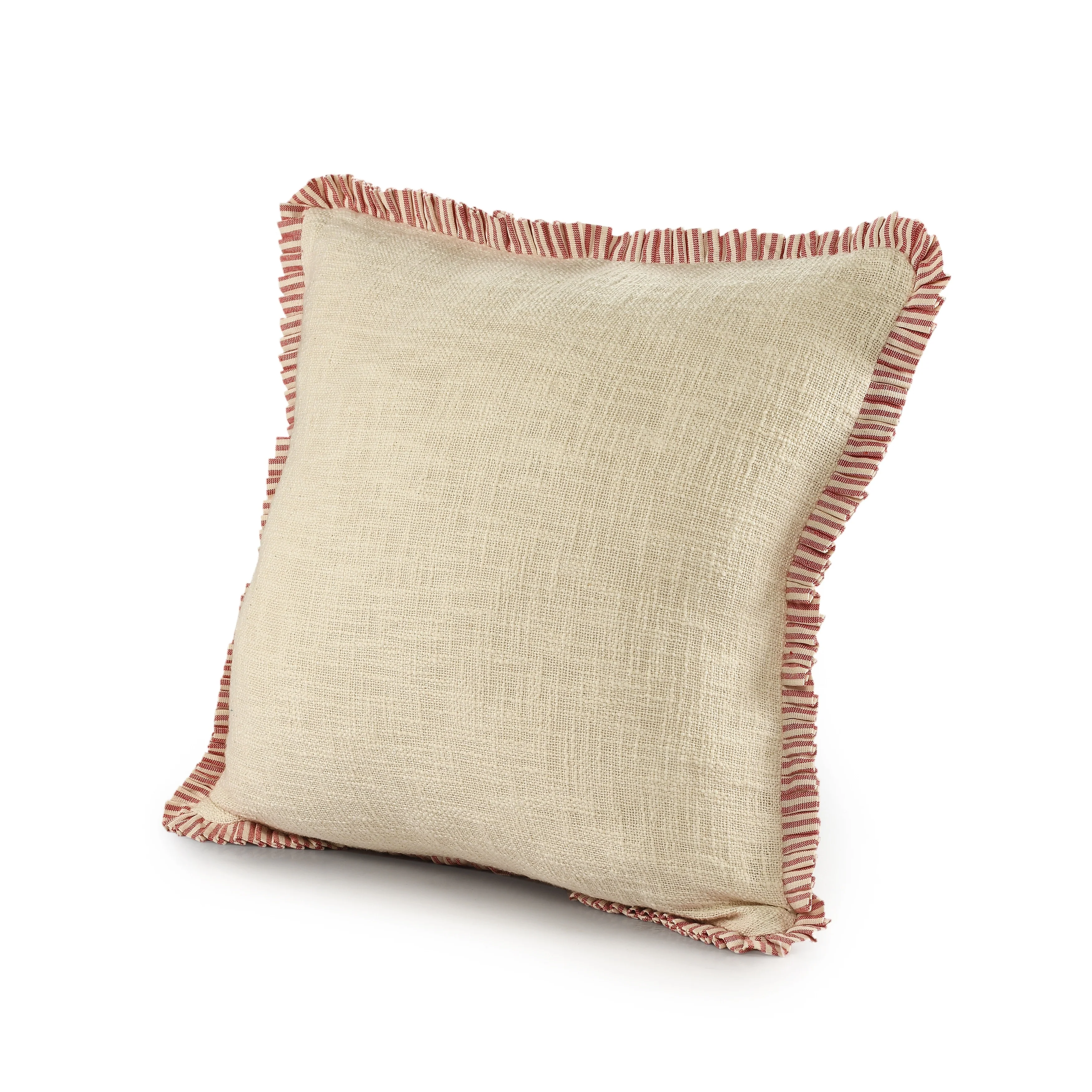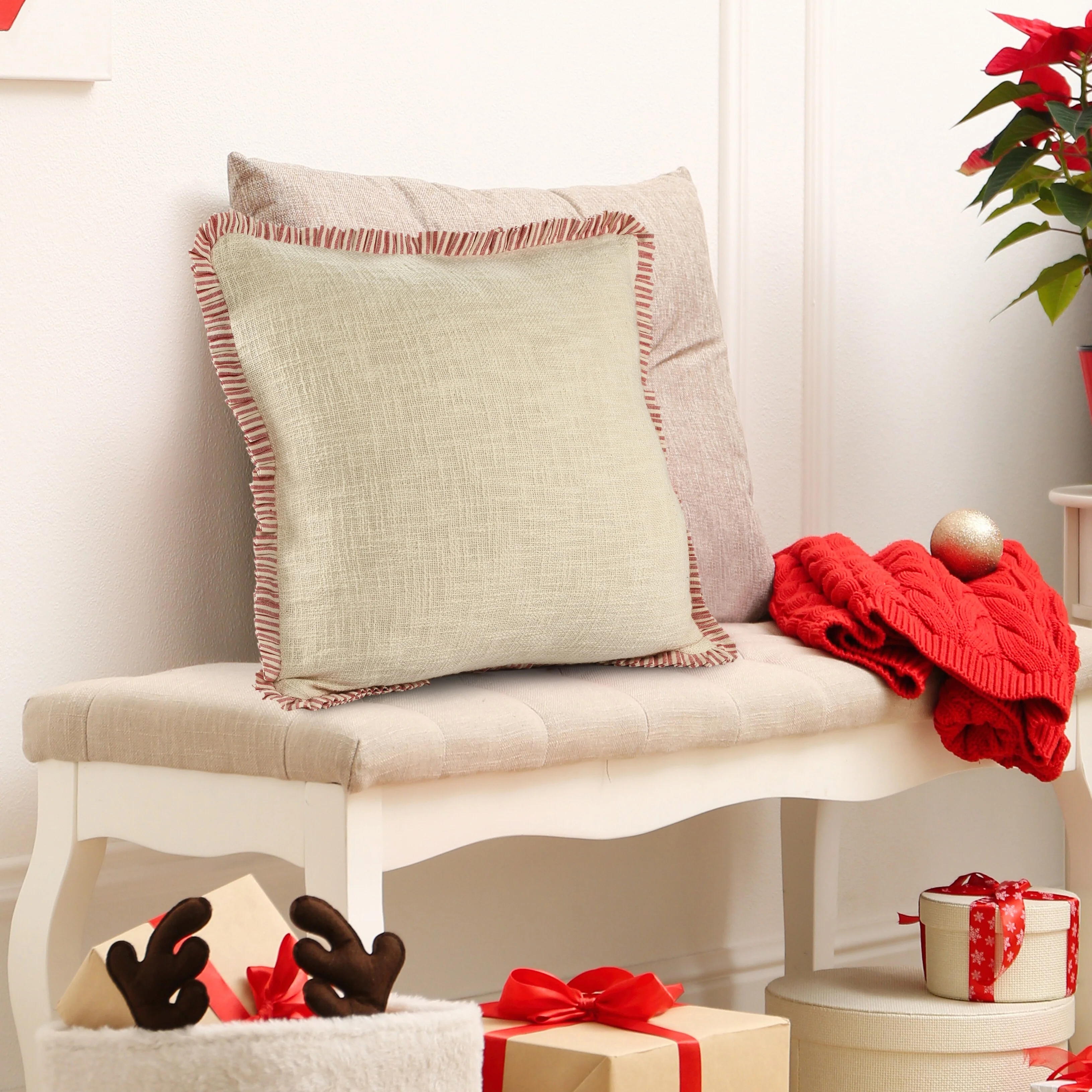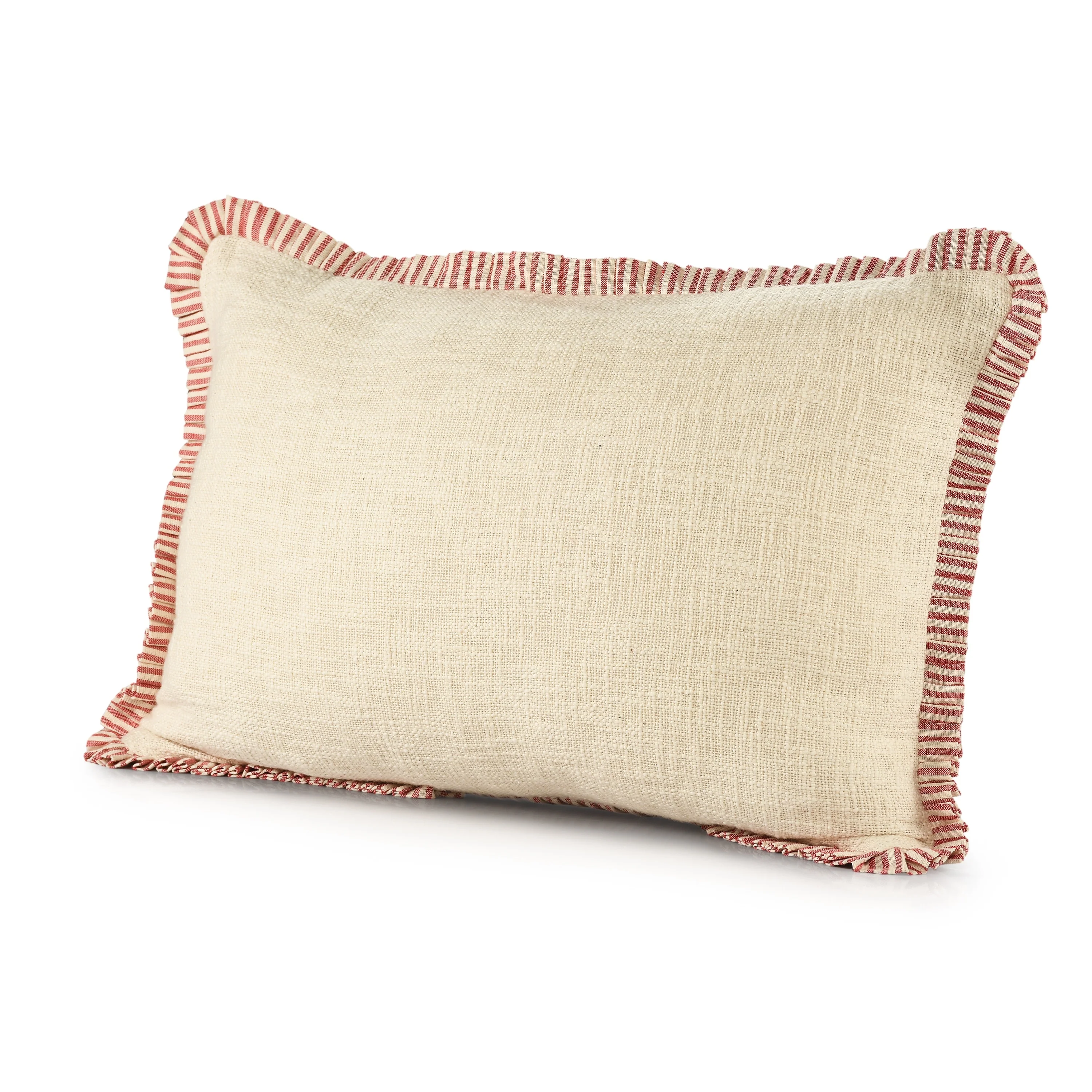 Add a touch of Christmas cheer to your home décor collection with the Candy Cane Striped Ruffle Border Throw Pillow. This festive accent pillow features a ruffled border with candy cane stripes in classic red tones to tie together all your favorite holiday hues and themes. Crafted from cotton, this throw pillow provides comfort and support while keeping your room merry and bright. A hidden zipper on the side allows for easy removal of the insert for cleaning.