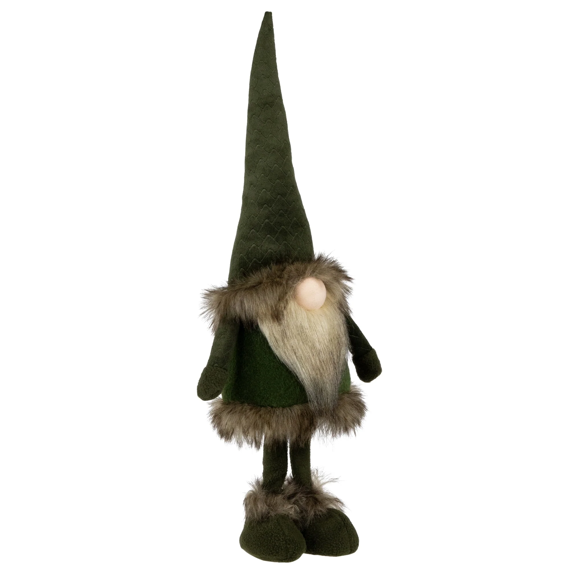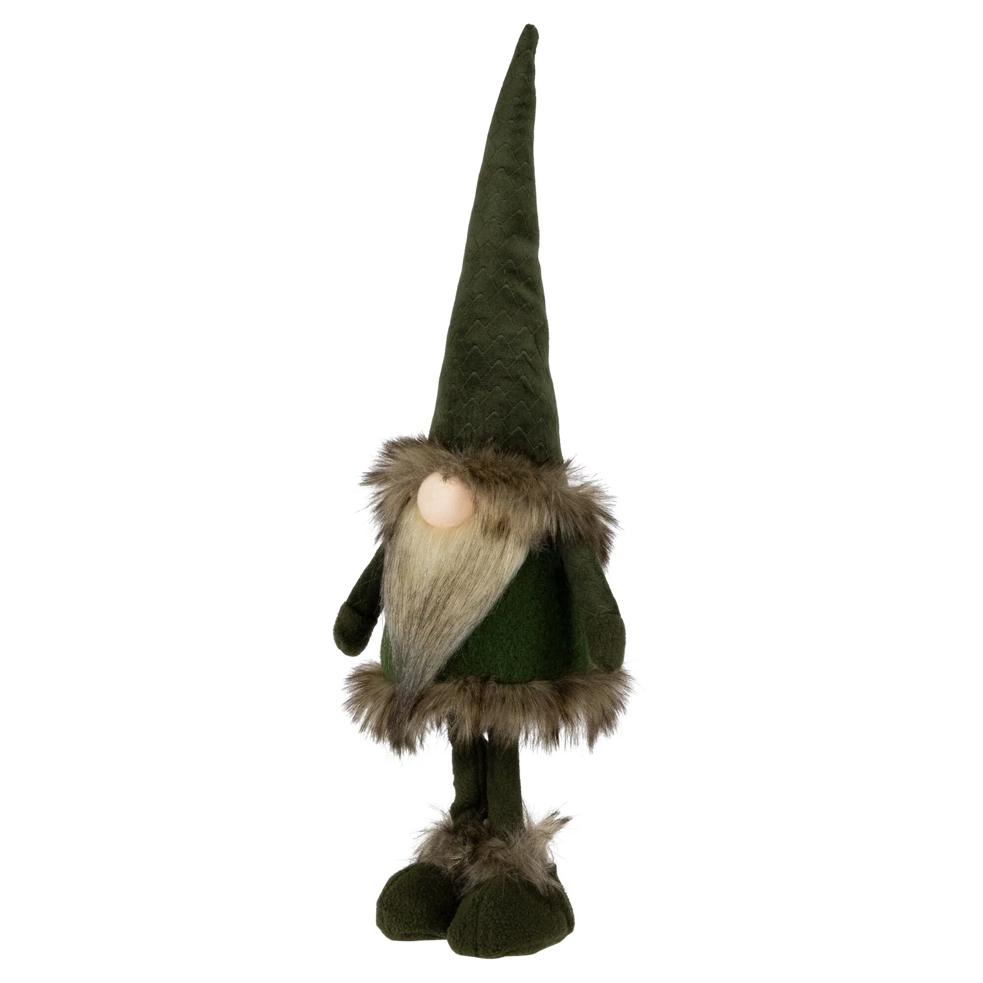 Standing Plush Gnome with Faux Fur Christmas Figure - 19" - Green