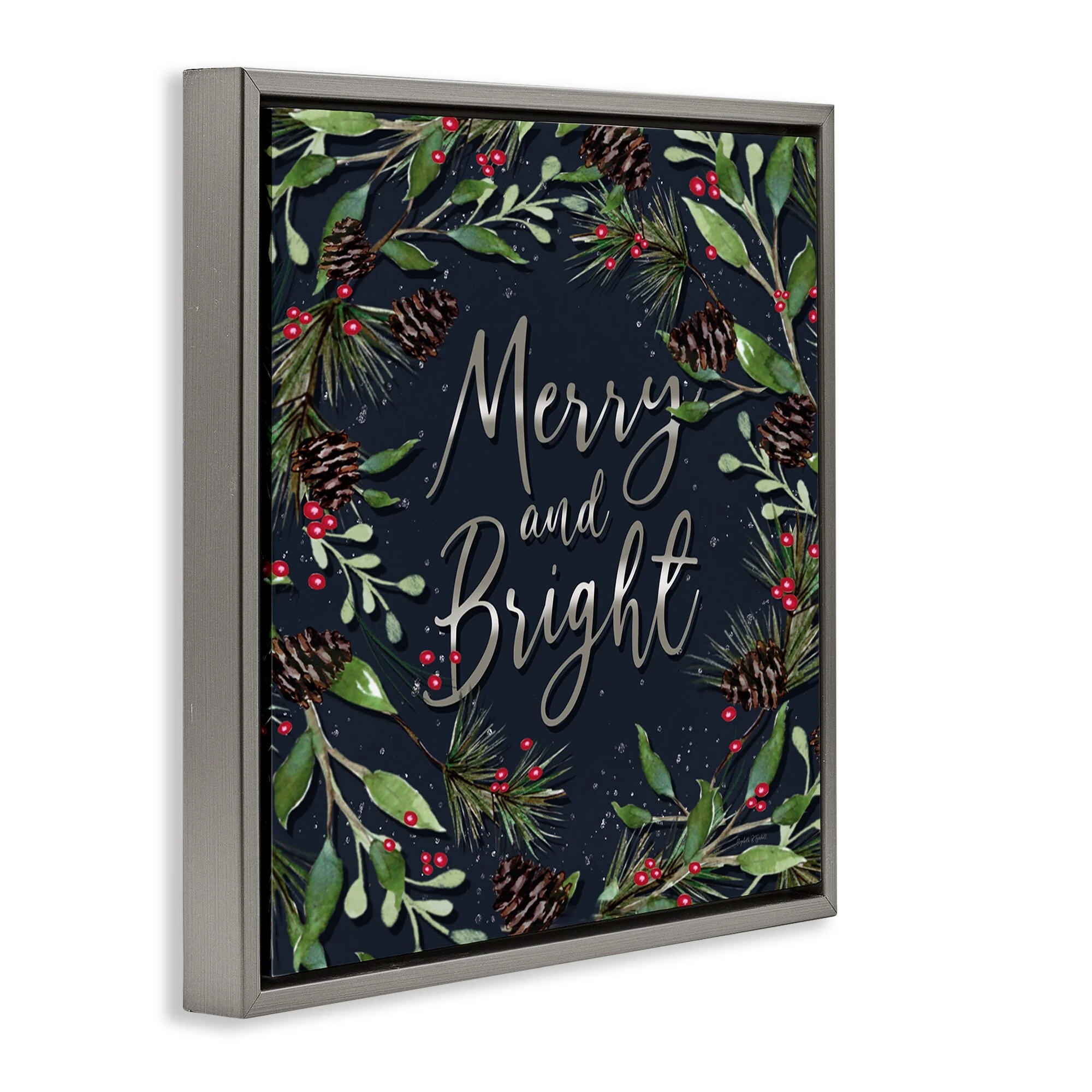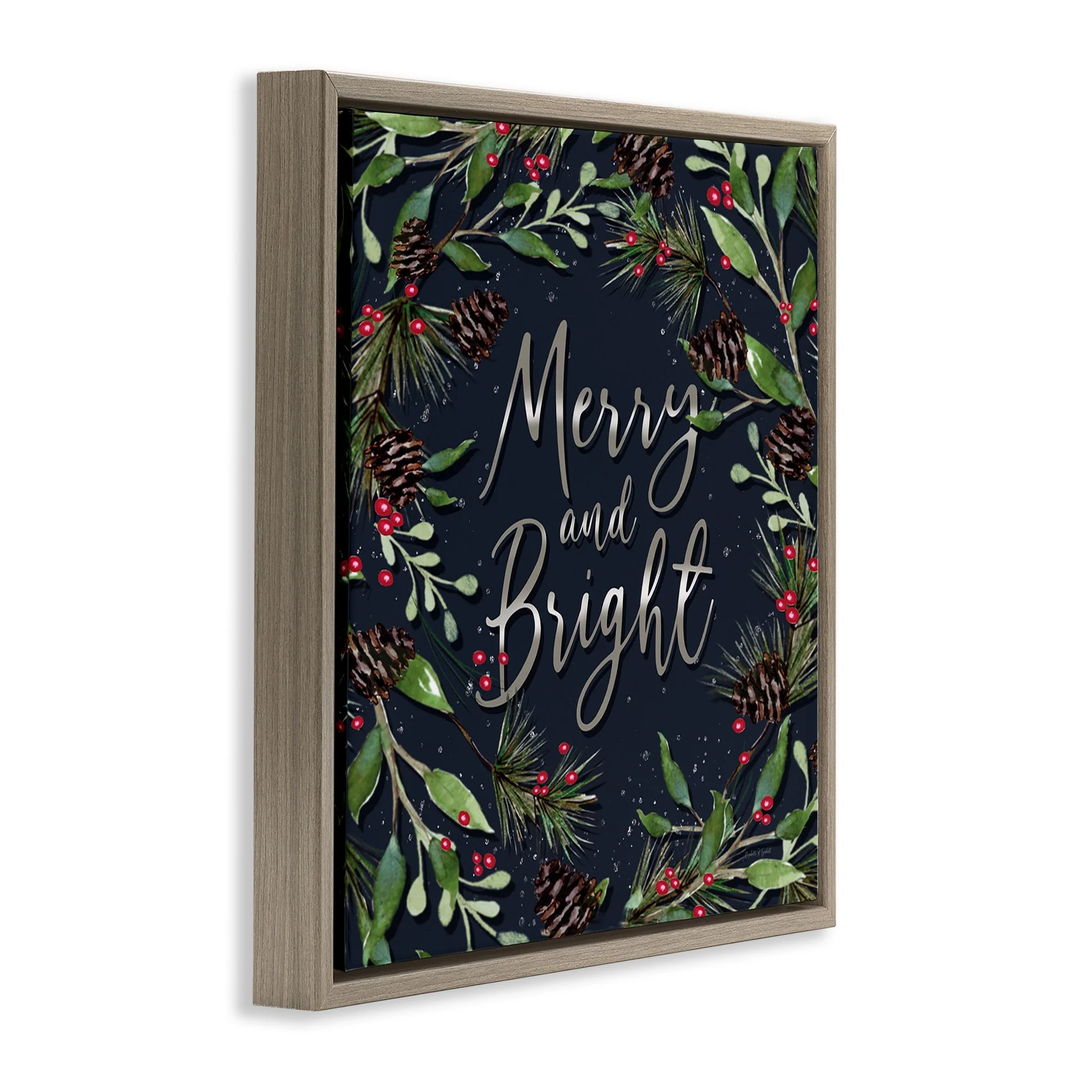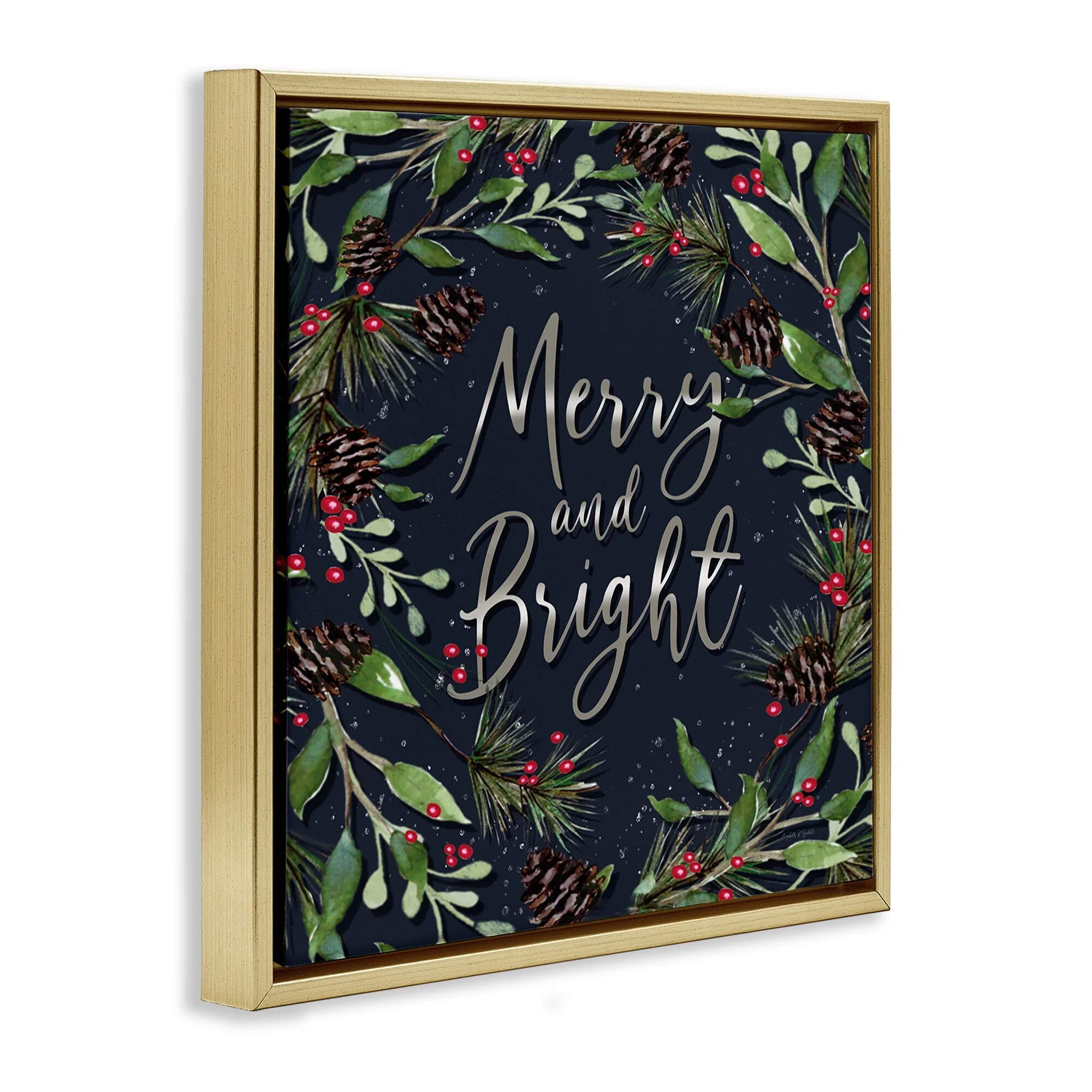• Stupell Merry & Bright with Holly Leaves Framed Floater Canvas Wall Art Design By Elizabeth Tyndall