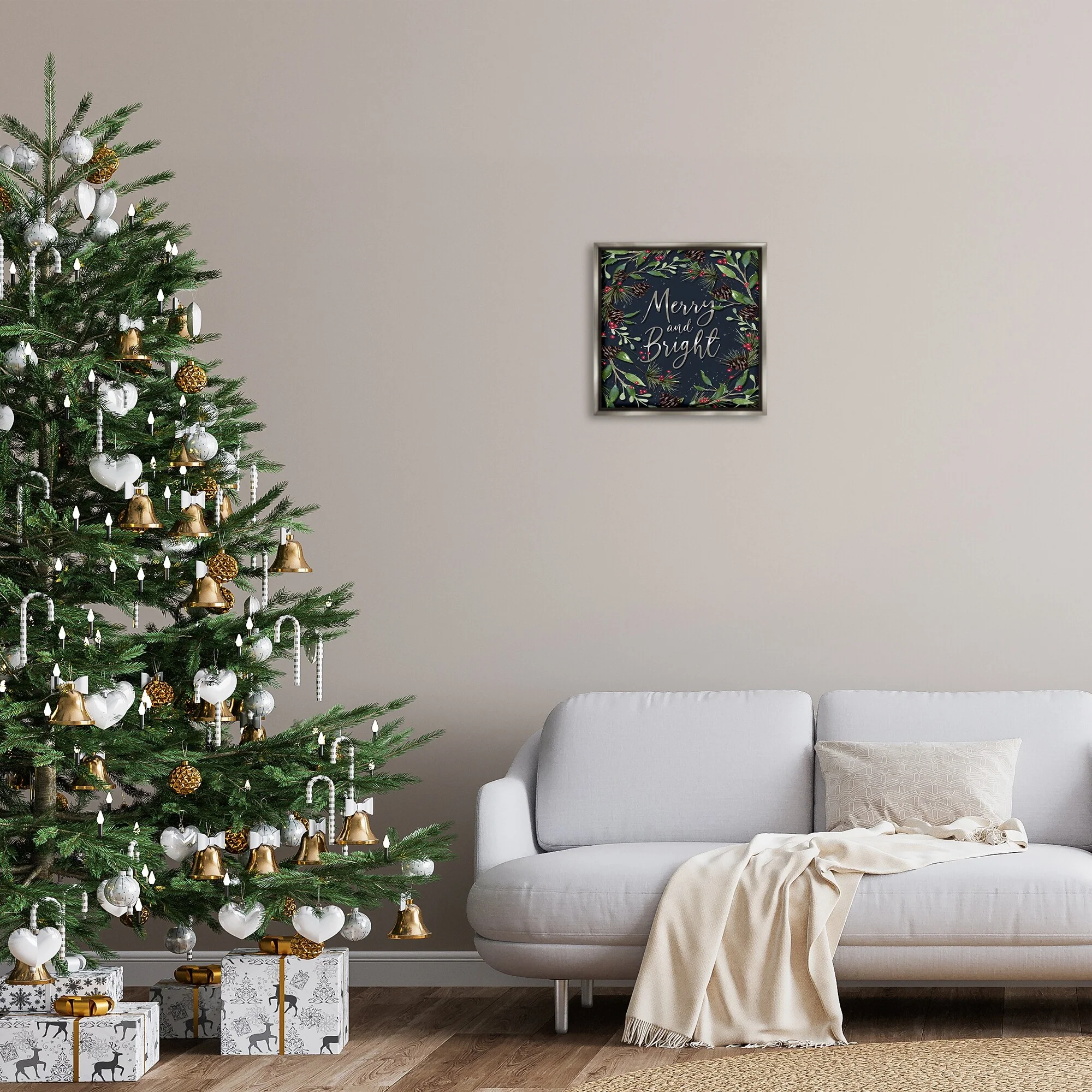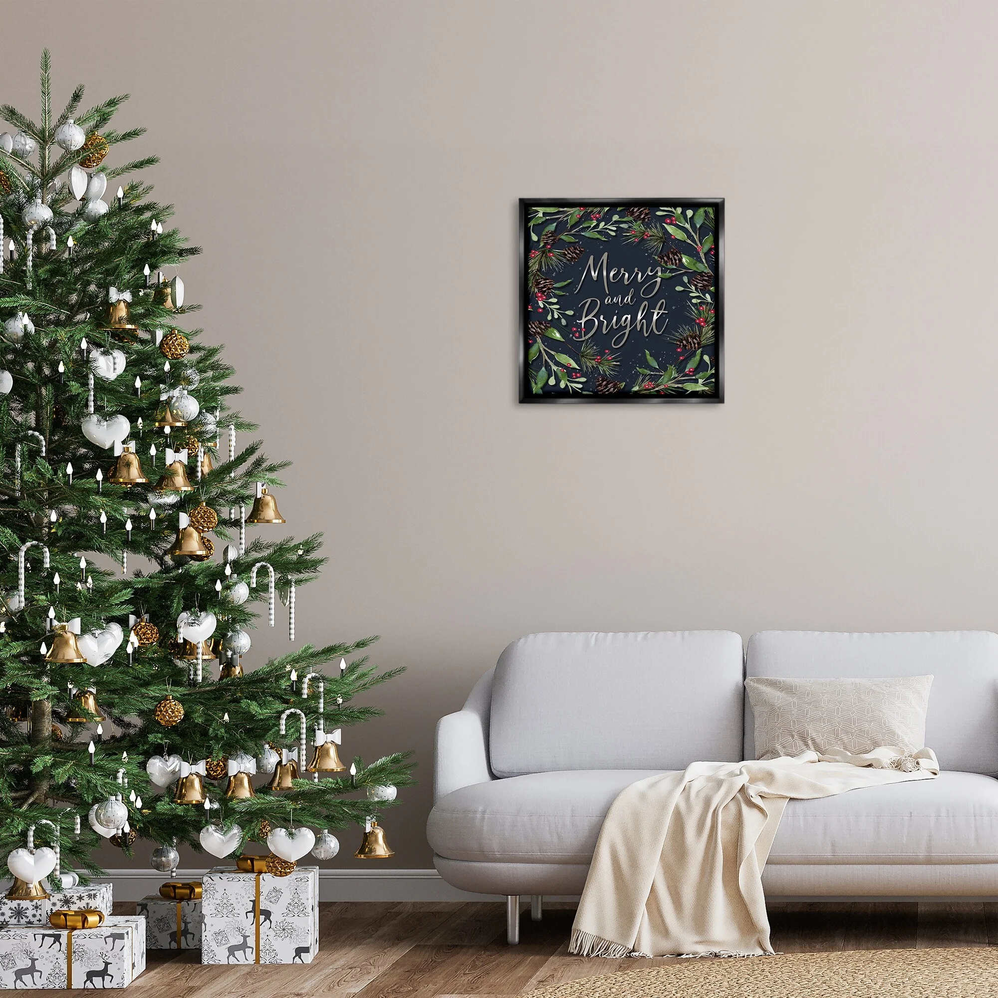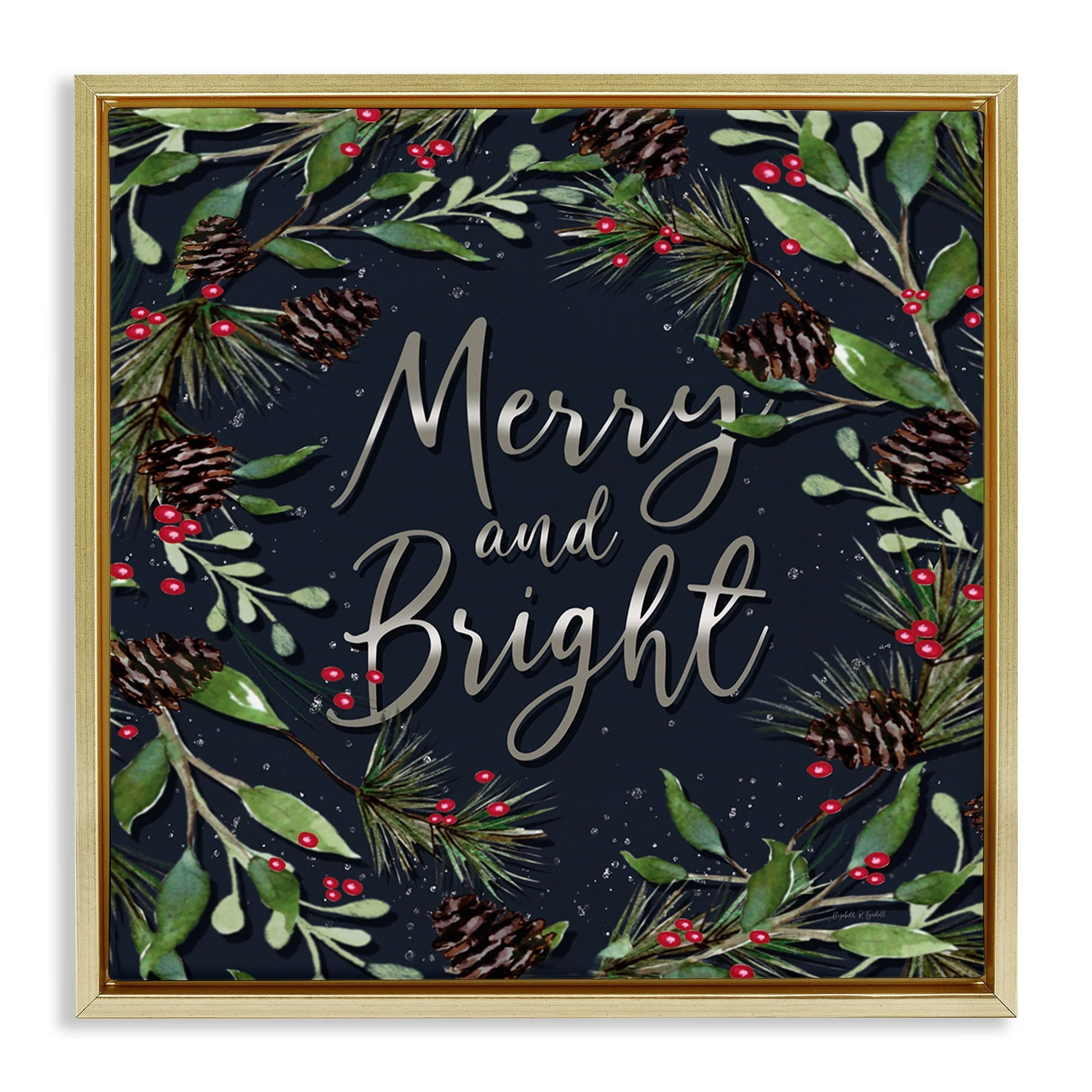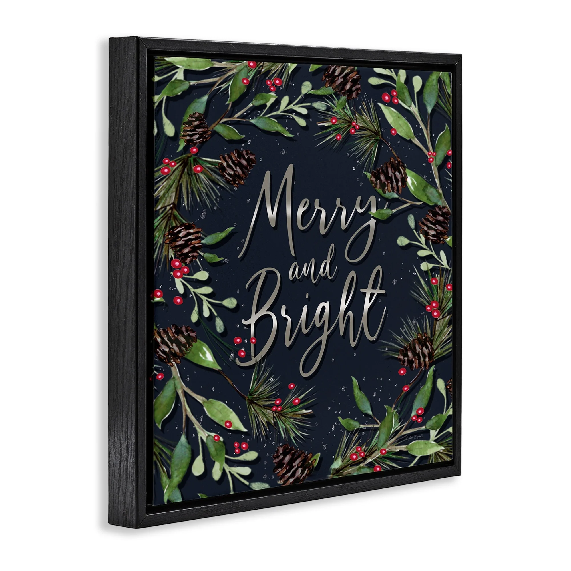 • Stupell Merry & Bright with Holly Leaves Framed Floater Canvas Wall Art Design By Elizabeth Tyndall
