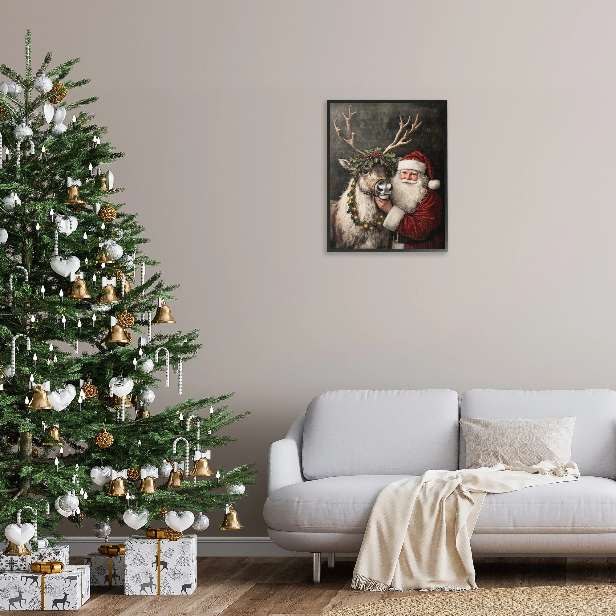 - Artwork Relates To: Holiday, Christmas, Seasonal, Winter, Santa Claus, Animal, Reindeer, Deer, Garland