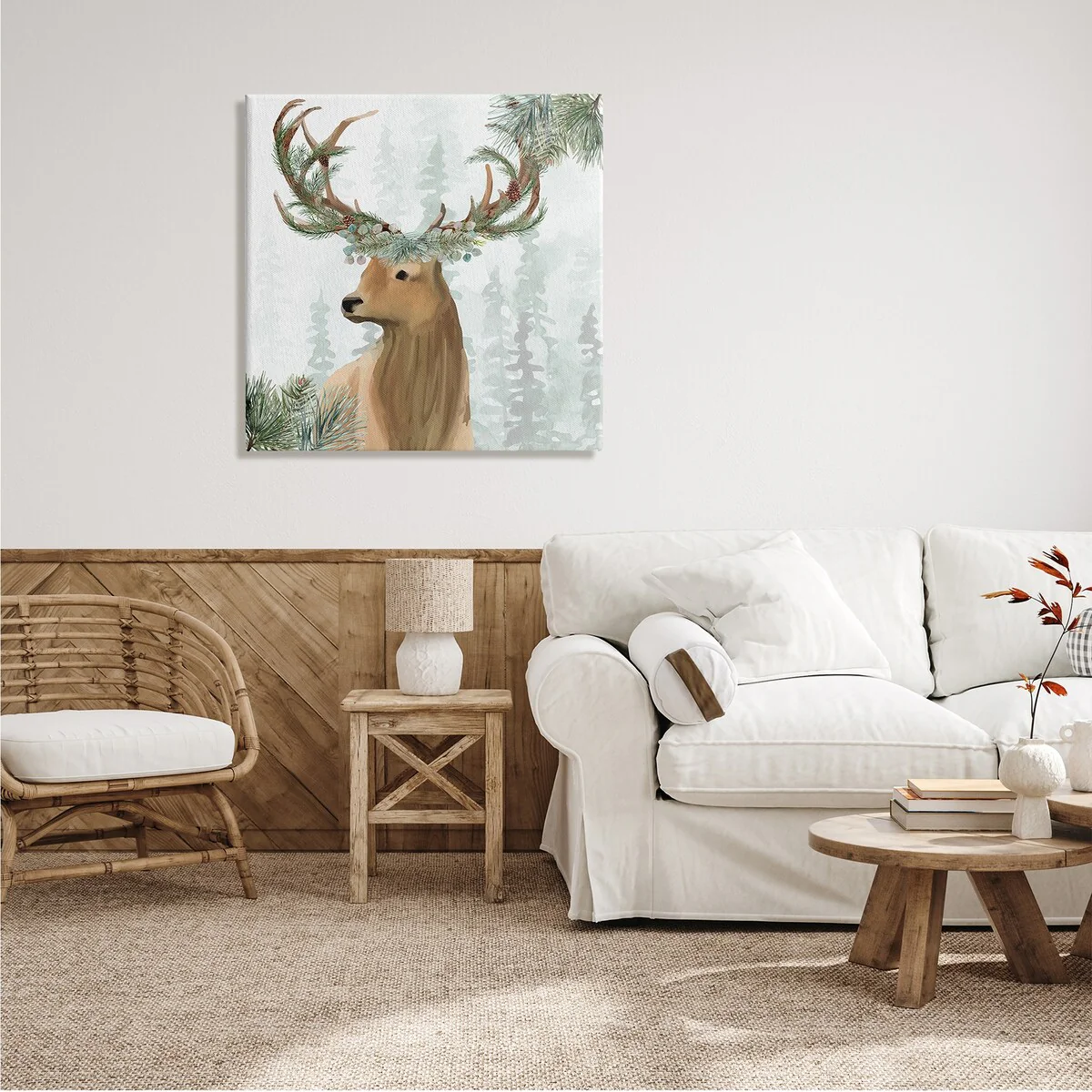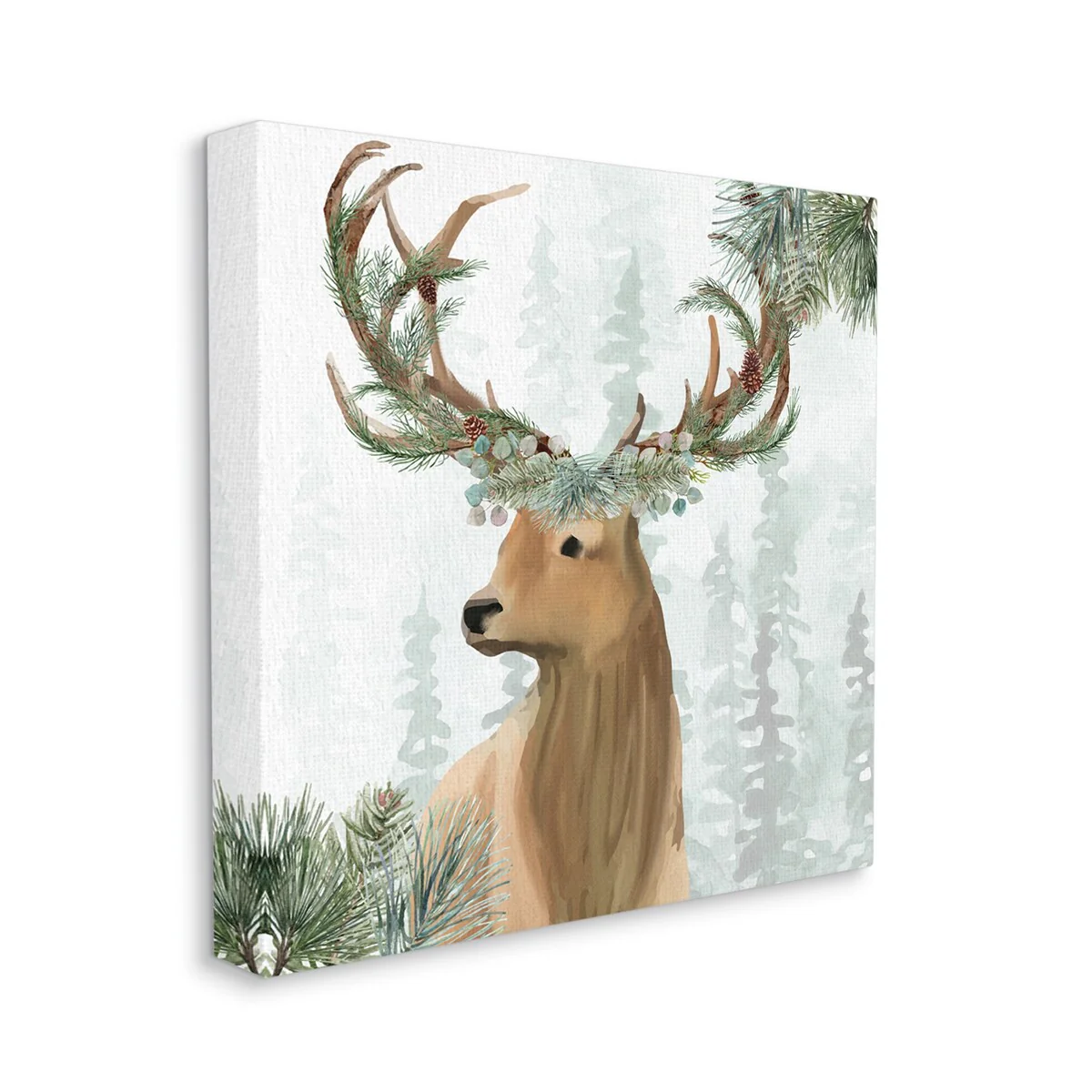 • Stupell Winter Forest Elk Festive Pine Antlers Woodland Trees Canvas Wall Art - Green