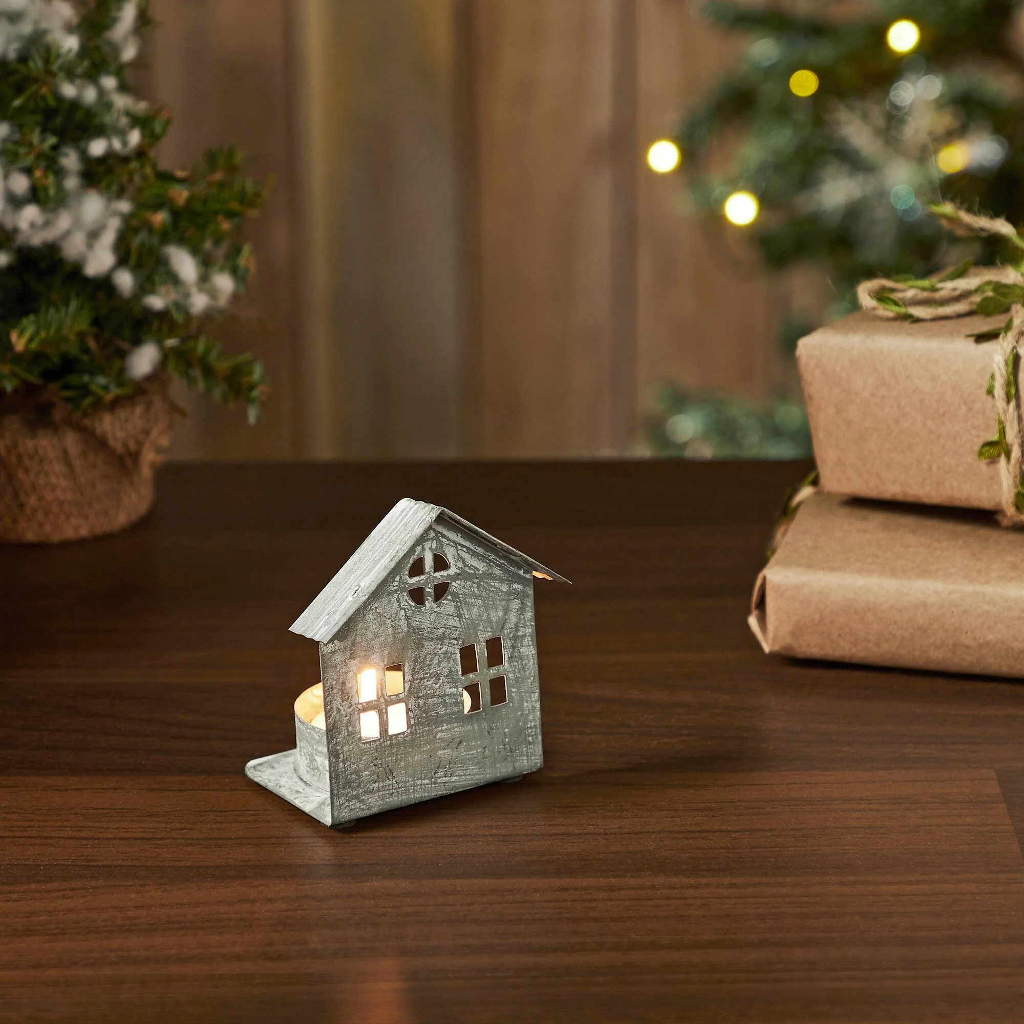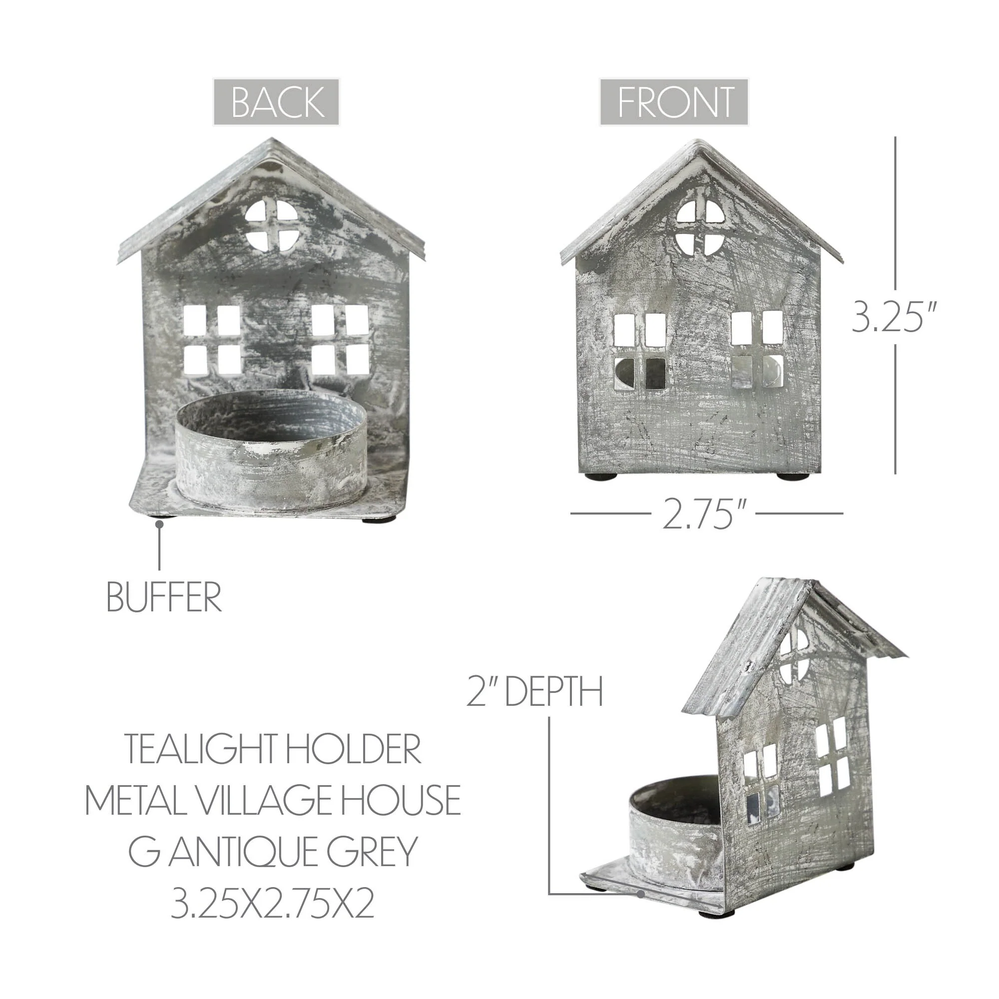 Add a touch of rustic charm to your home decor with the VHC Brands Metal Tealight Holder in Antique Grey. Crafted from sturdy metal, this candle holder features the silhouette of a charming country house with intricately cutout windows, exuding primitive elegance and rustic appeal. The antique grey finish with a distressed appearance lends it a timeless vintage look, perfect for enhancing the ambiance of any space. Measuring 3.25x2.75x2 inches, this tealight holder is compact yet eye-catching, making it an ideal addition to your kitchen, dining table, entryway, or living room. Its versatile design allows it to blend seamlessly into various areas, infusing your home with soft, flickering candlelight and cozy warmth. However, it's crucial to handle this candle holder with care, adhering to the safety precautions to ensure accident-free enjoyment. Cleaning and maintaining this metal village house candle holder is simple - just wipe it clean with a soft cloth to preserve its pristine appearance. The antique grey hue adds an understated elegance that complements a wide range of decor styles, while its primitive and rustic design brings character and nostalgia to your living space. Elevate the ambiance of your home with this delightful tealight holder, creating a serene atmosphere that invites relaxation and enjoyment.