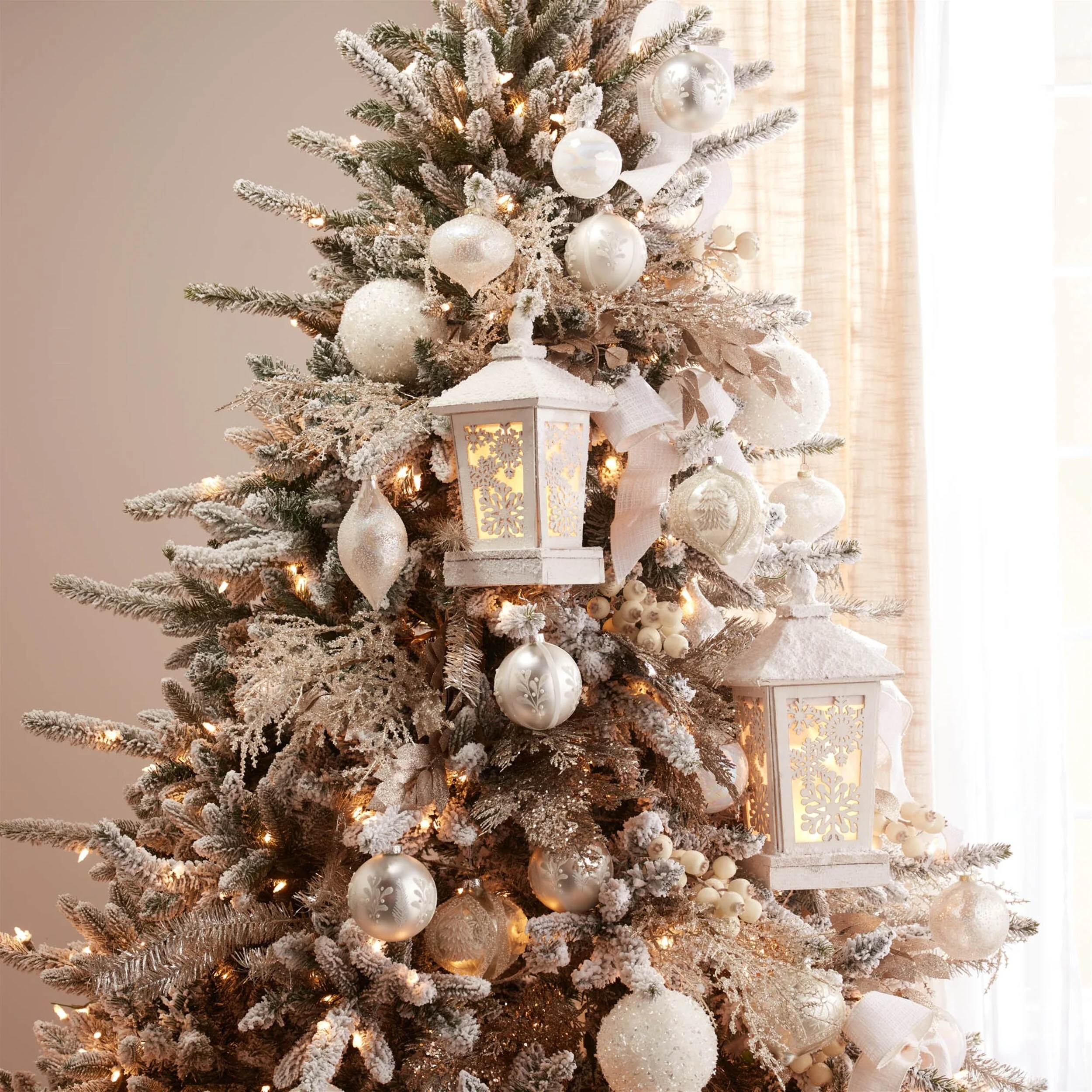 - Stylish Winter Design – Classic white finish with snowy flocking and intricate snowflake cut-outs.