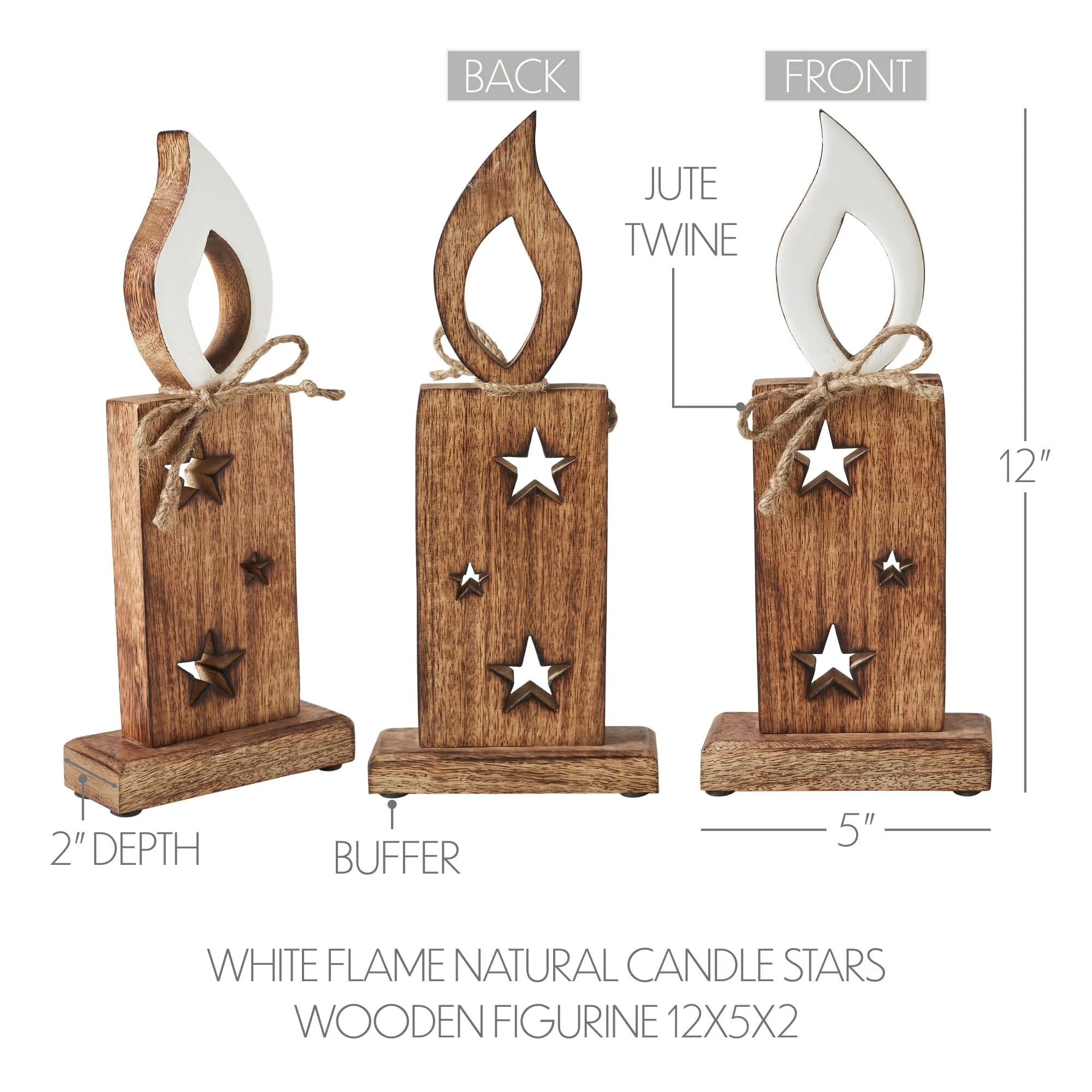Illuminate your home with the enchanting glow of the VHC Brands Tropical Wood White Flame Candle Figurine, a captivating piece of home decor perfect for tables and shelves. Crafted from tropical wood, this unique figurine features a candle shape adorned with charming cutout stars and a dancing wood flame design. Measuring 12 inches in height, 5 inches in width, and 2 inches in depth, it adds a touch of rustic elegance to any room, casting a warm and inviting ambiance that is reminiscent of vintage country Christmas celebrations. The dark brown and soft white color scheme of this candle figurine perfectly captures the farmhouse and country-inspired aesthetic, lending a timeless appeal to your indoor decorations. Its distressed appearance adds to its vintage charm, creating a cozy atmosphere that evokes feelings of nostalgia and comfort. Whether placed in your bathroom, bedroom, dining room, entryway, kitchen, or living room, this figurine serves as a delightful accent piece that brings the spirit of the holiday season into your home.Maintaining the pristine condition of this figurine is effortless - simply wipe it clean with a soft cloth to remove dust and maintain its intricate details. With its captivating design and vintage country Christmas motif, the VHC Brands Tropical Wood White Flame Candle Figurine adds a touch of festive charm to your home decor, creating a welcoming environment that invites friends and family to gather and celebrate the joys of the season.