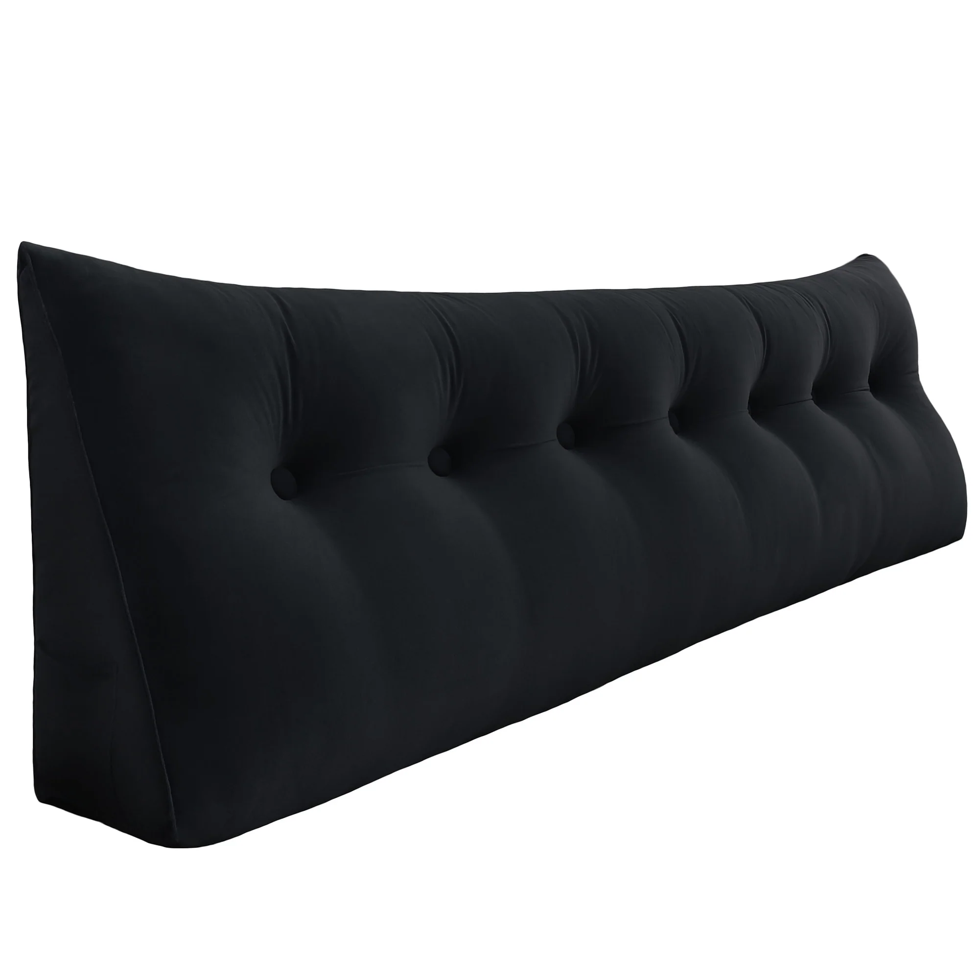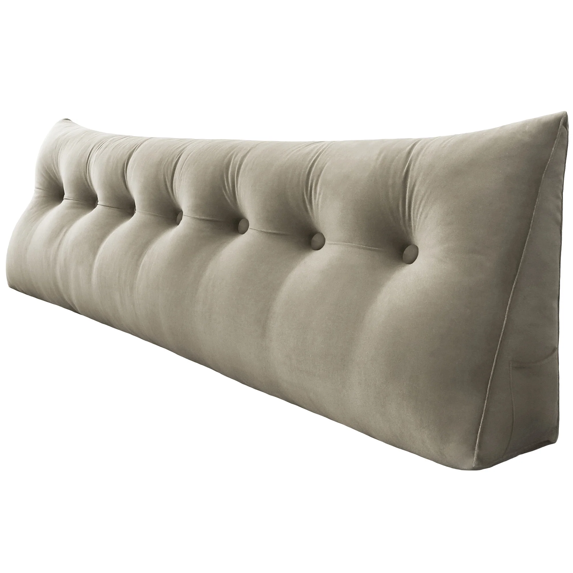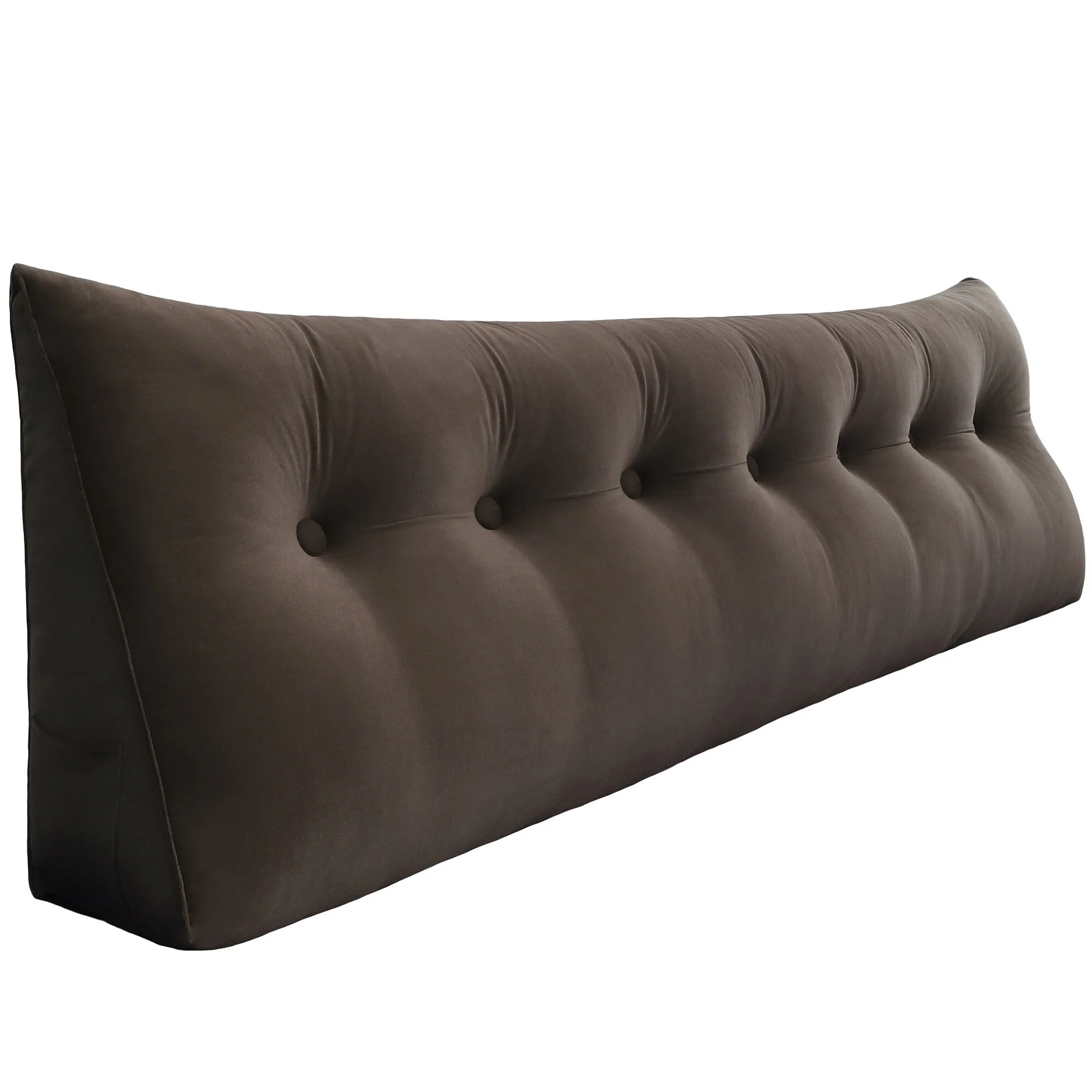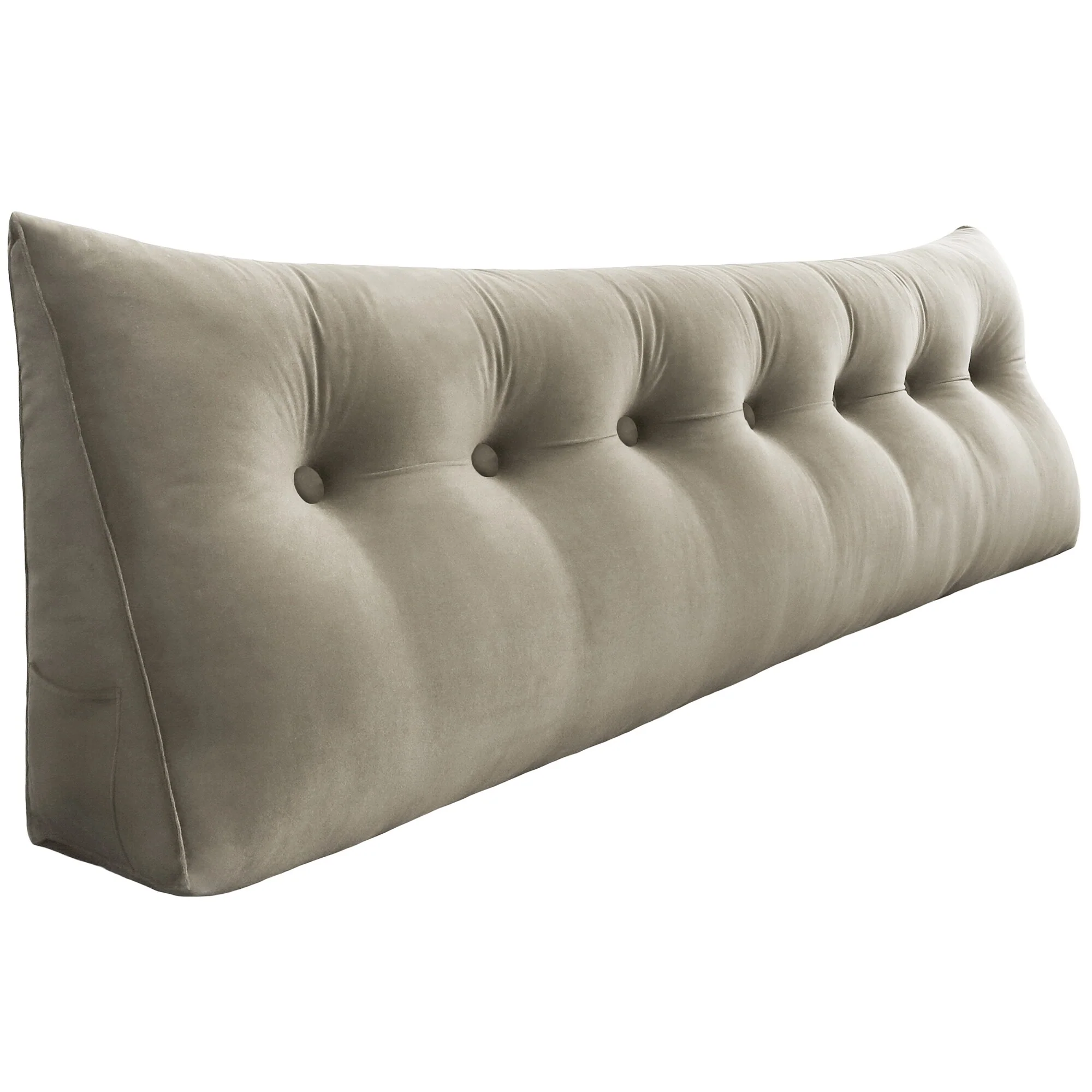 Get the ultimate comfort and support for your back, lumbar, and shoulders with the WOWMAX Bed Rest Wedge Reading Pillow Bolster Back Support Headboard. Perfect for reading, watching TV, surfing the laptop, playing video games, breastfeeding, or resting after surgery, this extra-long, fiber-filled pillow provides a cozy place to relax. Use it to prop up your neck and head in a reclined position or elevate your legs for proper upright positioning. It even doubles as a removable headboard against the wall or an upholstered headboard. The soft yet sturdy design offers relief from acid reflux, GERD, heartburn, and back pains. Plus, the unique triangular shape and velvet cover make it an attractive decorative accent for any bed or deep sofa.