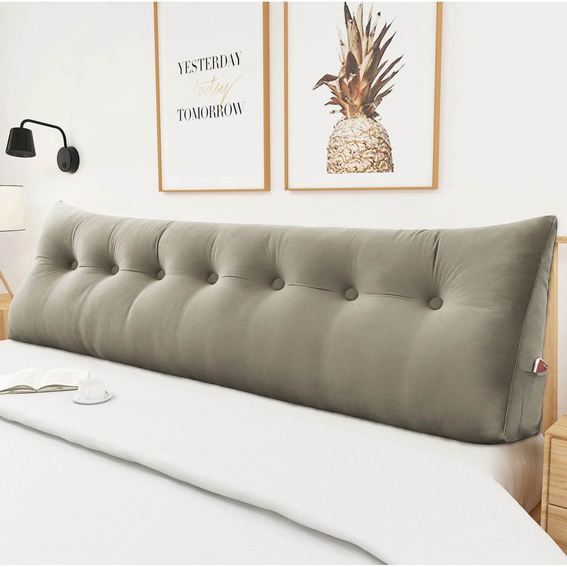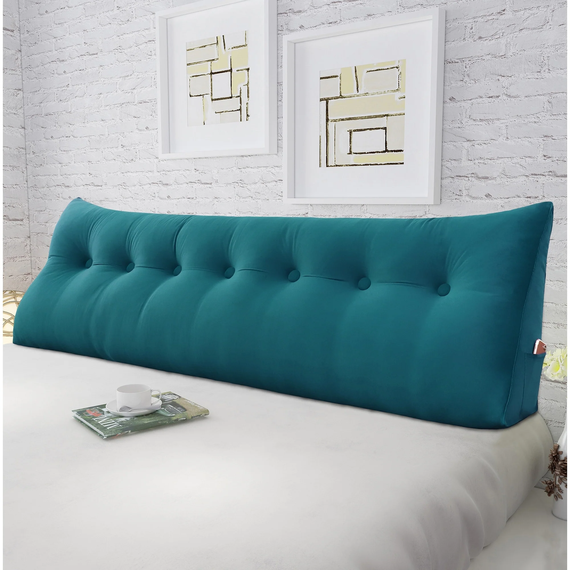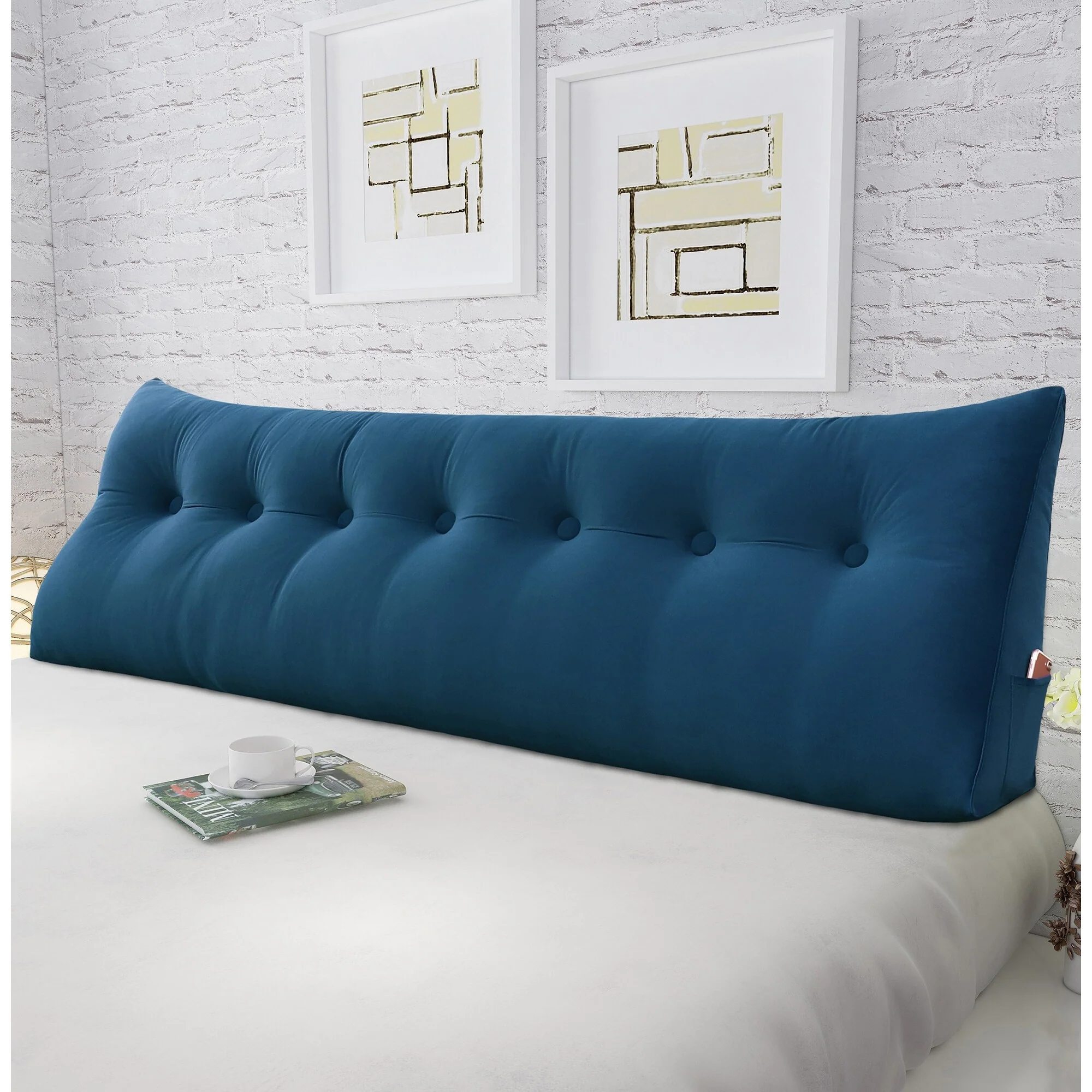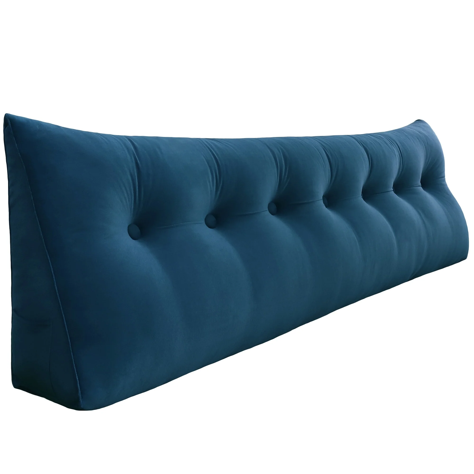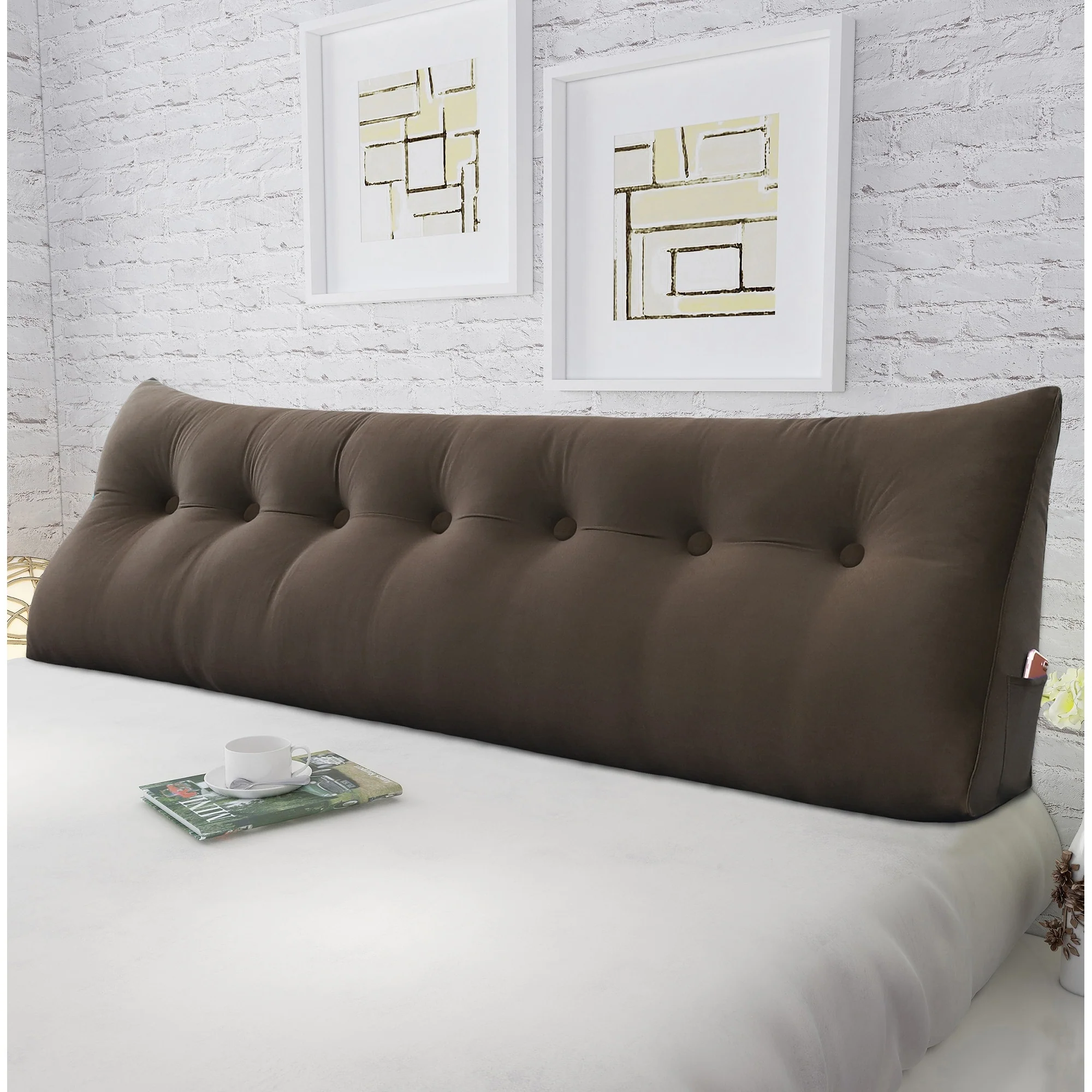 Get the ultimate comfort and support for your back, lumbar, and shoulders with the WOWMAX Bed Rest Wedge Reading Pillow Bolster Back Support Headboard. Perfect for reading, watching TV, surfing the laptop, playing video games, breastfeeding, or resting after surgery, this extra-long, fiber-filled pillow provides a cozy place to relax. Use it to prop up your neck and head in a reclined position or elevate your legs for proper upright positioning. It even doubles as a removable headboard against the wall or an upholstered headboard. The soft yet sturdy design offers relief from acid reflux, GERD, heartburn, and back pains. Plus, the unique triangular shape and velvet cover make it an attractive decorative accent for any bed or deep sofa.