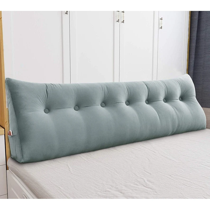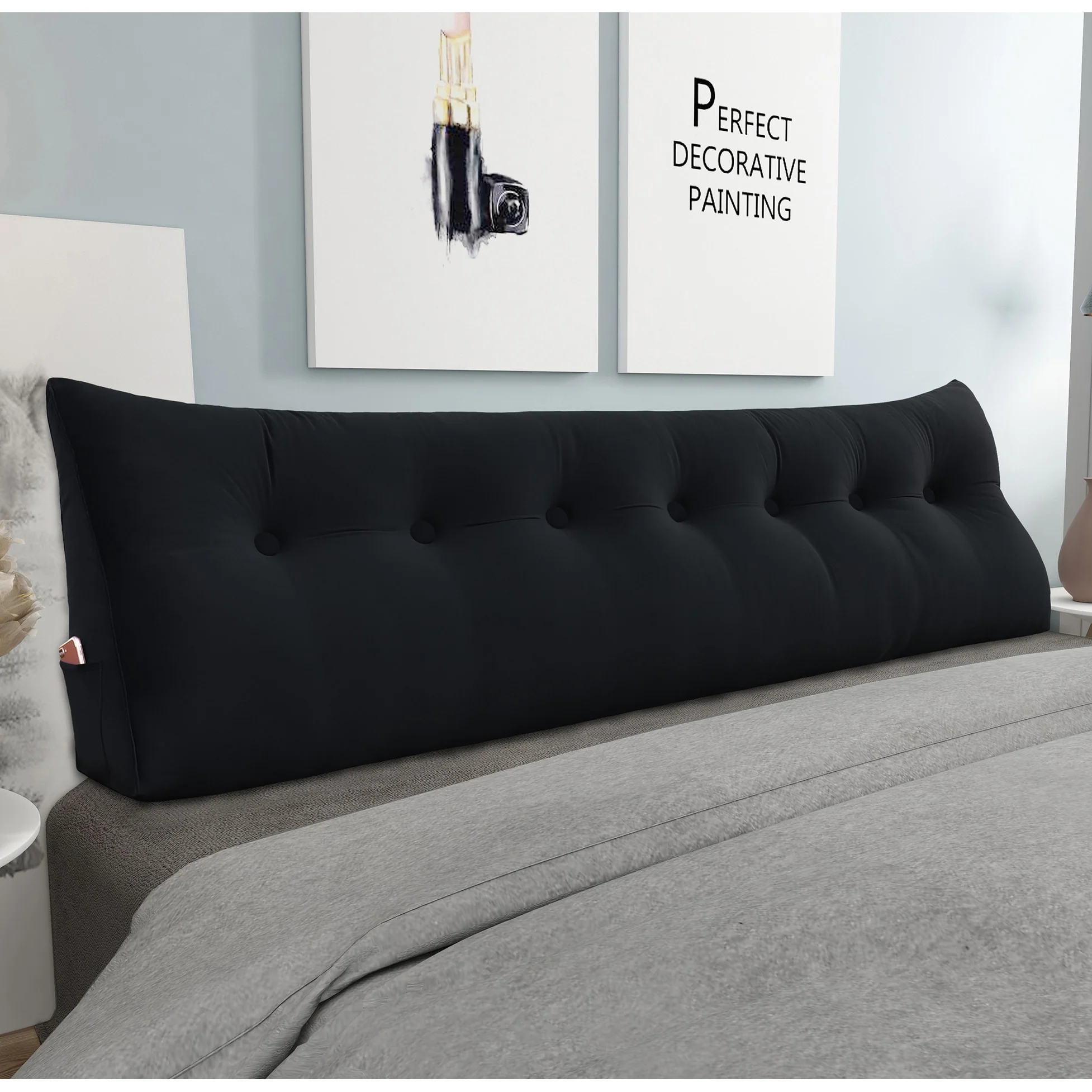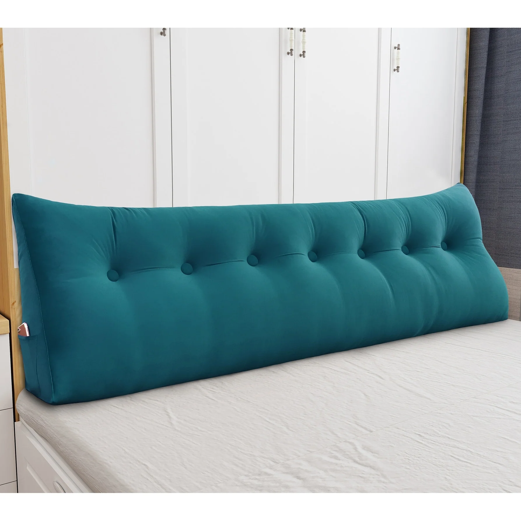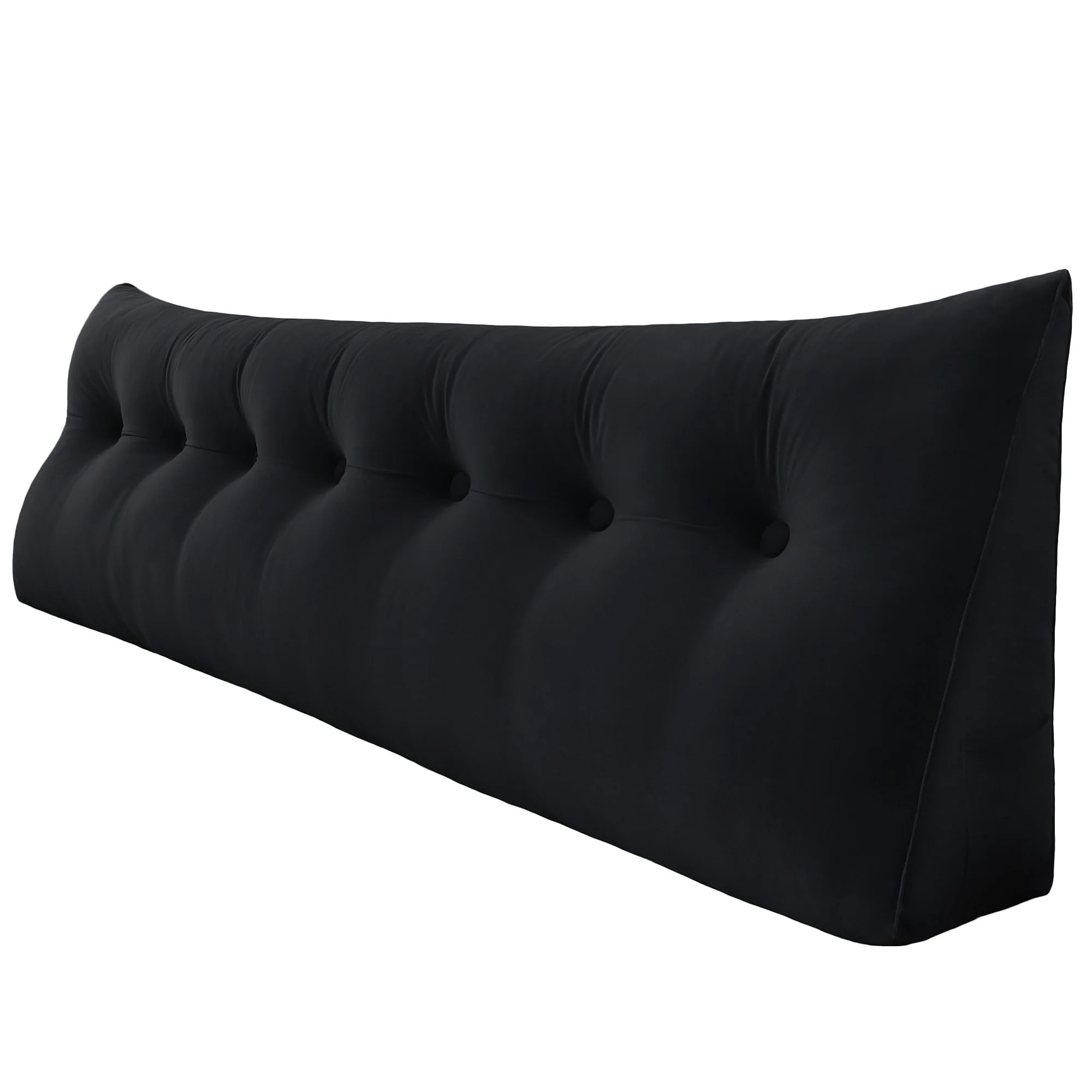 Get the ultimate comfort and support for your back, lumbar, and shoulders with the WOWMAX Bed Rest Wedge Reading Pillow Bolster Back Support Headboard. Perfect for reading, watching TV, surfing the laptop, playing video games, breastfeeding, or resting after surgery, this extra-long, fiber-filled pillow provides a cozy place to relax. Use it to prop up your neck and head in a reclined position or elevate your legs for proper upright positioning. It even doubles as a removable headboard against the wall or an upholstered headboard. The soft yet sturdy design offers relief from acid reflux, GERD, heartburn, and back pains. Plus, the unique triangular shape and velvet cover make it an attractive decorative accent for any bed or deep sofa.