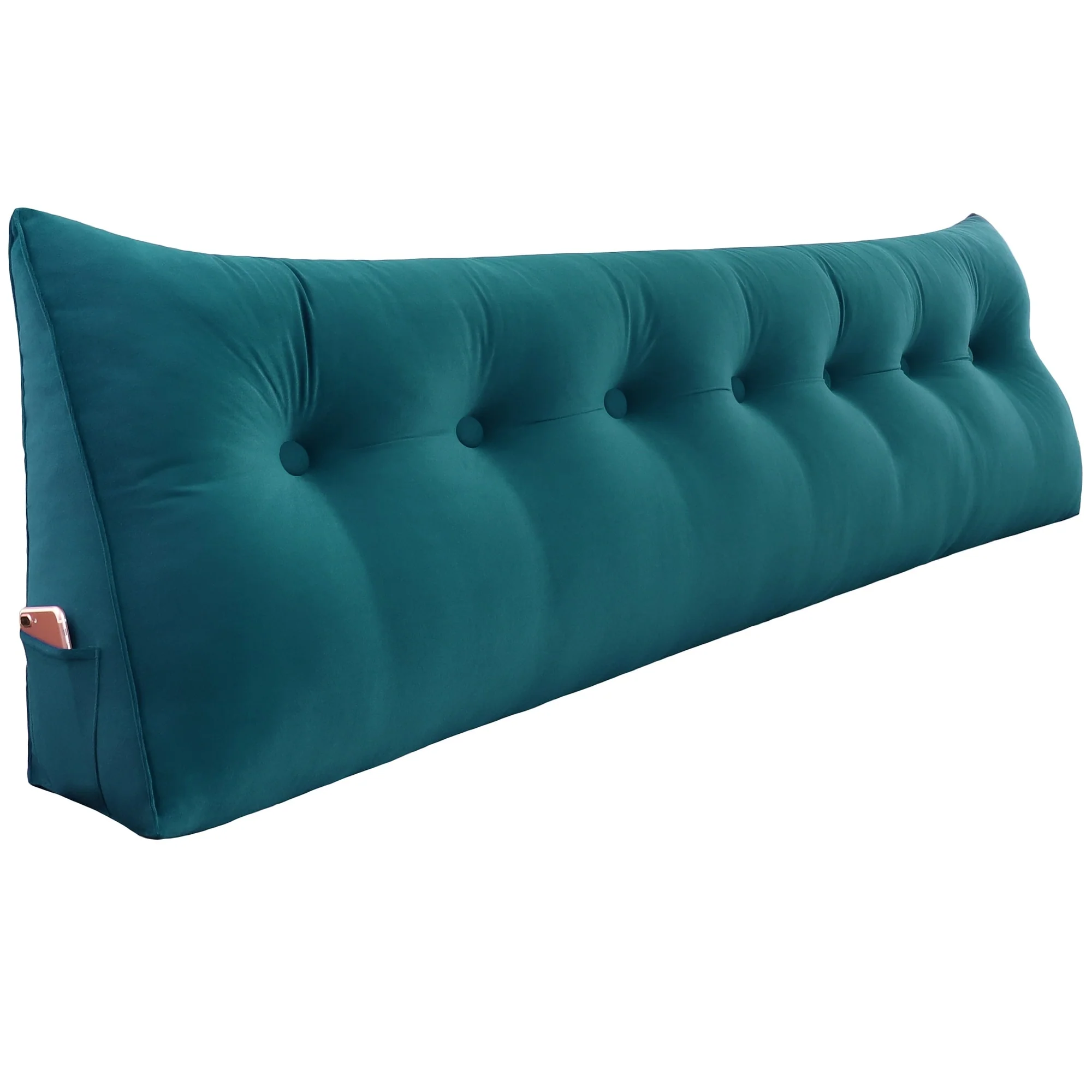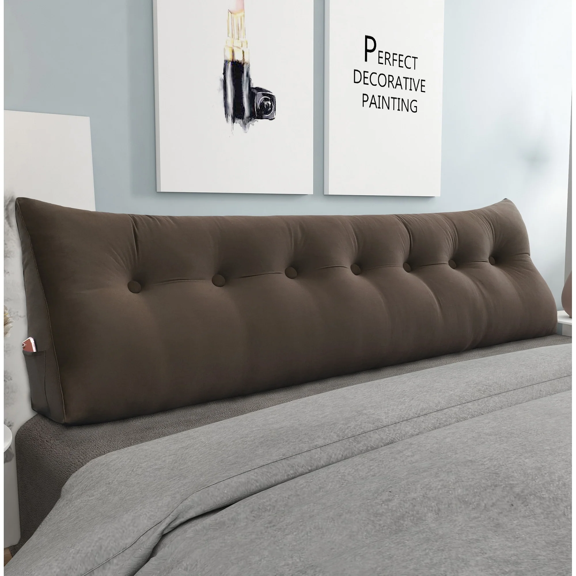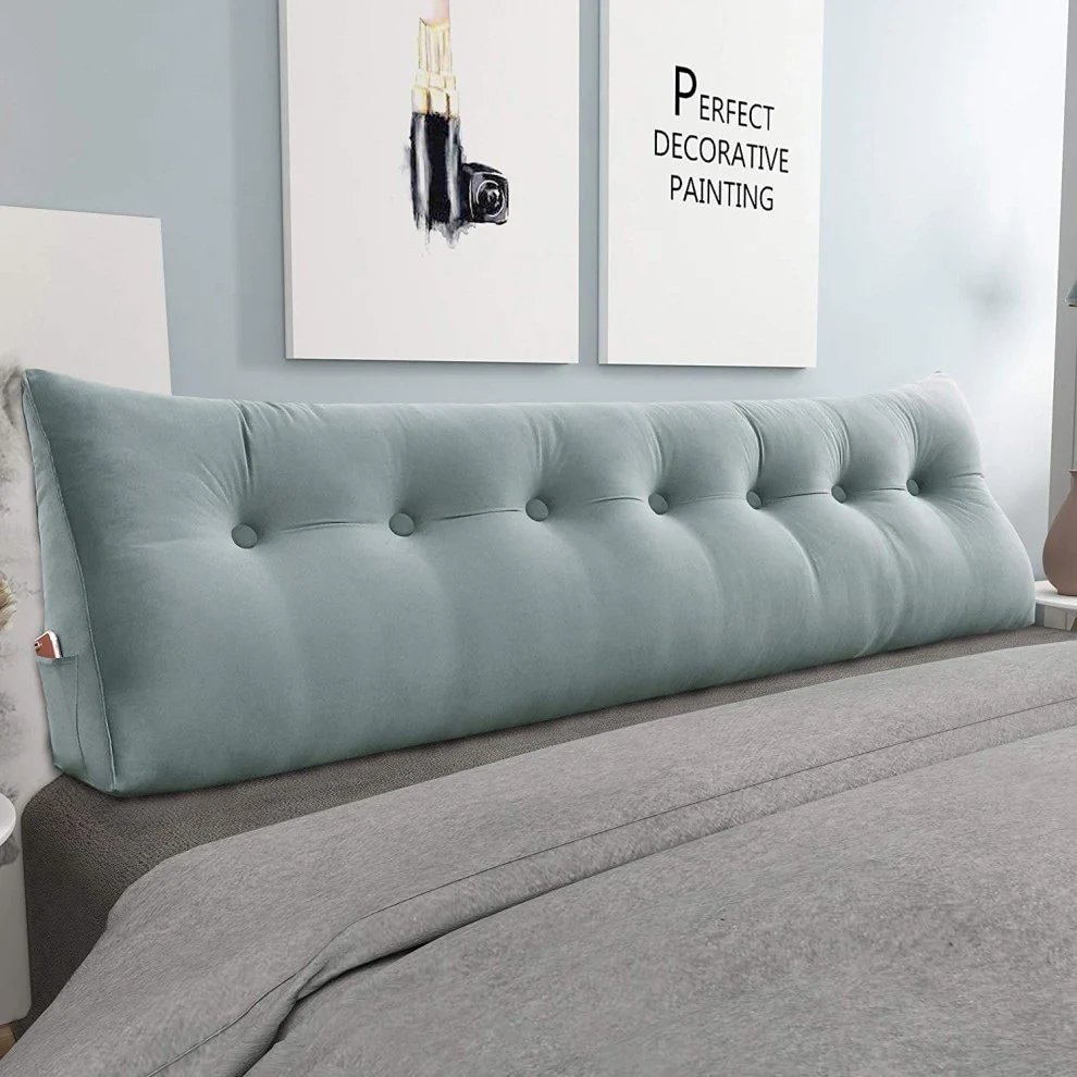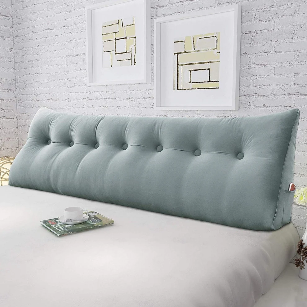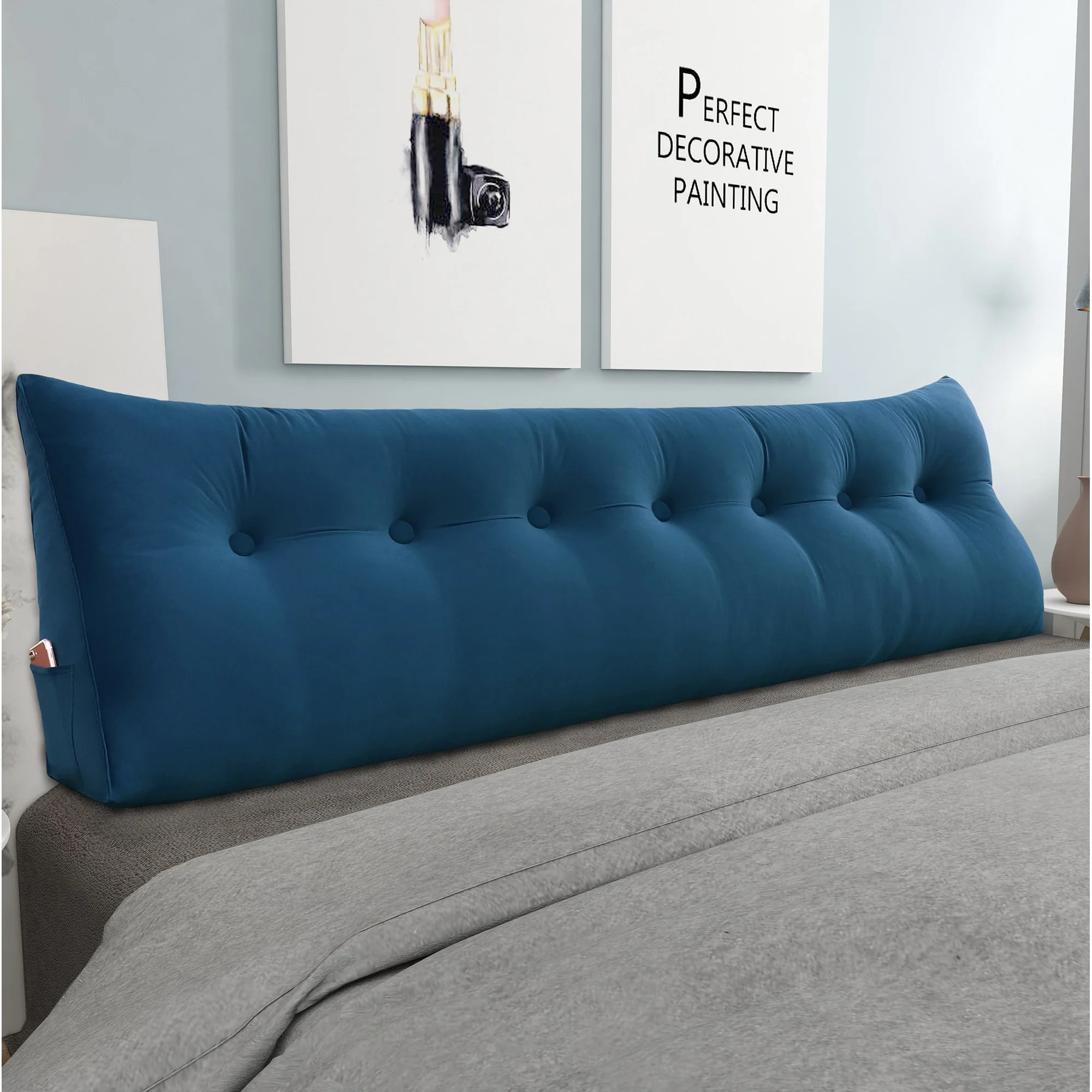 Get the ultimate comfort and support for your back, lumbar, and shoulders with the WOWMAX Bed Rest Wedge Reading Pillow Bolster Back Support Headboard. Perfect for reading, watching TV, surfing the laptop, playing video games, breastfeeding, or resting after surgery, this extra-long, fiber-filled pillow provides a cozy place to relax. Use it to prop up your neck and head in a reclined position or elevate your legs for proper upright positioning. It even doubles as a removable headboard against the wall or an upholstered headboard. The soft yet sturdy design offers relief from acid reflux, GERD, heartburn, and back pains. Plus, the unique triangular shape and velvet cover make it an attractive decorative accent for any bed or deep sofa.