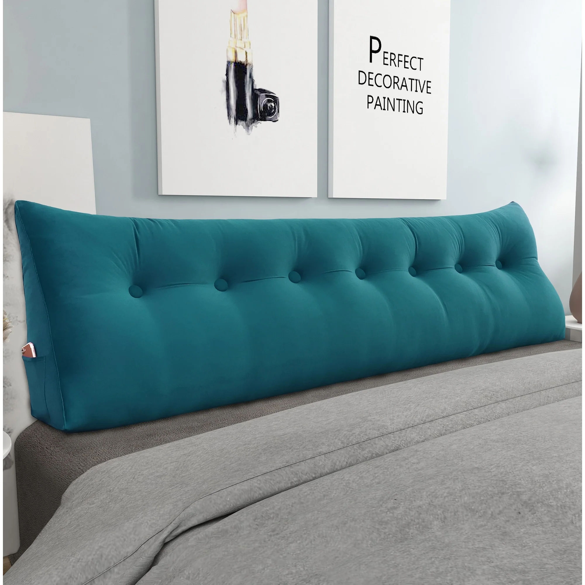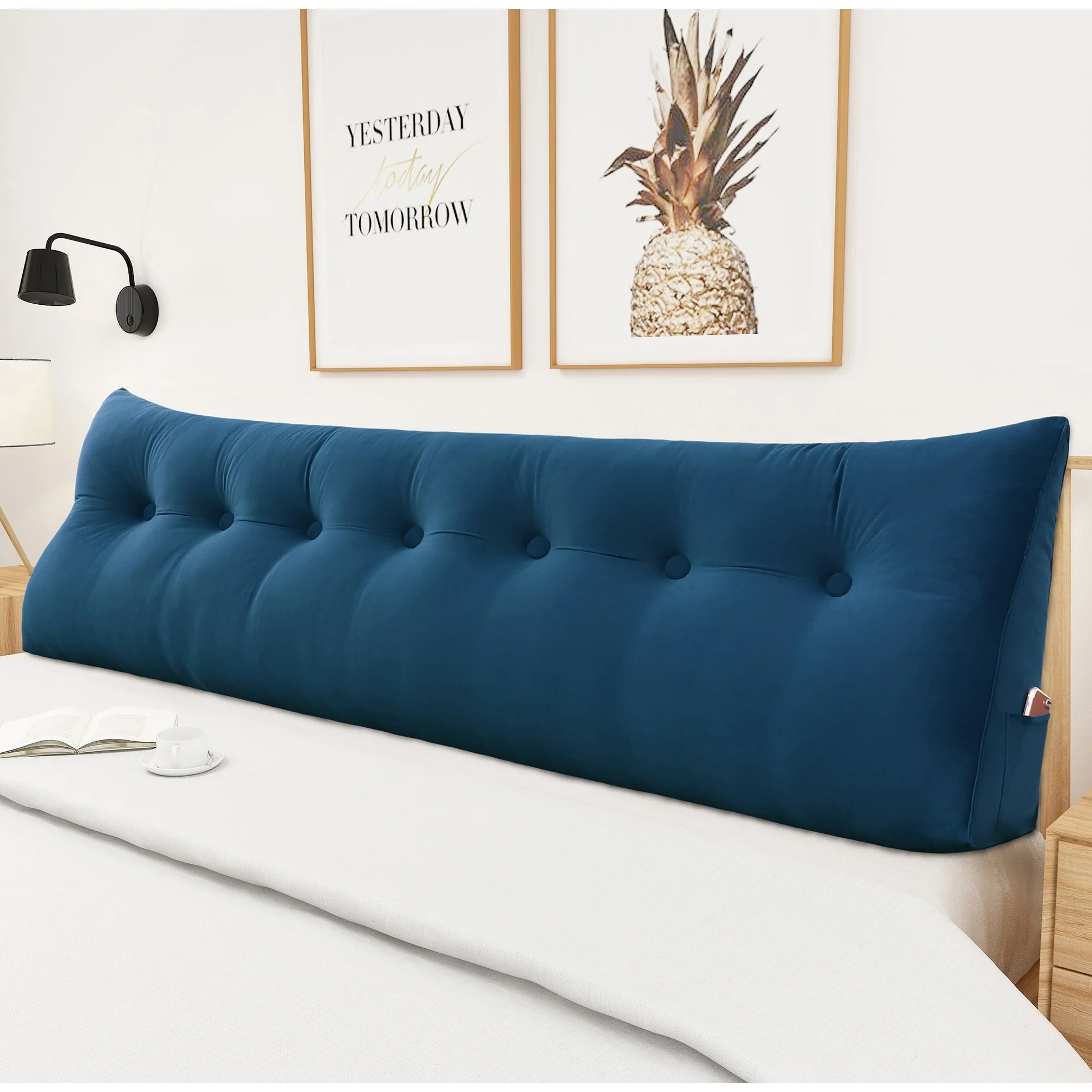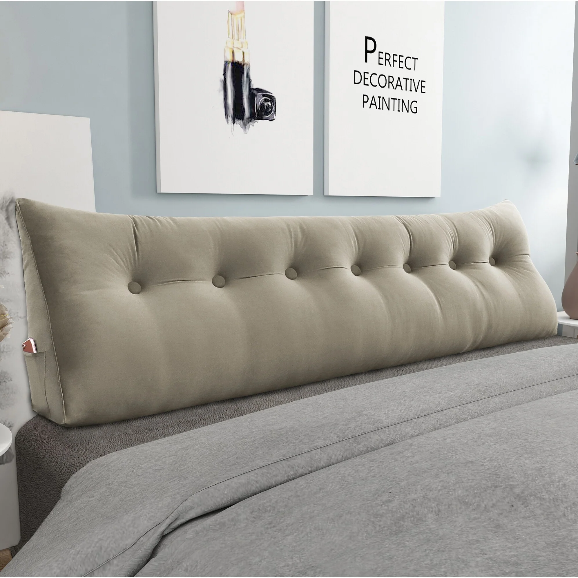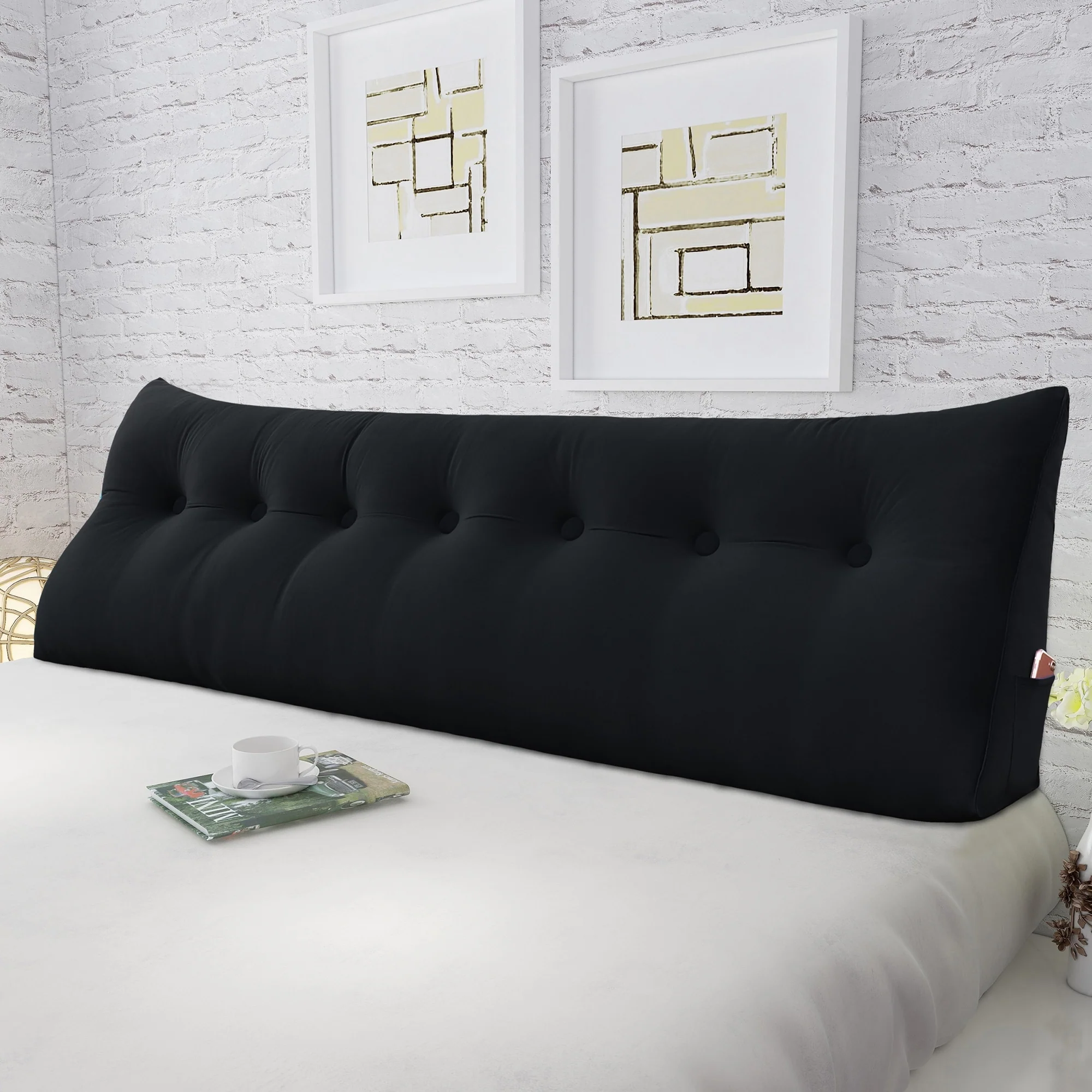 Get the ultimate comfort and support for your back, lumbar, and shoulders with the WOWMAX Bed Rest Wedge Reading Pillow Bolster Back Support Headboard. Perfect for reading, watching TV, surfing the laptop, playing video games, breastfeeding, or resting after surgery, this extra-long, fiber-filled pillow provides a cozy place to relax. Use it to prop up your neck and head in a reclined position or elevate your legs for proper upright positioning. It even doubles as a removable headboard against the wall or an upholstered headboard. The soft yet sturdy design offers relief from acid reflux, GERD, heartburn, and back pains. Plus, the unique triangular shape and velvet cover make it an attractive decorative accent for any bed or deep sofa.