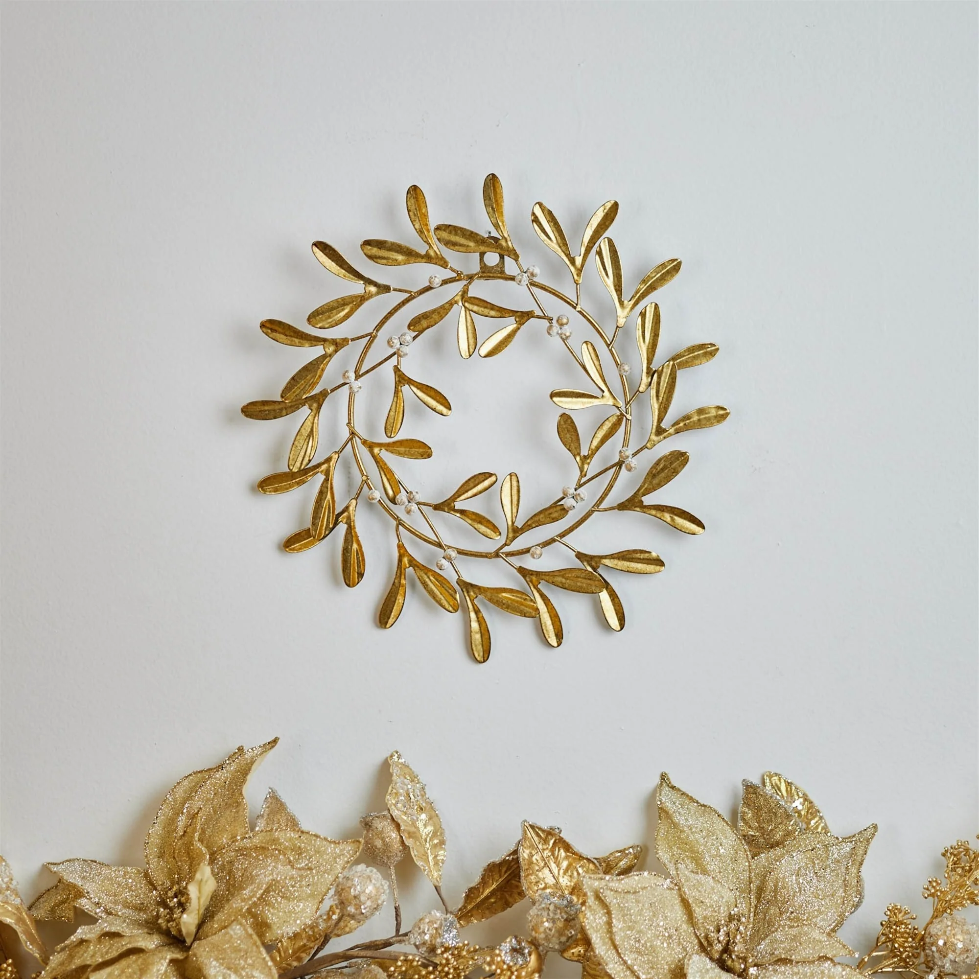 Mistletoe leaf Metal Christmas Wreath Decoration - 12" - Gold