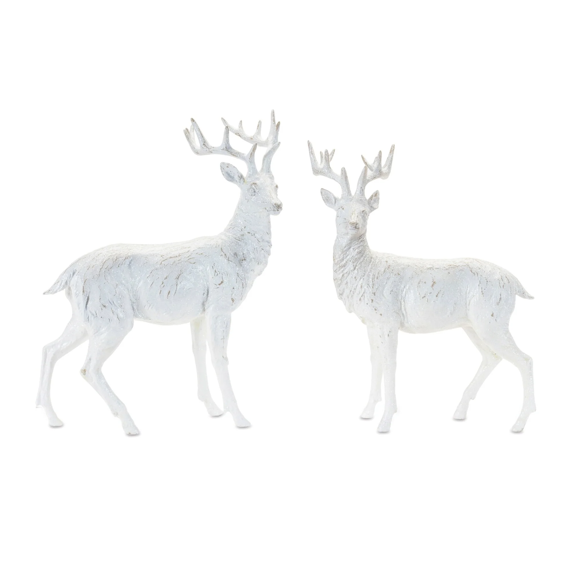 Standing Winter Deer Christmas Figurines - 17" - White and Gray - Set of 2