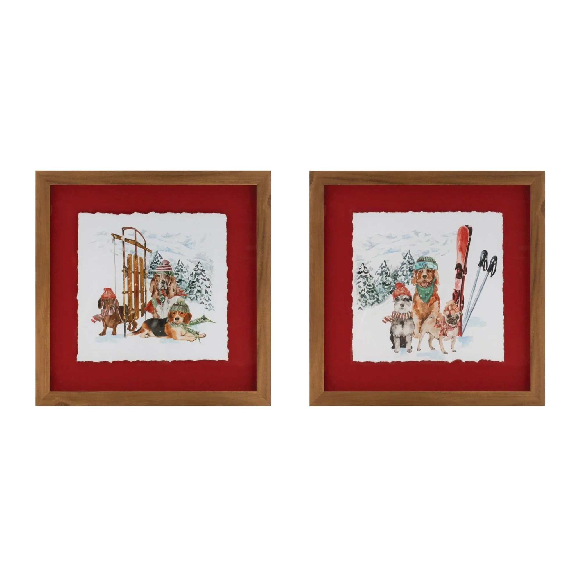 Wooden Framed Ski Dogs Christmas Canvas Wall Art - 20.25" x 16.25"