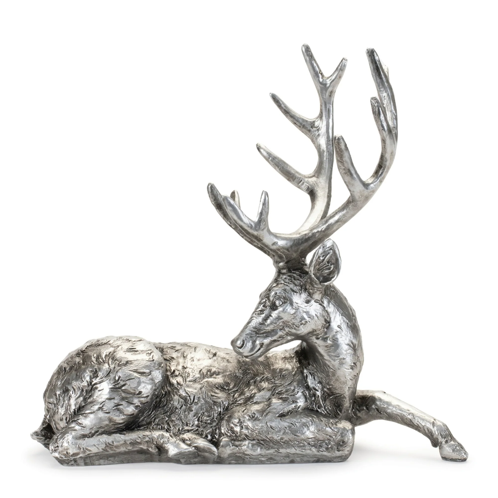 Lying Deer Christmas Figurines - 15" - Silver and Gray - Set of 2