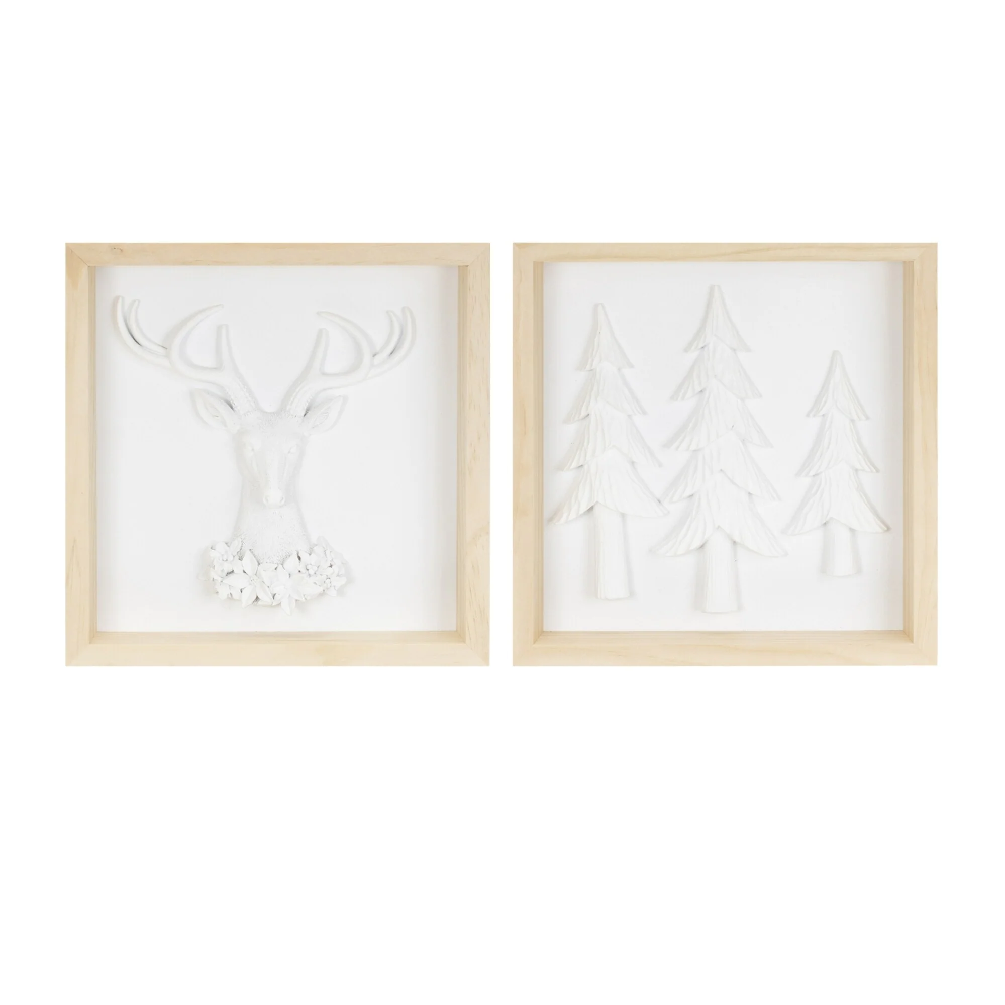 Deer and Tree Square Framed Christmas Wall Arts - 11.75"- Set of 2