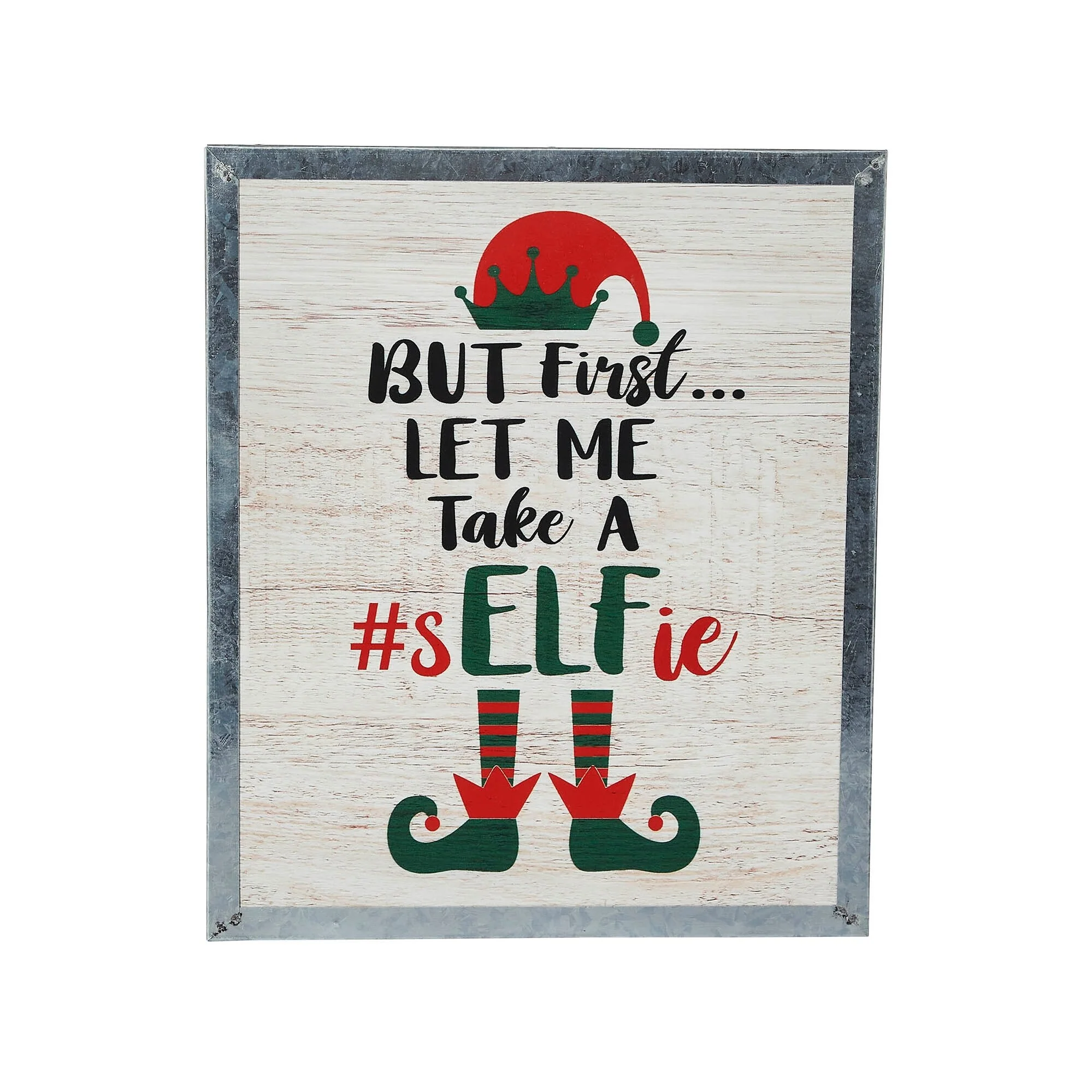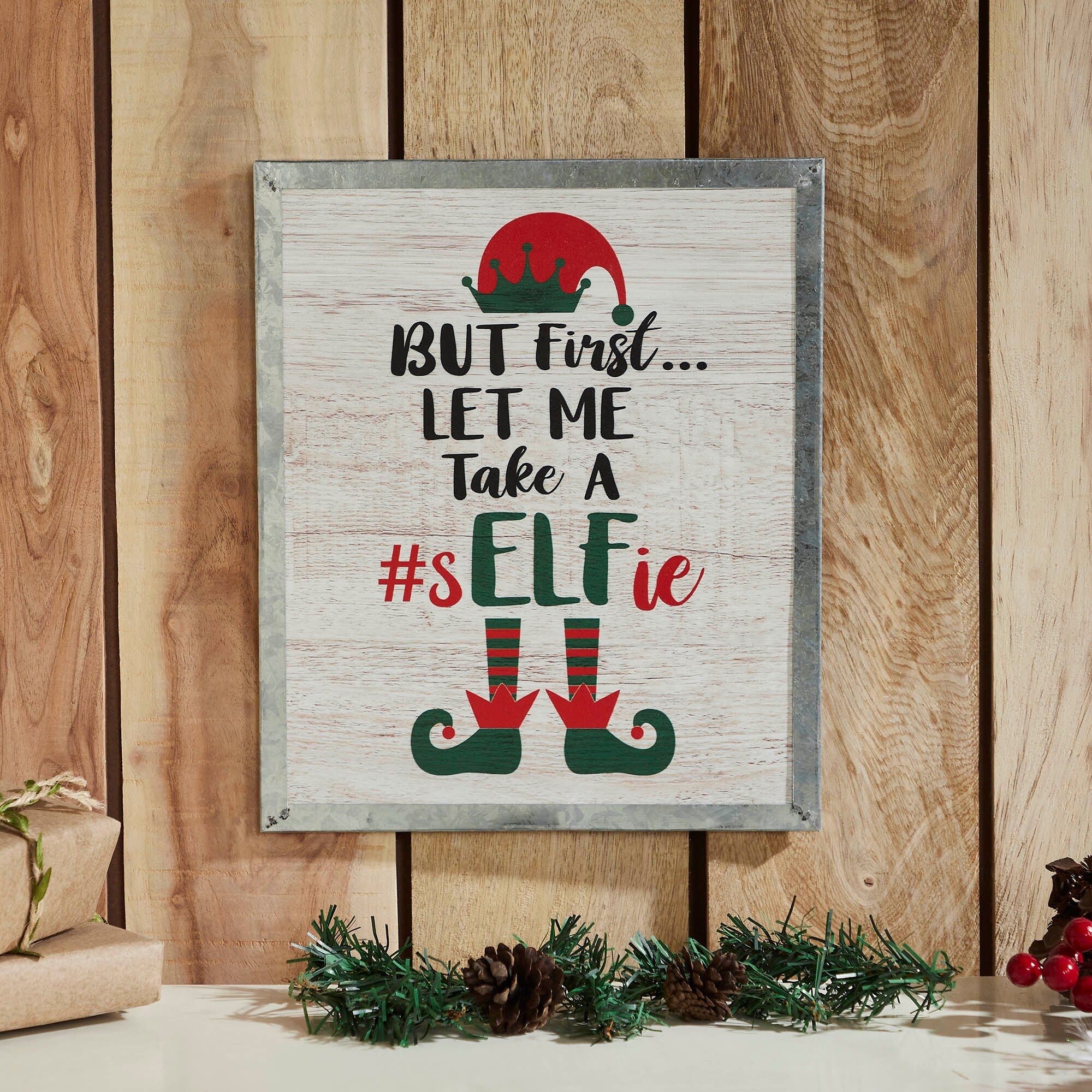 Let Me Take A Selfie Elf Framed Wall Hanging Sign 12x10