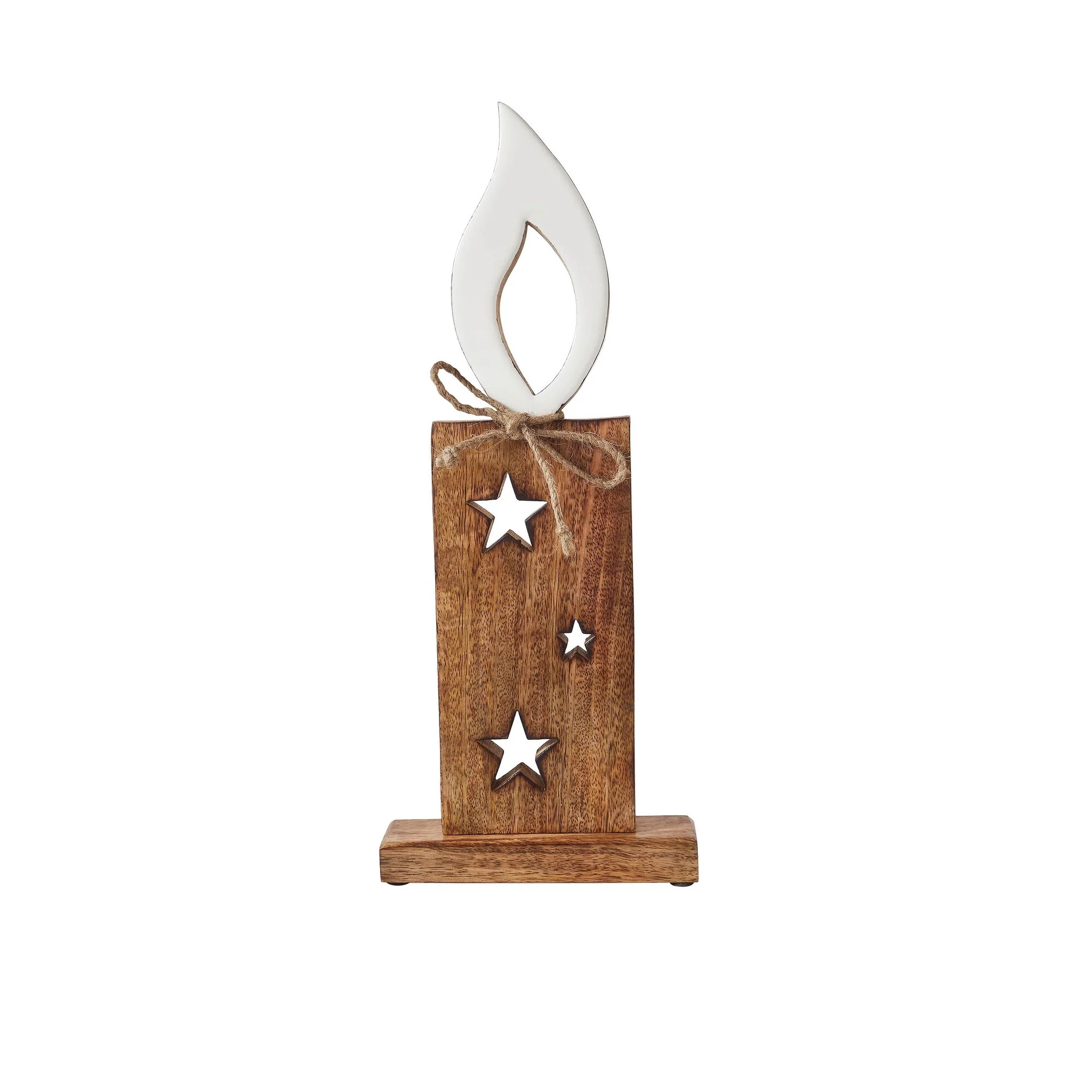White Flame Natural Candle w/ Stars Wooden Figurine 17x7x2