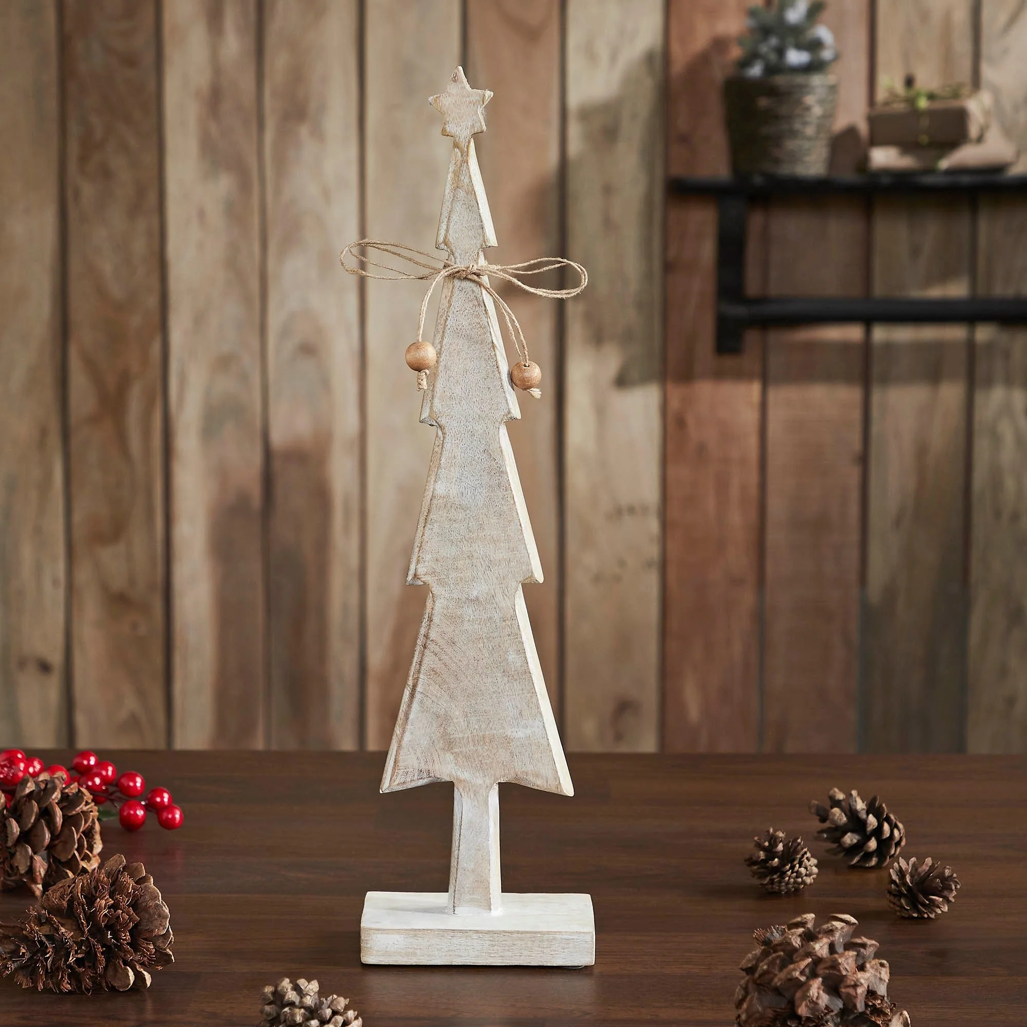 Christmas Tree Distressed White Wooden Figurine 19.5x6x1.5