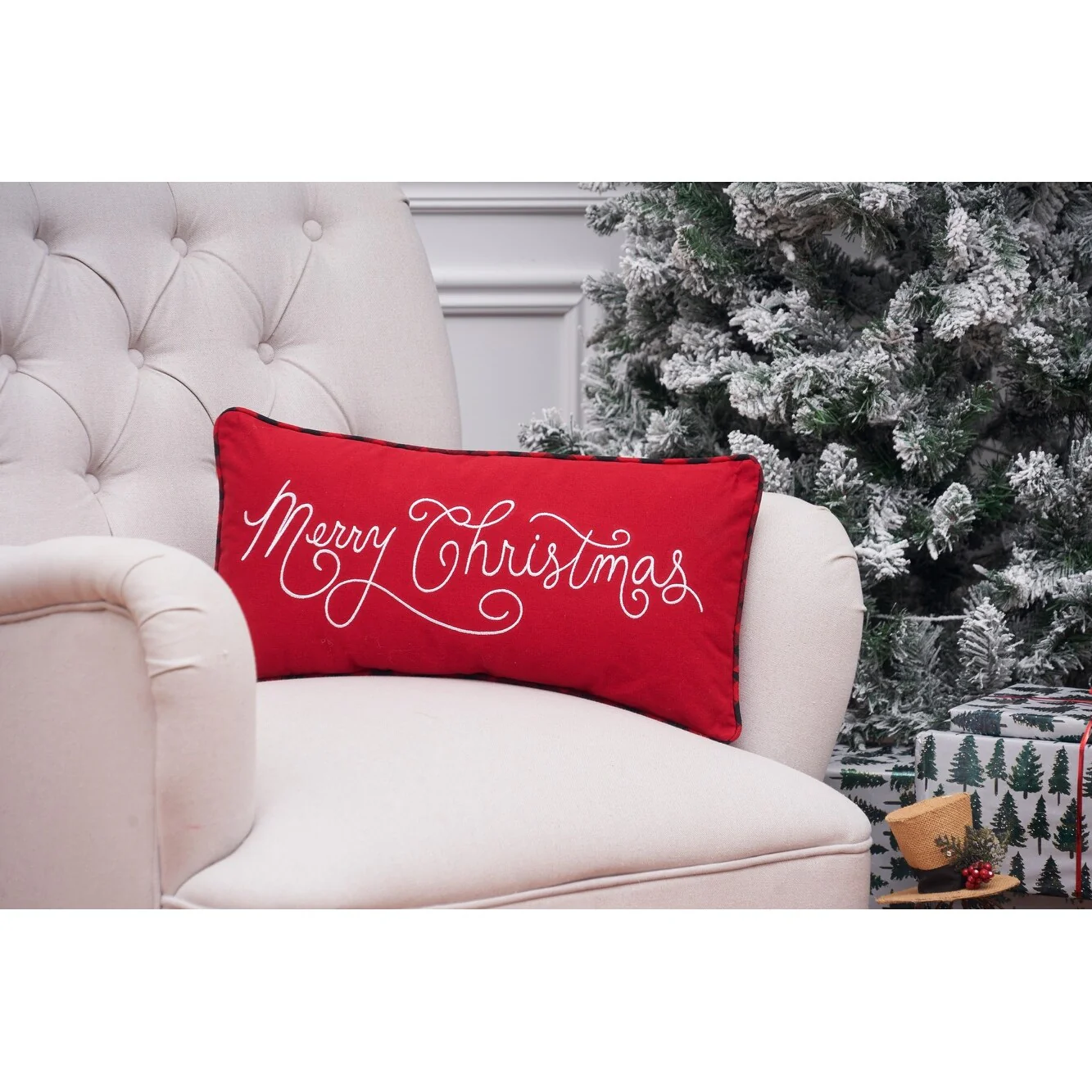 10" x 20" Merry Christmas Applique & Embroidered Throw Pillow