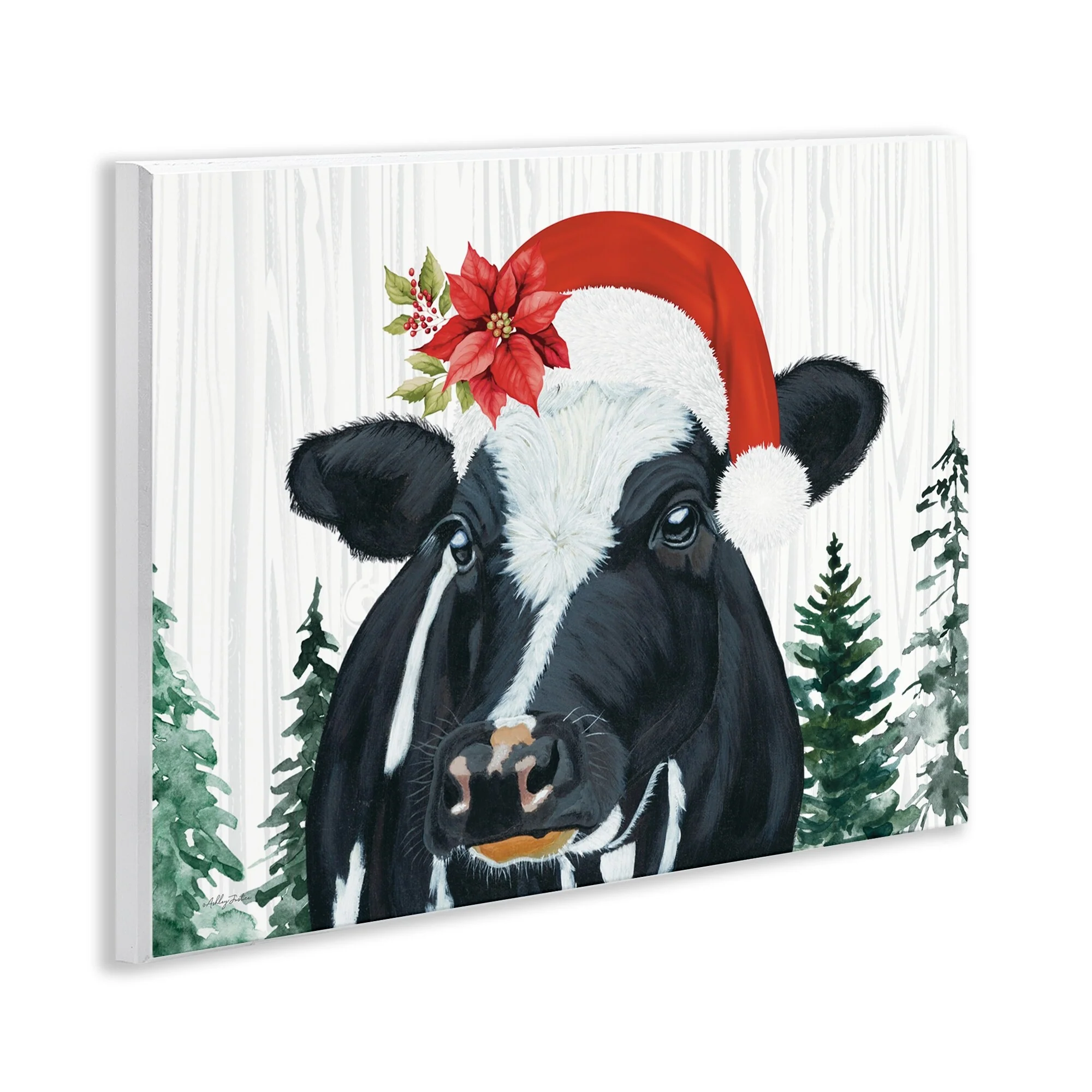 Stupell Christmas Hat Cow Portrait Wall Plaque Art Design By Ashley Justice