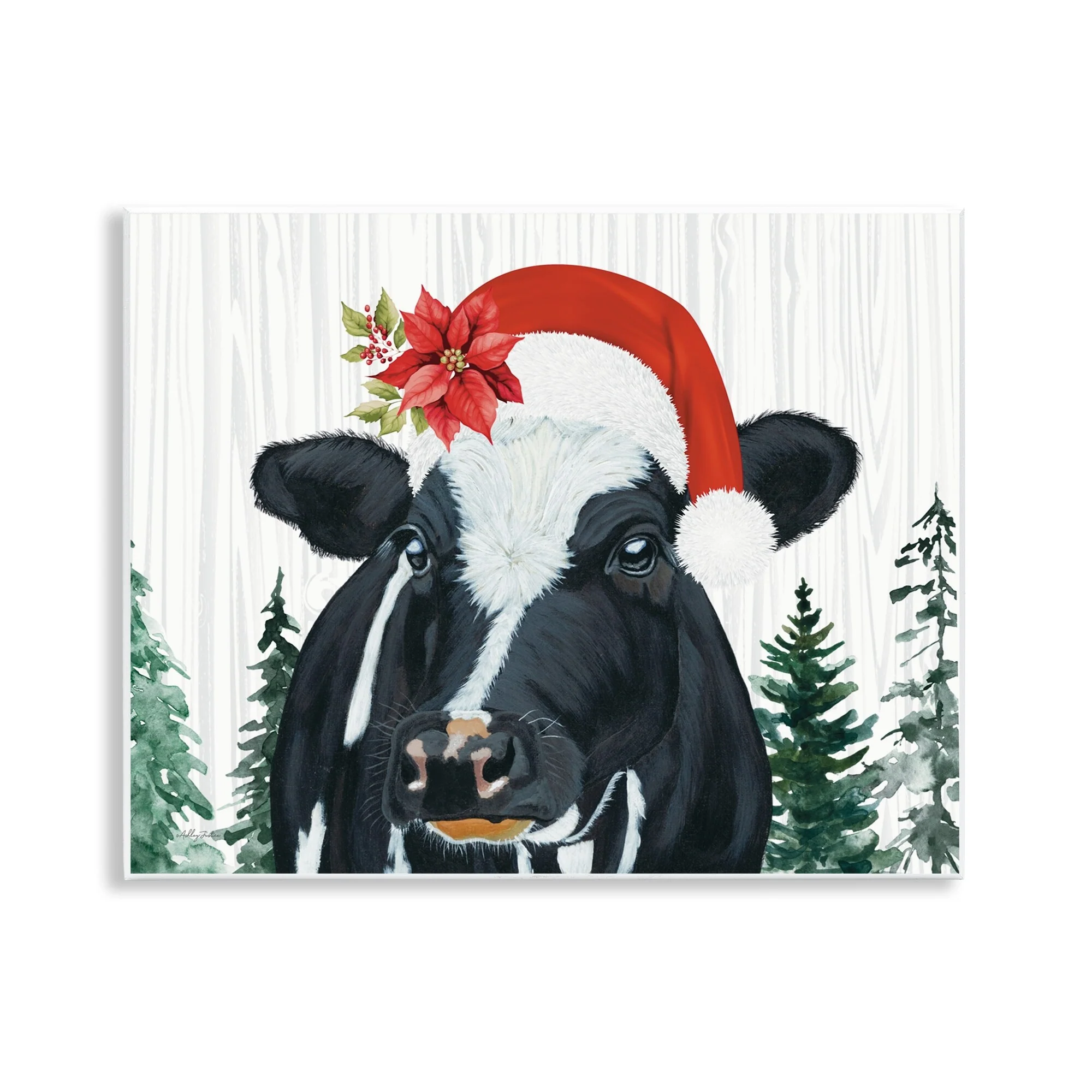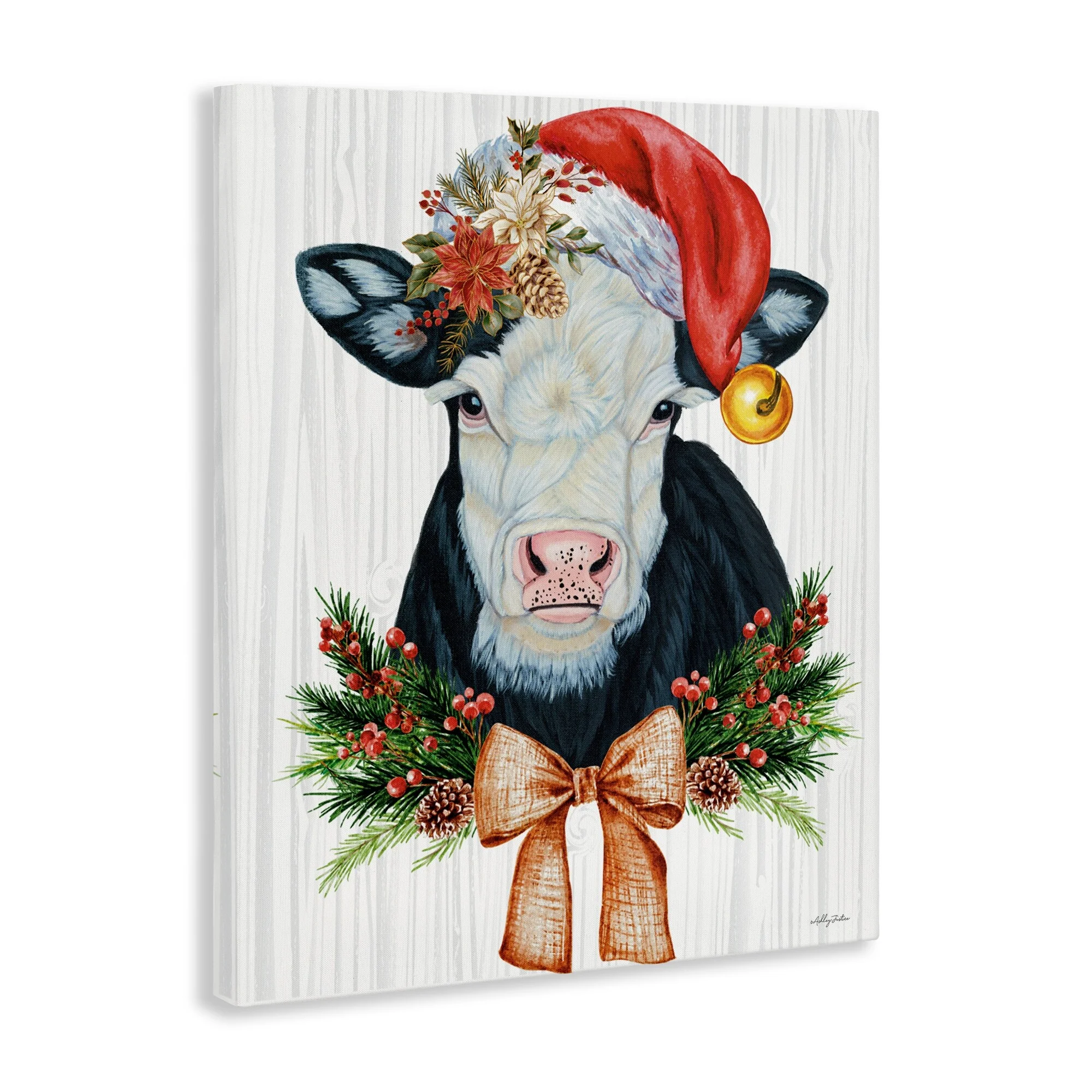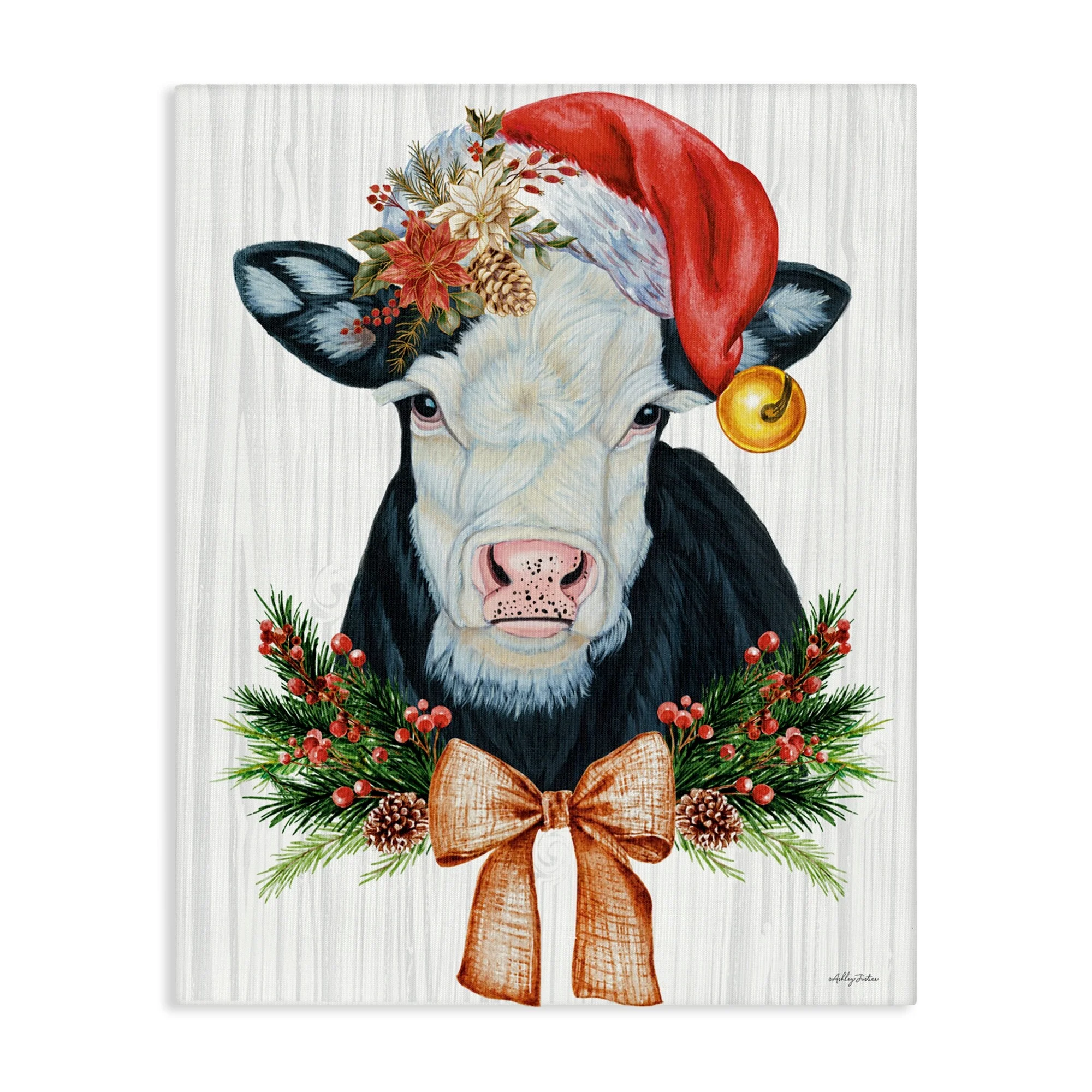 Stupell Festive Cow in Christmas Hat Canvas Wall Art Design By Ashley Justice