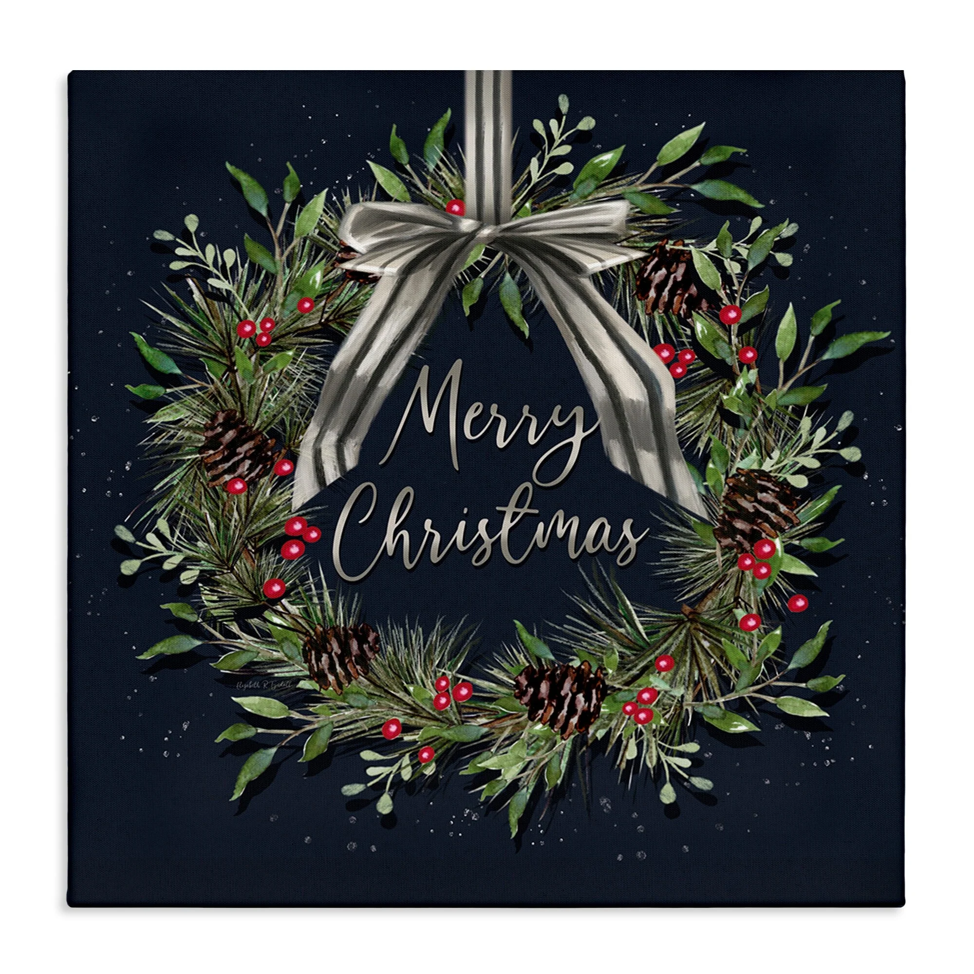 Stupell Hanging Christmas Wreath with Bow Canvas Wall Art Design By Elizabeth Tyndall