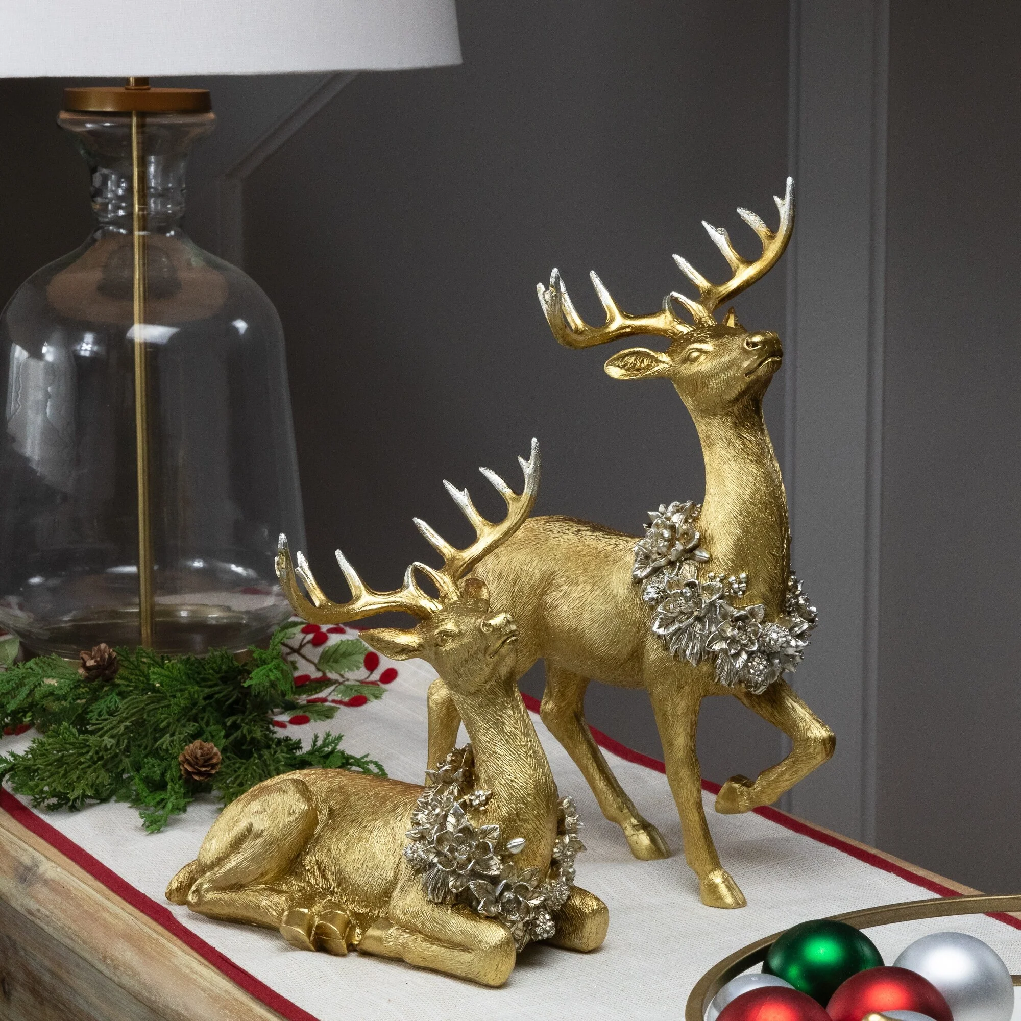 Reindeer with Wreaths Christmas Figurines - Gold - Set of 2