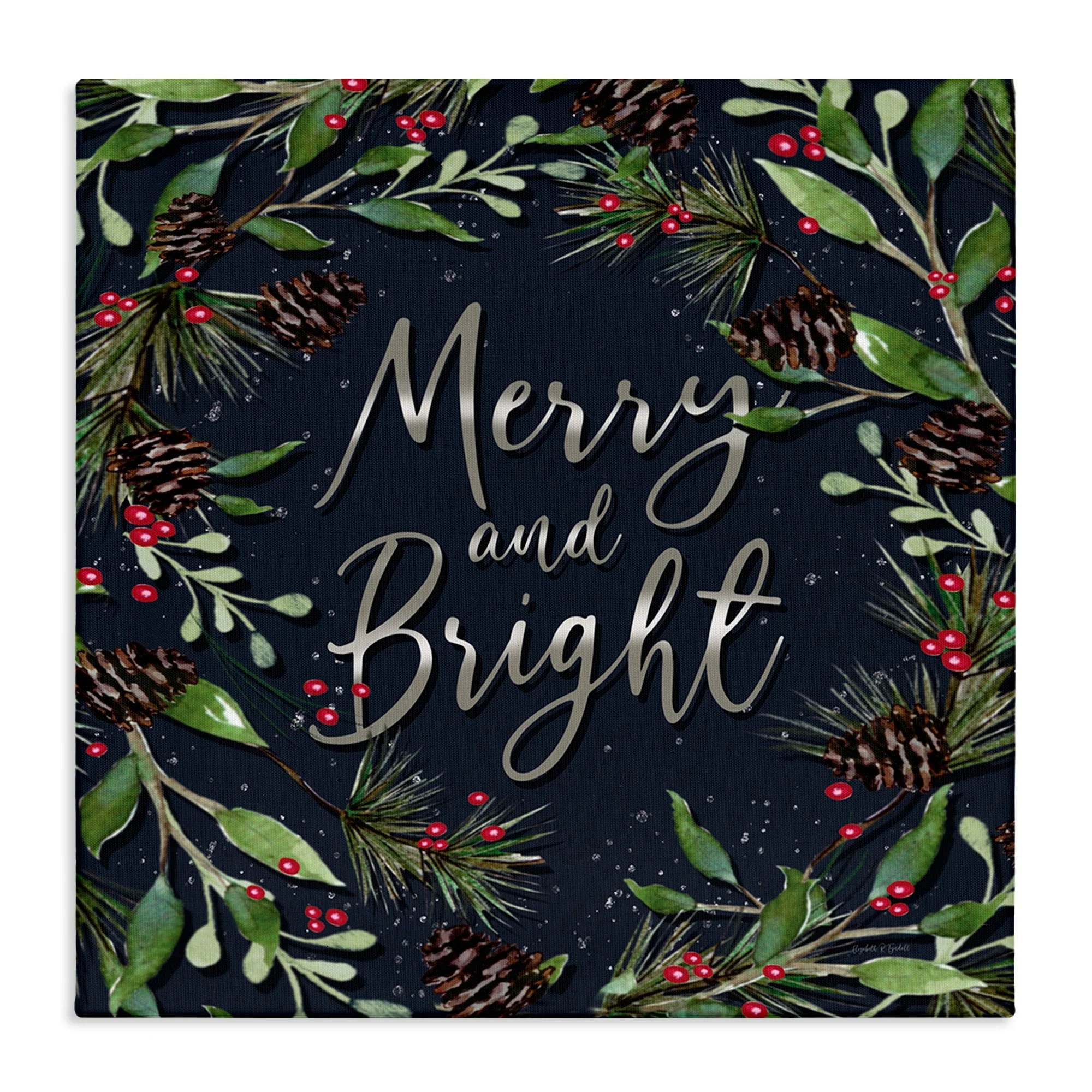 Stupell Merry & Bright with Holly Leaves Canvas Wall Art Design By Elizabeth Tyndall