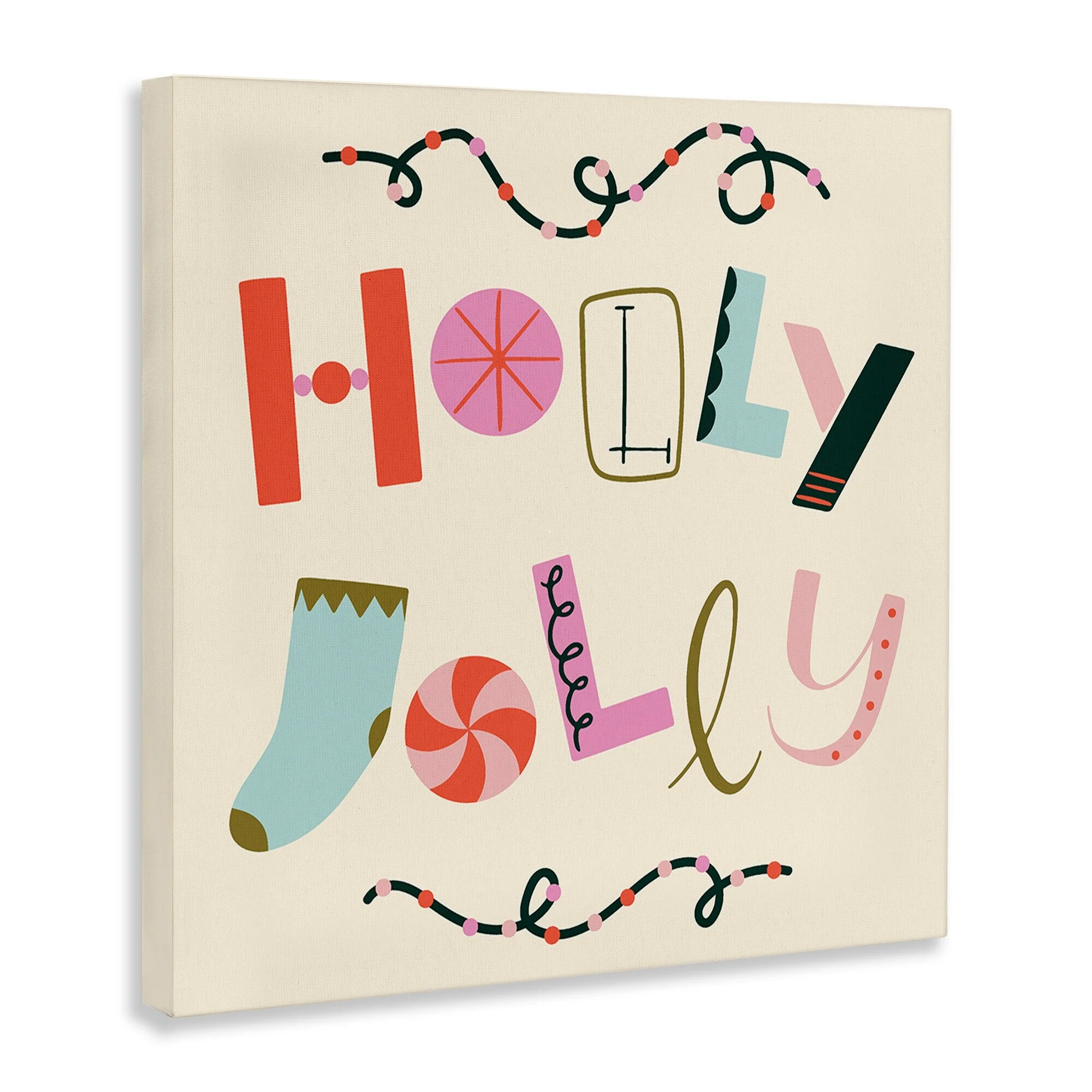 Stupell Holly Jolly Eclectic Holiday Canvas Wall Art Design By Sazerelli Designs