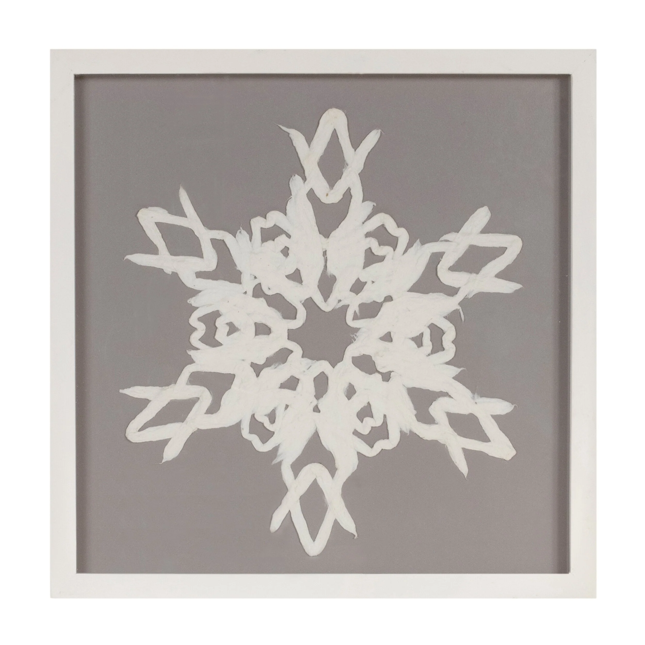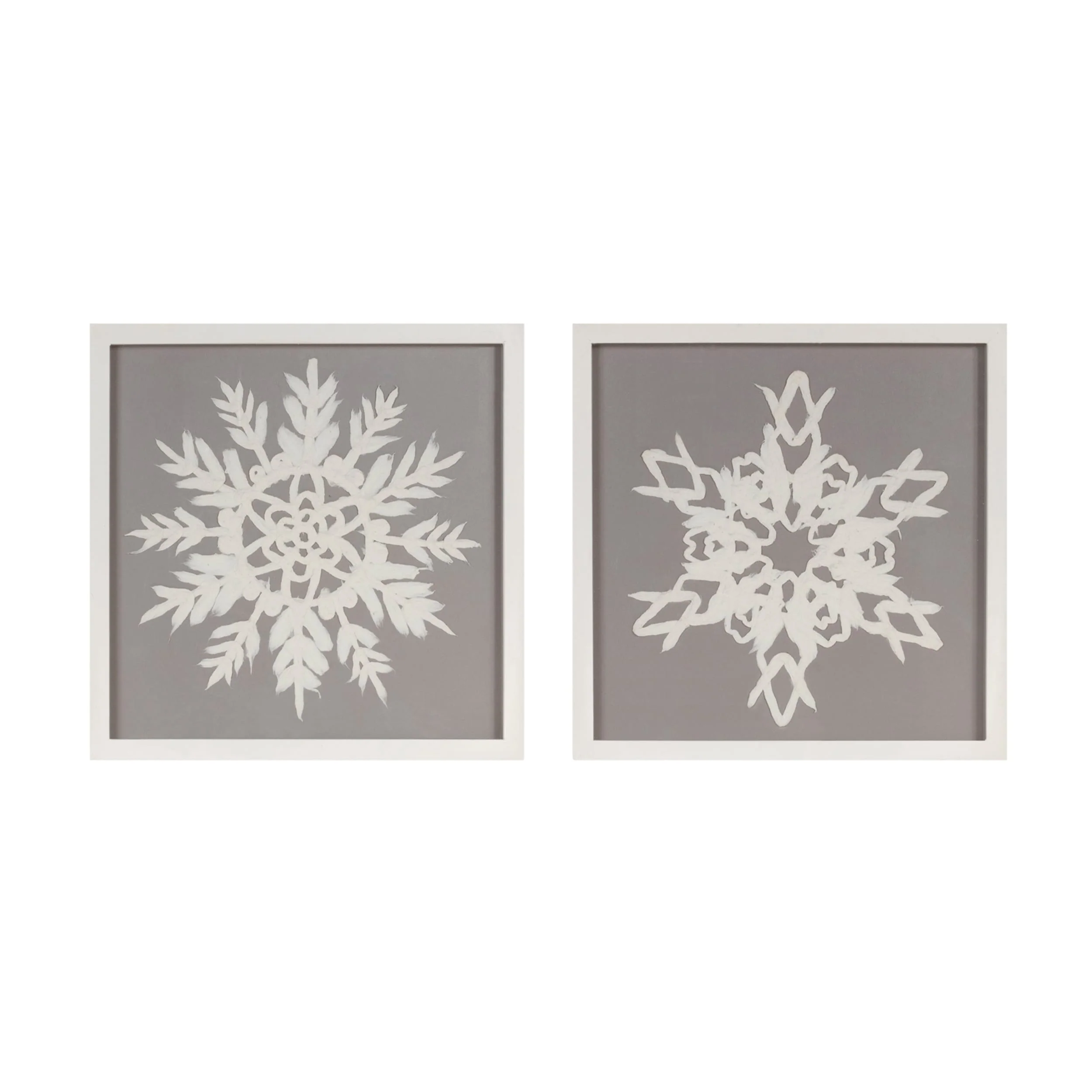 Set of 2 Modern Grey and White Snowflake Paper Mache Wall Art for Holiday Seasonal Decorations - 12”L x 0.5”W x 12”H