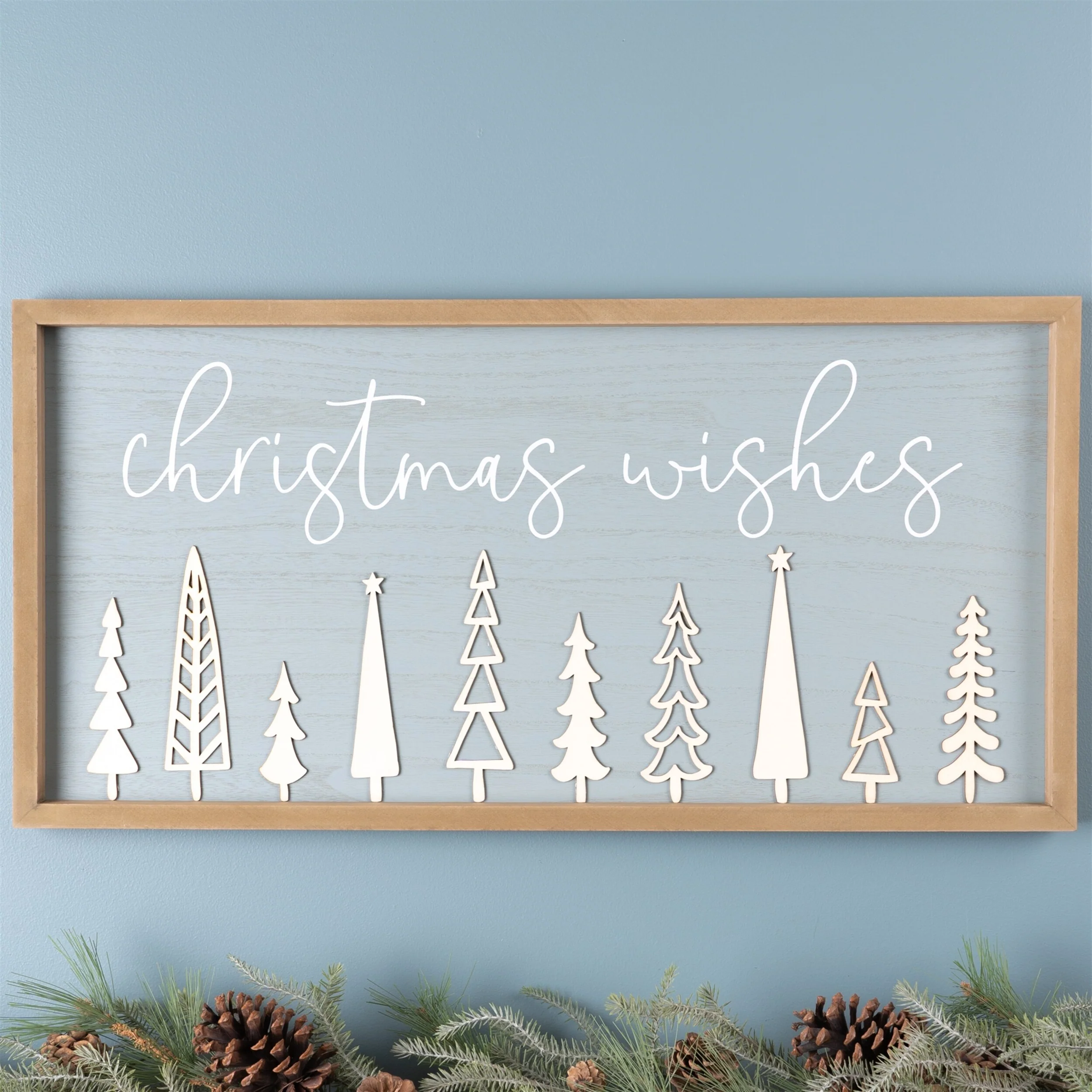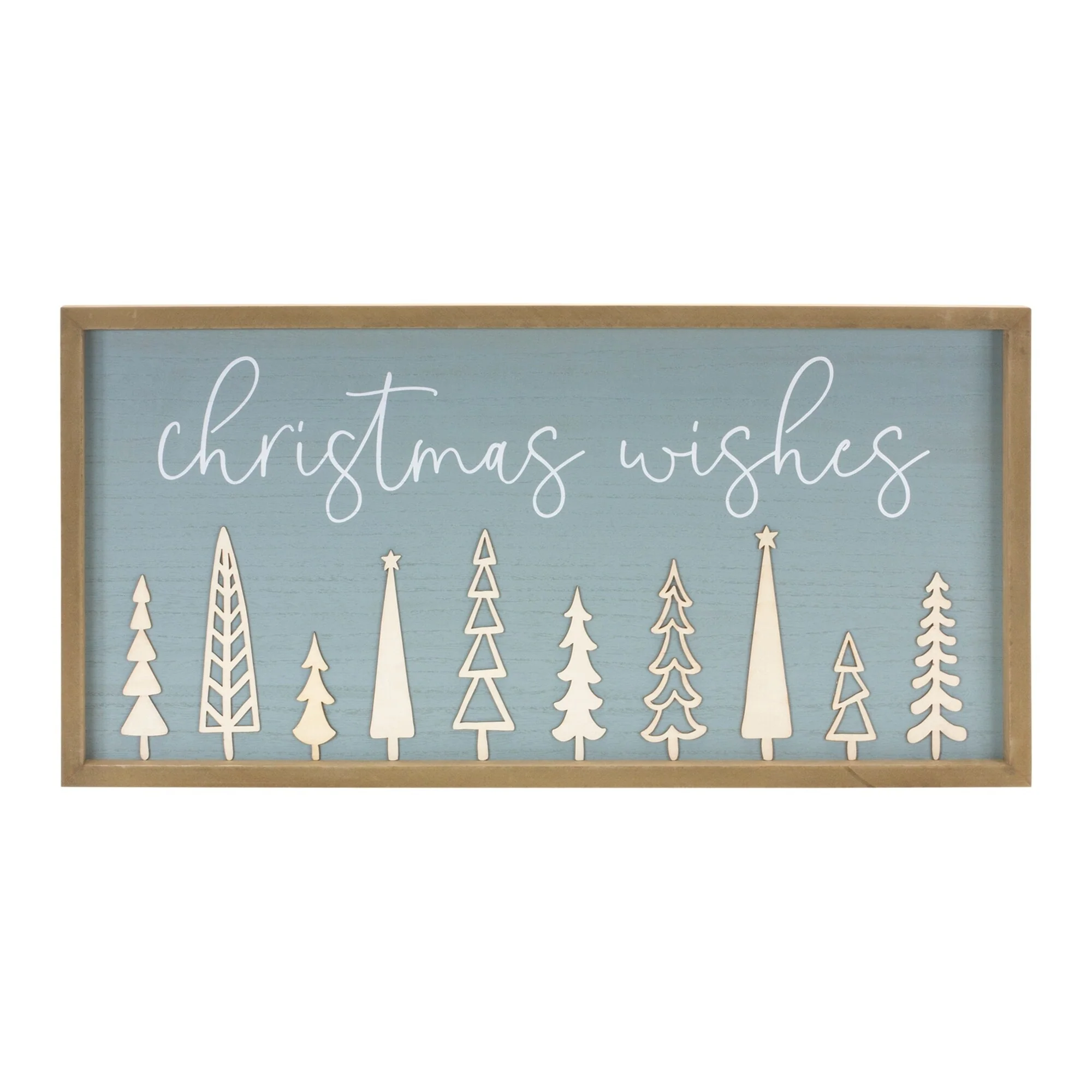 Christmas Wishes Sign 31.5"L x 13.5"H MDF - Blue, White