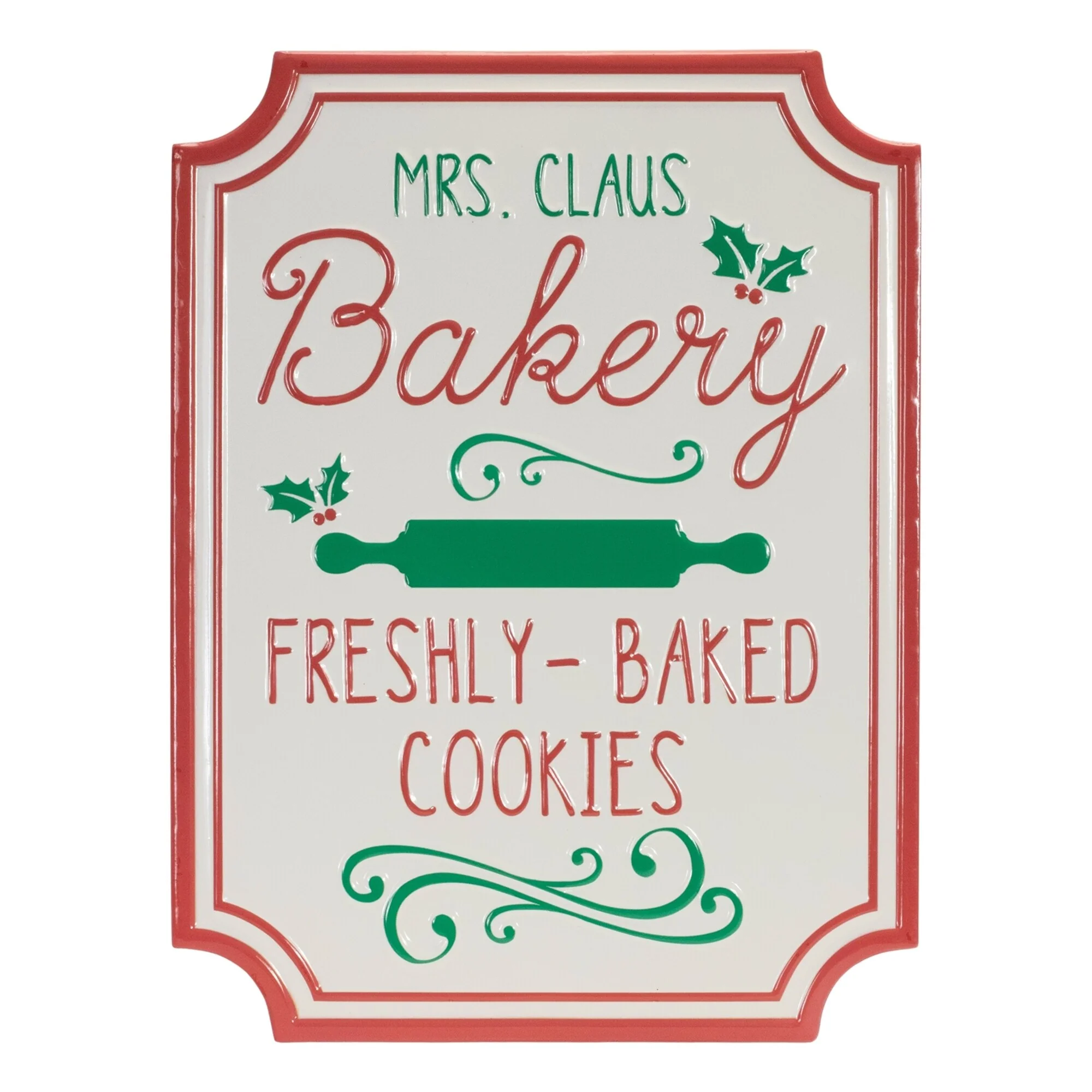 Mrs. Claus Bakery Sign 12"L x 16"H Metal - Red, White