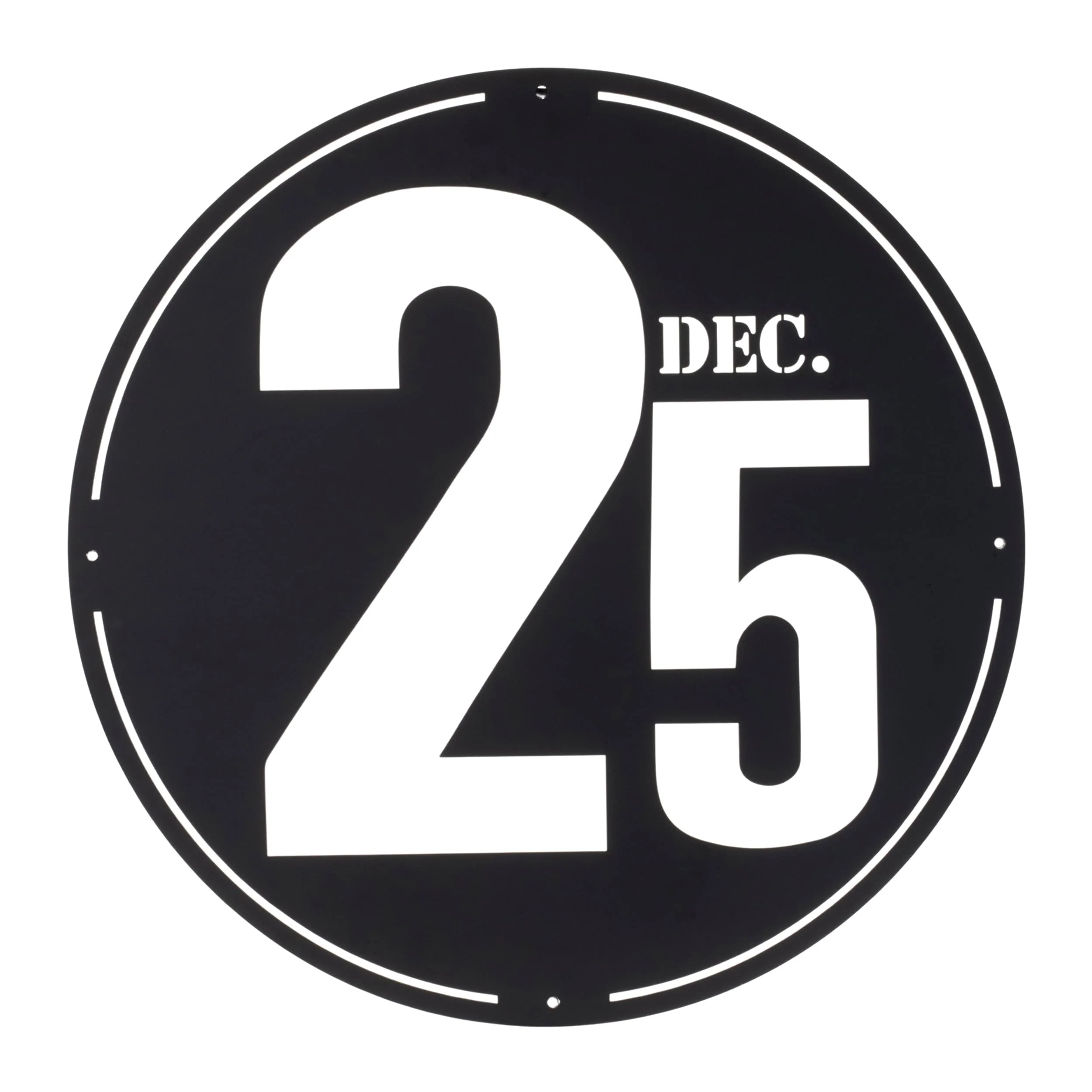 Modern Black Metal December 25 Wall Decor Cutout Holiday Plaque for Living Room or Entryway - 24”L x 0.5”W x 24”H