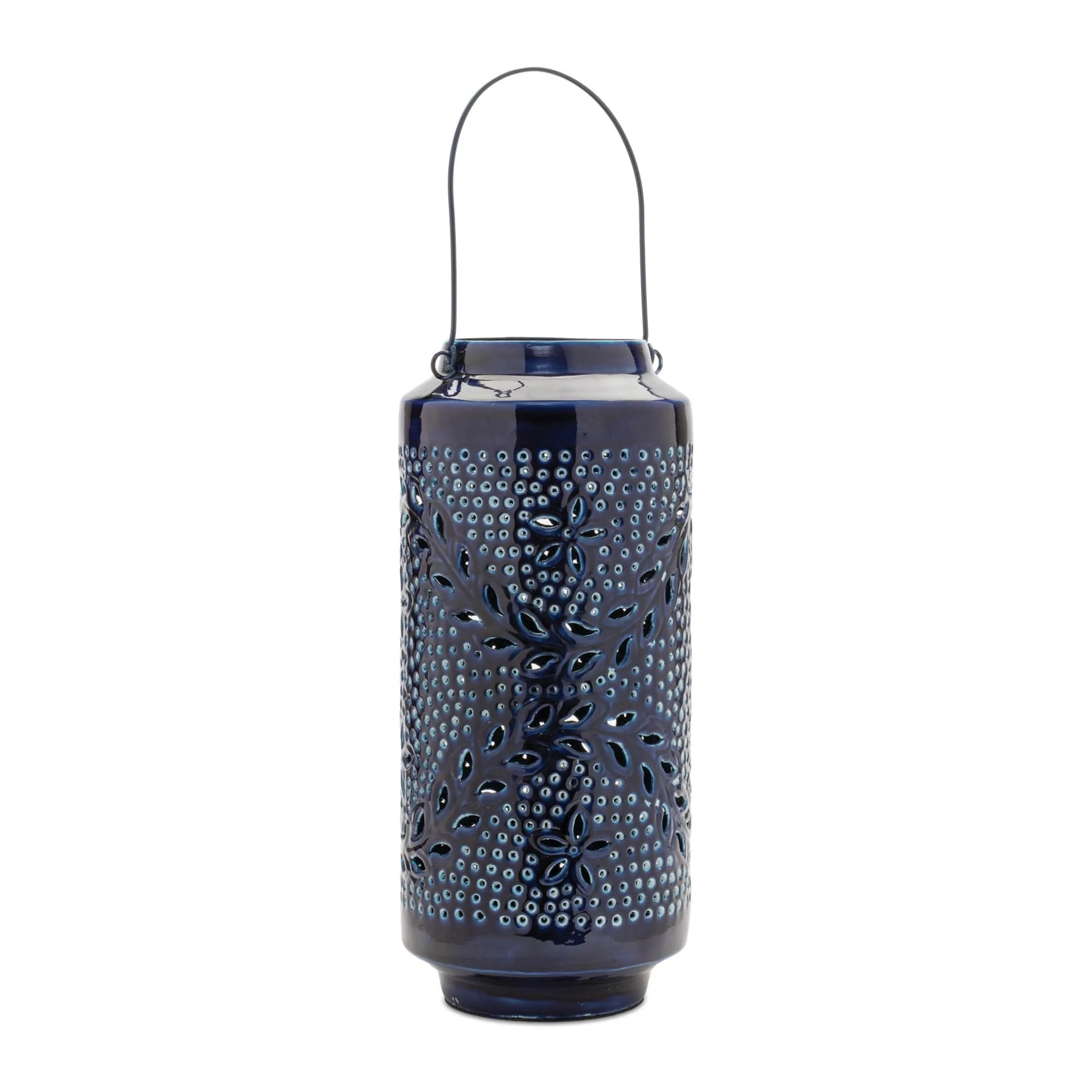 Iron Leather House Lantern Set of 3 with Handles and Punched Design - 7” x 7” x 12.5” (L x W x H)
