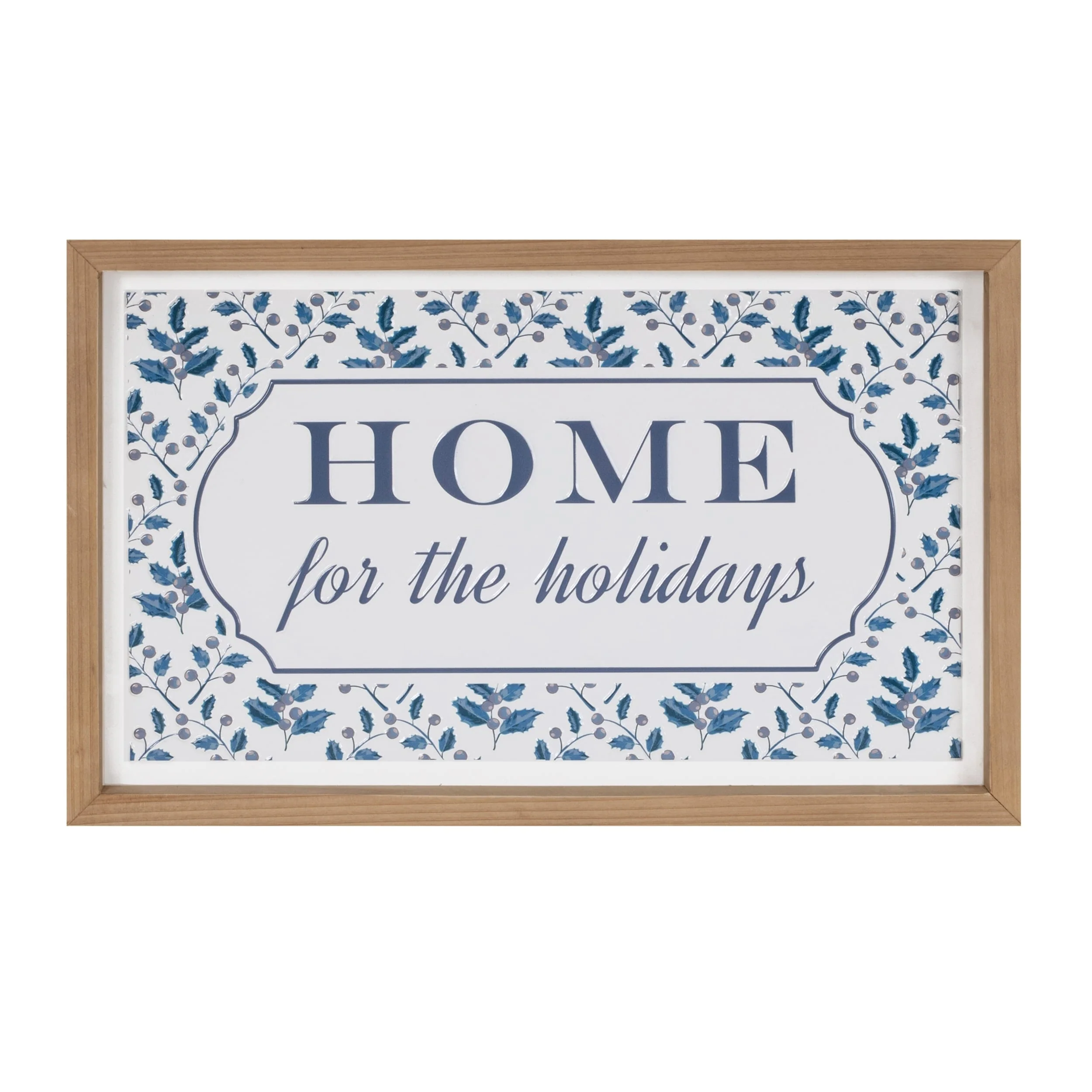 Winter Wall Sign with Blue and White Art Rustic Wood Frame “Home for the Holidays” Seasonal Home Accent - 18.75”L x 1”W x 10”H