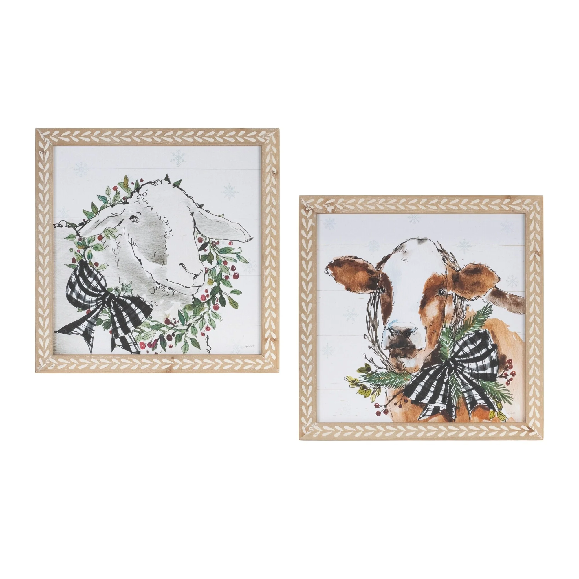 Holiday Cow and Sheep Print (Set of 2) 16"SQ MDF - White, Brown, Beige