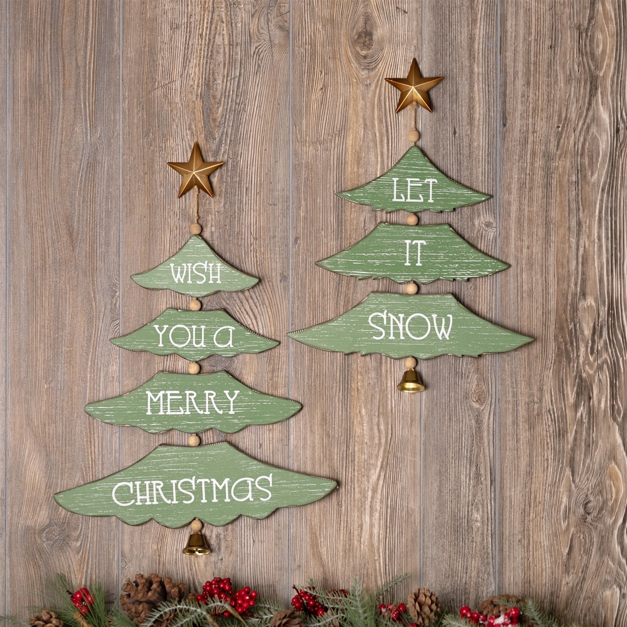 Tree Shape Sign (Set of 2) 17.5"H, 21.5"H MDF/Iron - Green