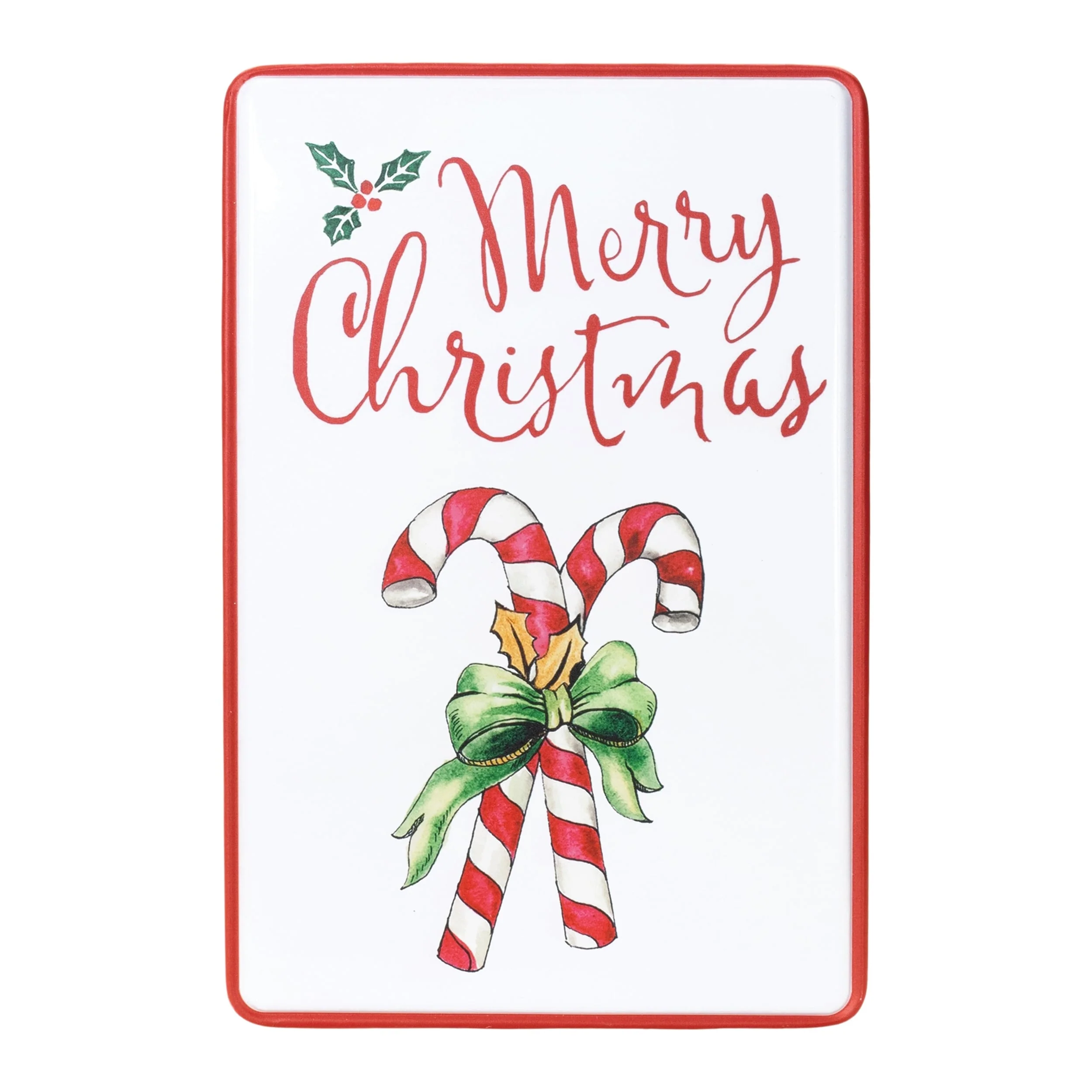 Rustic Metal Holiday Wall Sign Christmas Decoration Plaque with Script Lettering and Candy Cane - 12.25”L x 0.25”W x 18.25”H