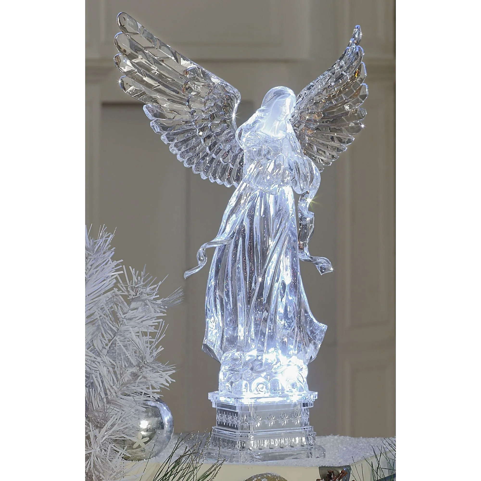 White Plastic and Polyresin LED Angel Snow Globe with Timer Function Christmas Decoration for Tabletop or Mantel