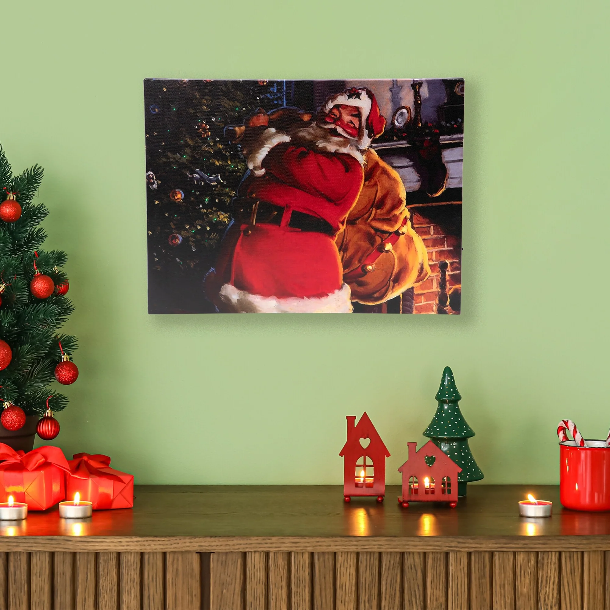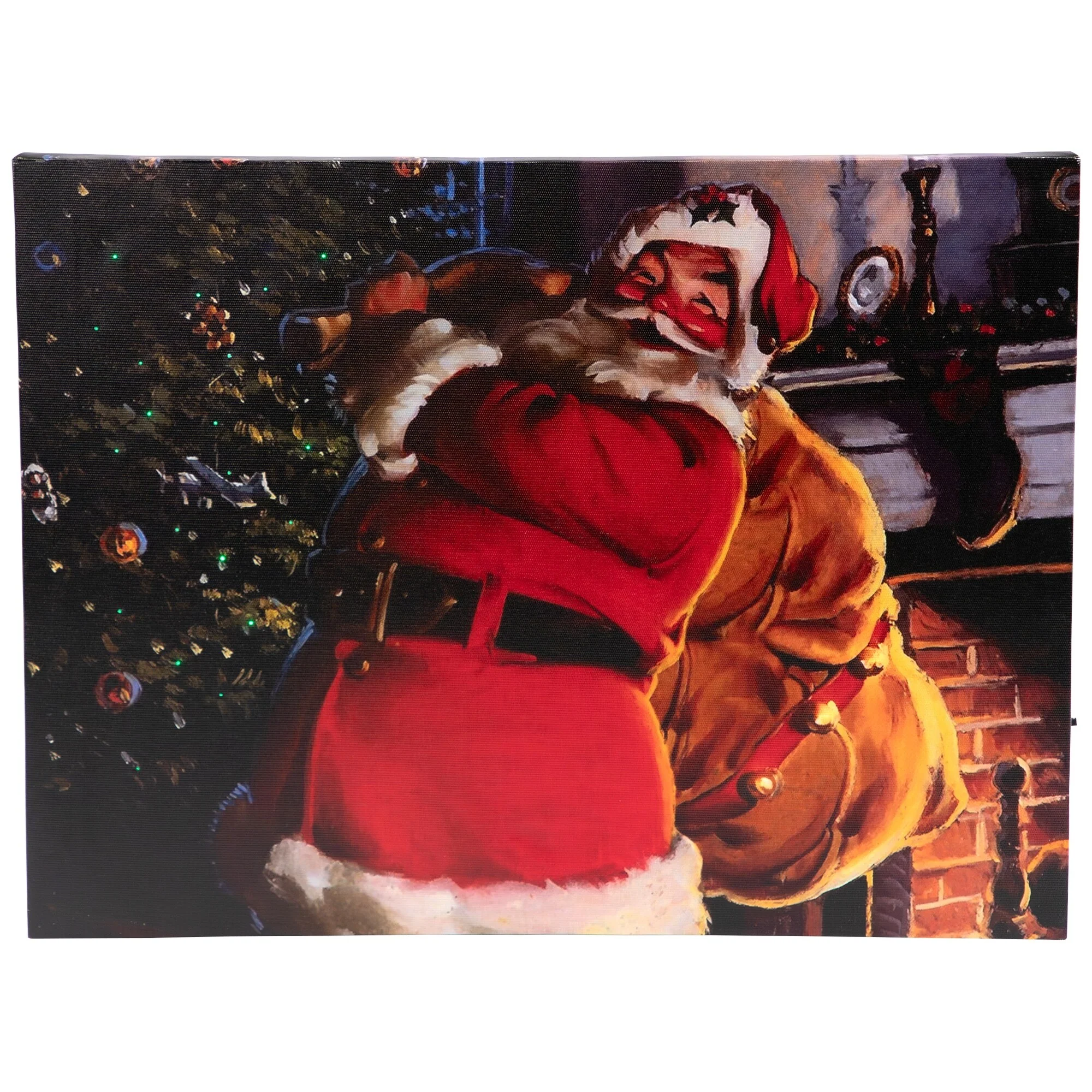 LED Jolly Santa Claus with Bag of Gifts Christmas Canvas Wall Art