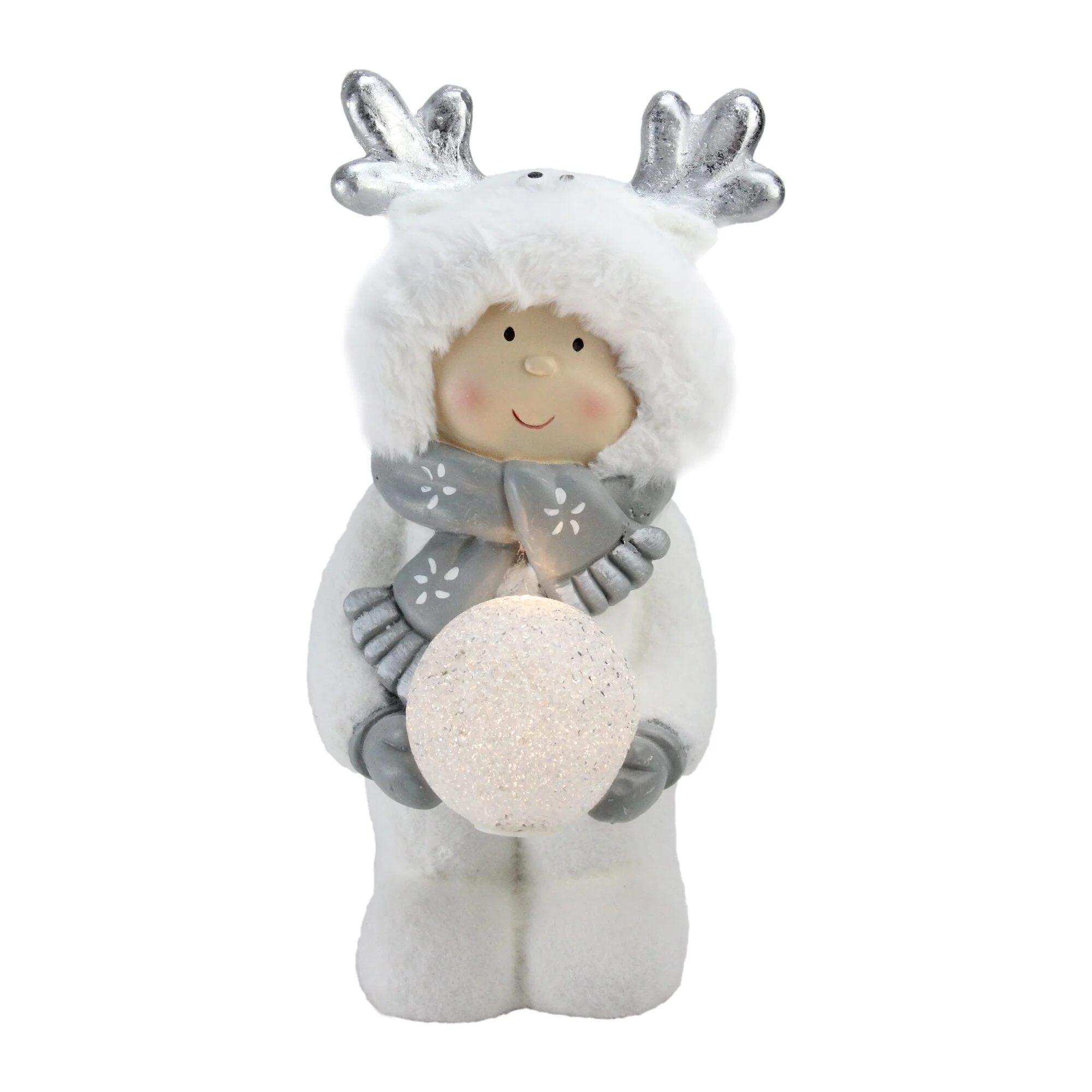 15.75" White B/O Smiling Child Holding LED Snowball Christmas Figurine